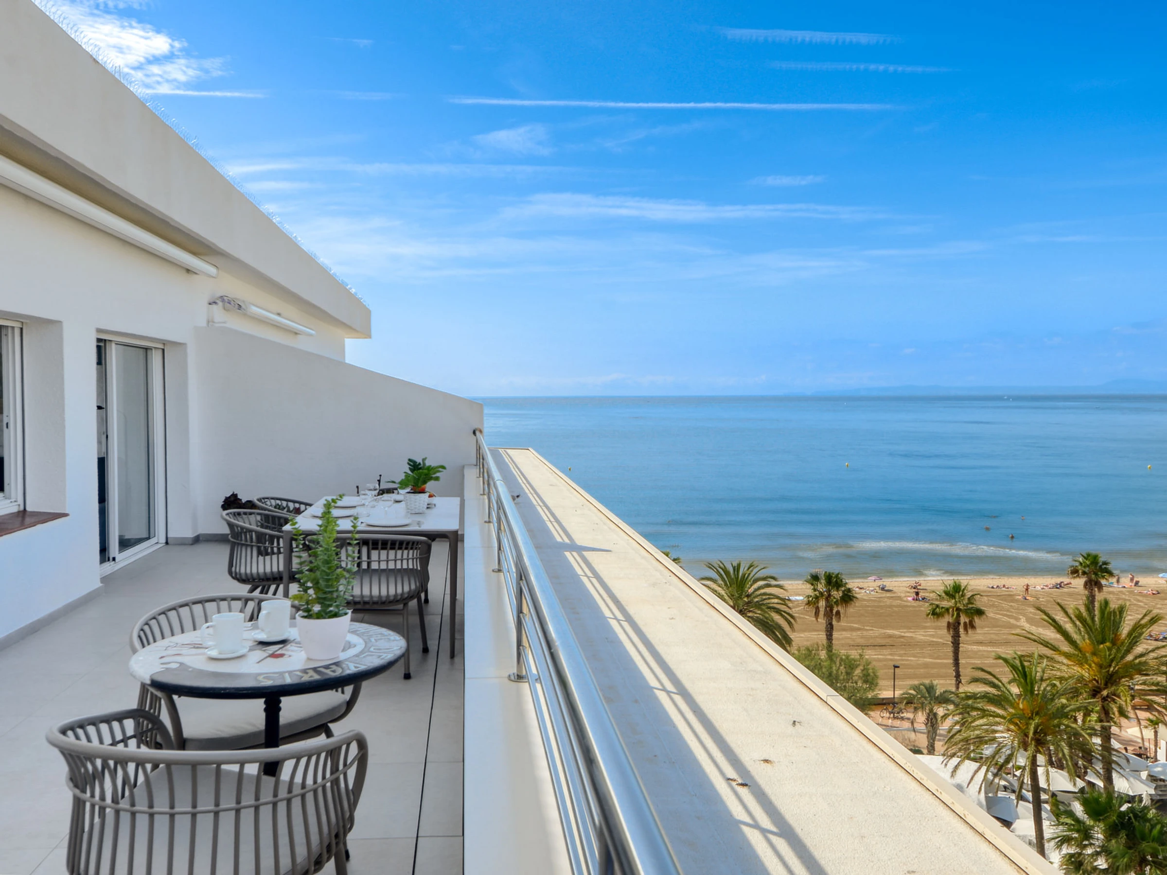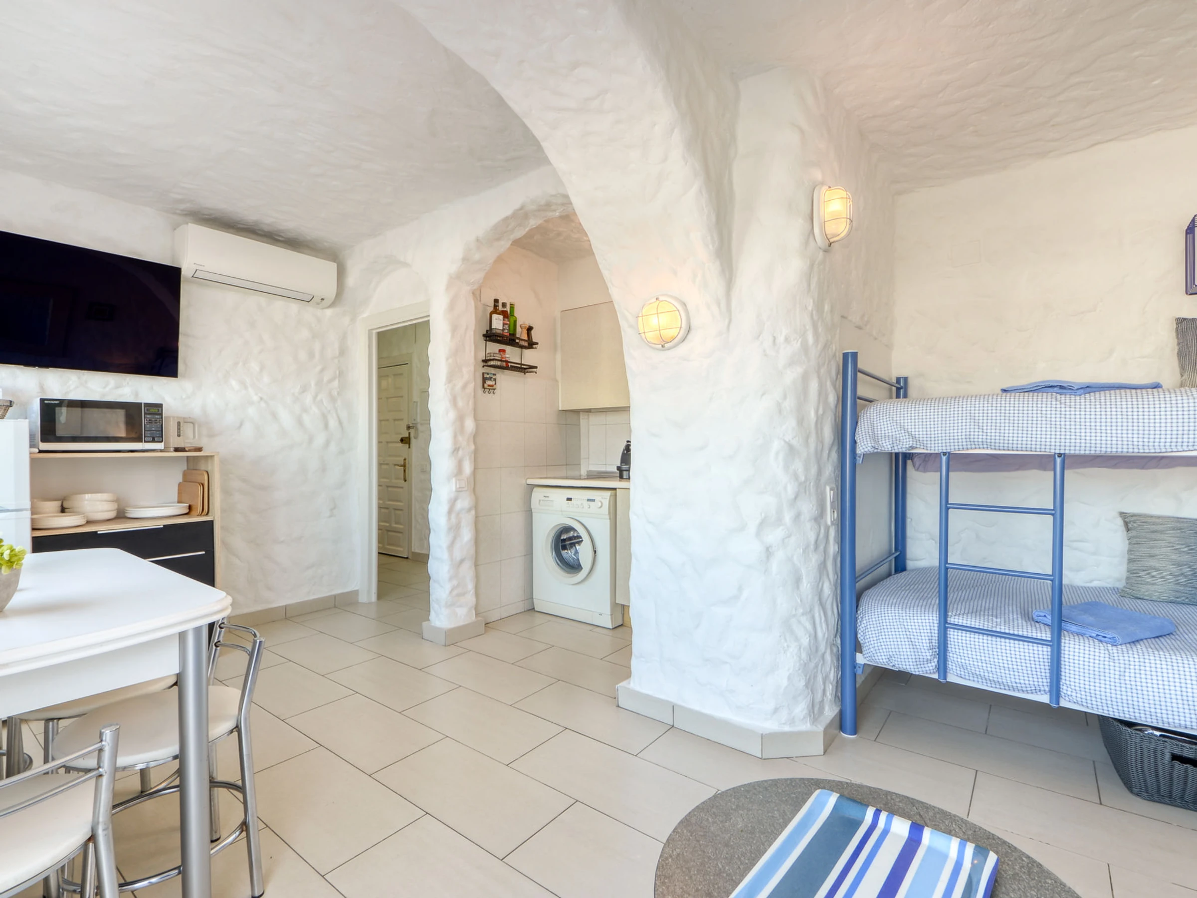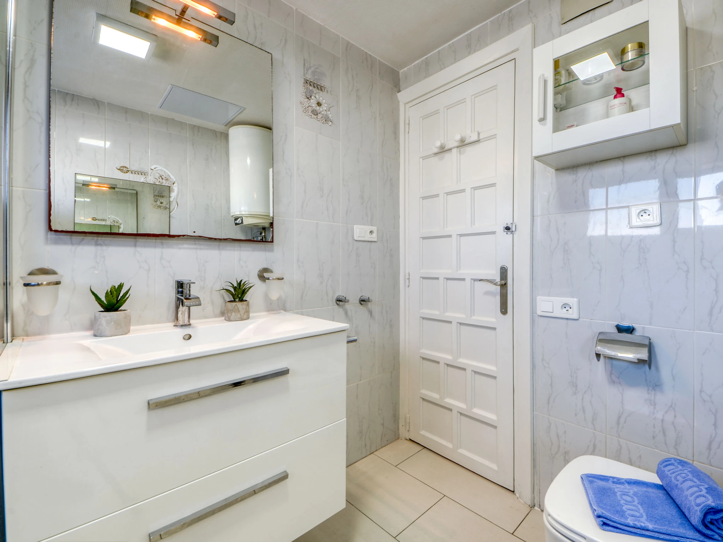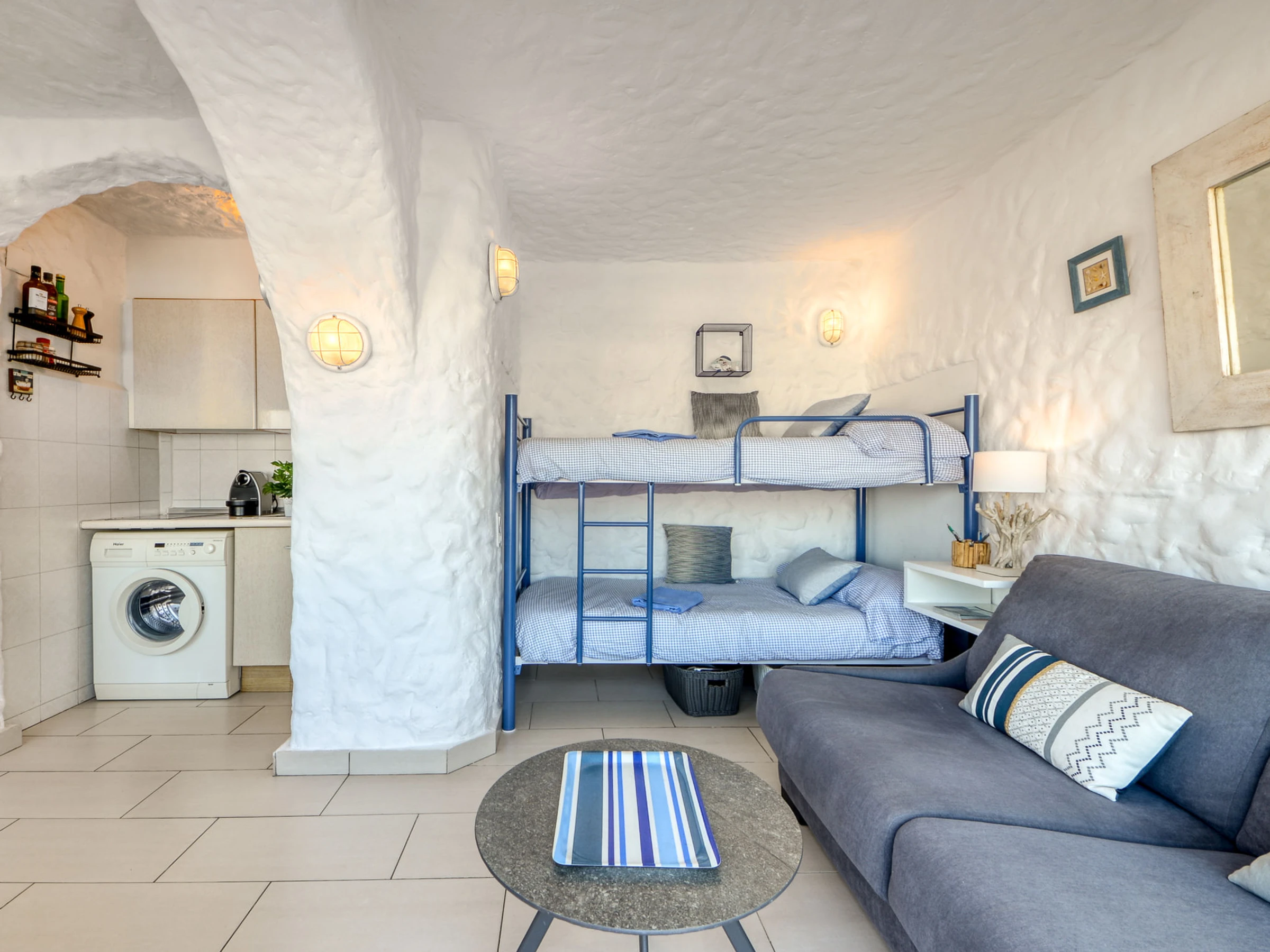 Apt 2 pièces 30 m2 au 8ème étage. Aménagement fonctionnel et agréable: séjour/chambre à coucher ouvert avec 1 x 2 lits superposés, TV (satellite) (écran plat), air-conditionné et volet roulant électrique. Sortie sur la terrasse. 1 chambre avec 1 grand-lit et volet roulant électrique. Cuisine ouverte (2 plaques vitrocéramiques, micro-ondes, congélateur). Douche/WC. Pas de chauffage. Terrasse 27 m2. Meubles de terrasse. Superbe vue sur la mer. A disposition: lave-linge. Internet (Connexion WIFI, gratuit). Veuillez noter: maison non-fumeur. TV seulement FR, DE, ES. La maison a un store électrique avec capteurs de vent. [hidden] // Reg. Nr.: ESFCTU00001701900000440600000000000000000HUTG-[hidden]