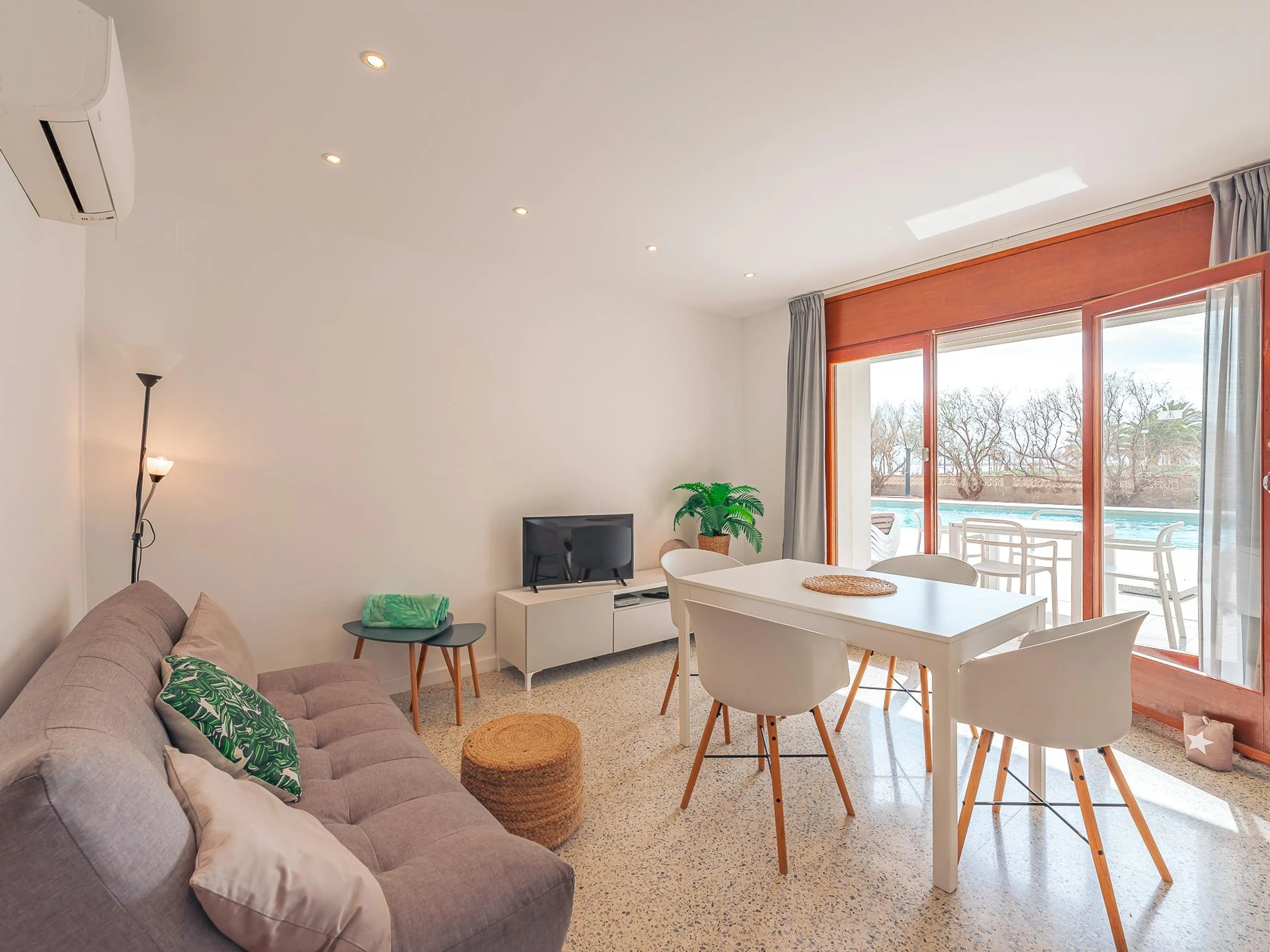 ouvert (canapé clic-clac) avec climatisation et accès direct à la terrasse de