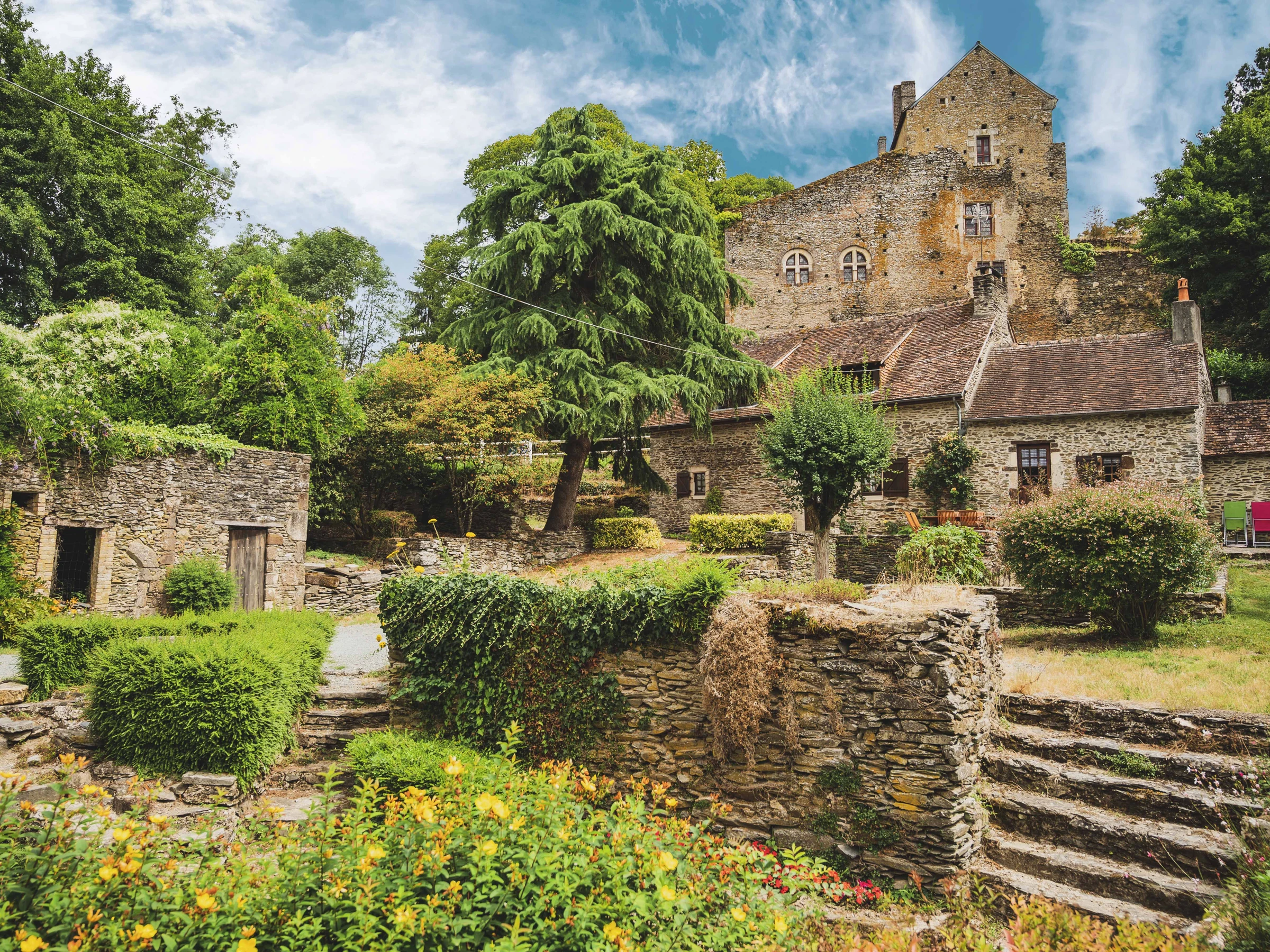 Ancien moulin adossé au Château de Courmenant (XIIe), au coeur d'une vaste propriété (7000 m²) traversée par la rivière 'La Vègre' entraînant la roue du moulin..