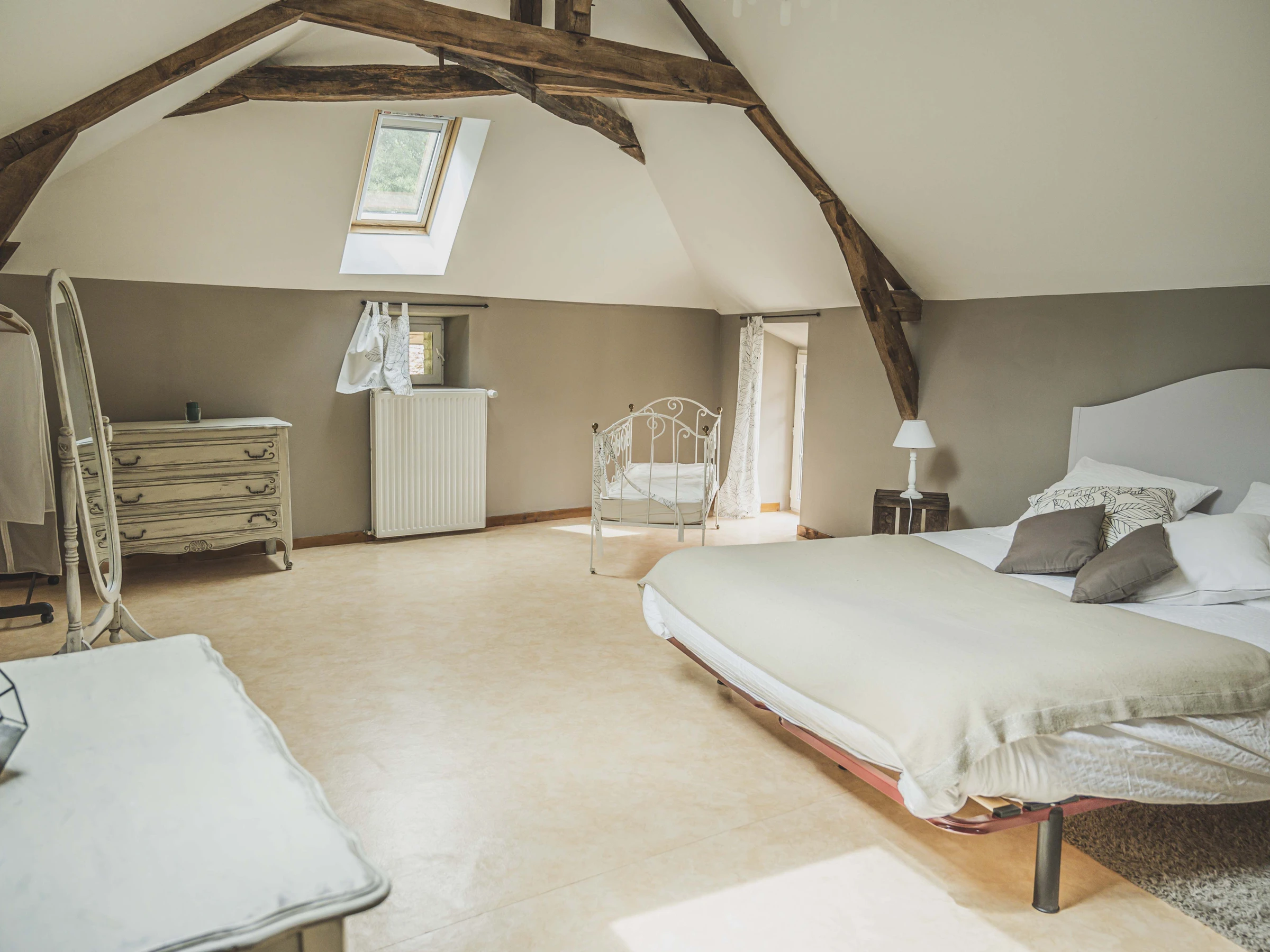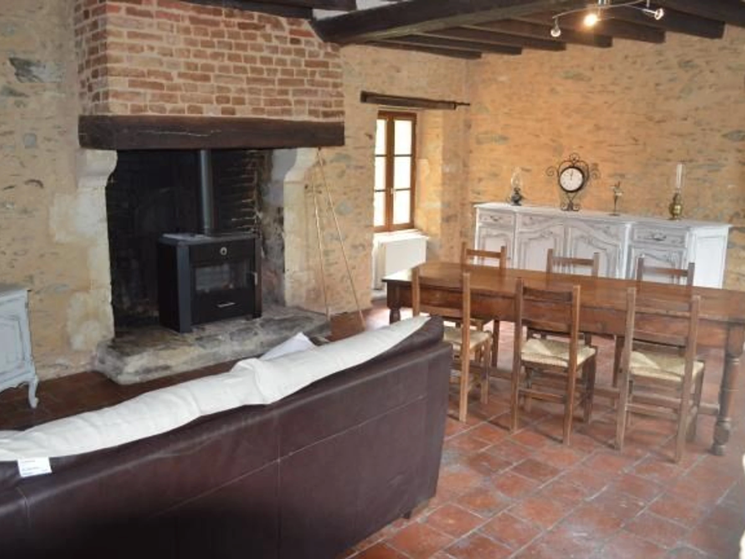 Dans un cadre bucolique, notre gîte rural refait à neuf vous offrira calme et sérénité au bord d’un joli cours d’eau et à proximité d’une ancienne abbaye cistercienne. Cette maison à la campagne est le point de départ idéal pour visiter les Alpes Mancelles, le vieux Mans, Ste Suzanne, Asnière sur Vègre... Ou pour un séjour plus sportif à Sillé plage et ses environs. Cette ancienne ferme aux poutres et pierres apparentes met à votre disposition : RDC: salle à manger avec cheminée ancienne comprenant un poêle à bois / salon avec TV écran plat, cuisine toute équipée indépendante. Débarras avec lave-linge, sèche-linge. WC indépendant. Salle de détente avec 2 lits d’une pers. une chambre avec 1 lit de 160 et 2 lits d’une pers. et sa salle d'eau avec douche italienne. A l'étage: une chambre avec 1 lit de 160 et 1 lit bébé. Mezzanine avec 1 lit 90. Une salle de bains (baignoire) et un wc indépendant. Compris: lits faits à l'arrivée, 1 serviette par personne, Kit de toilette d'accueil