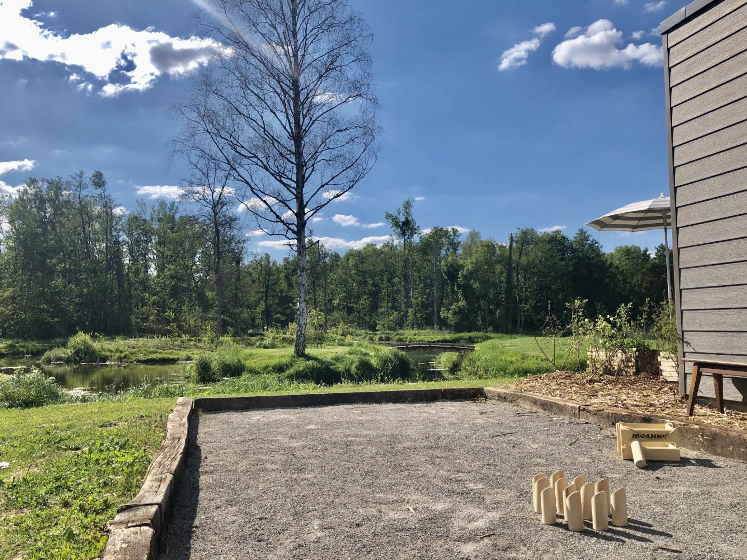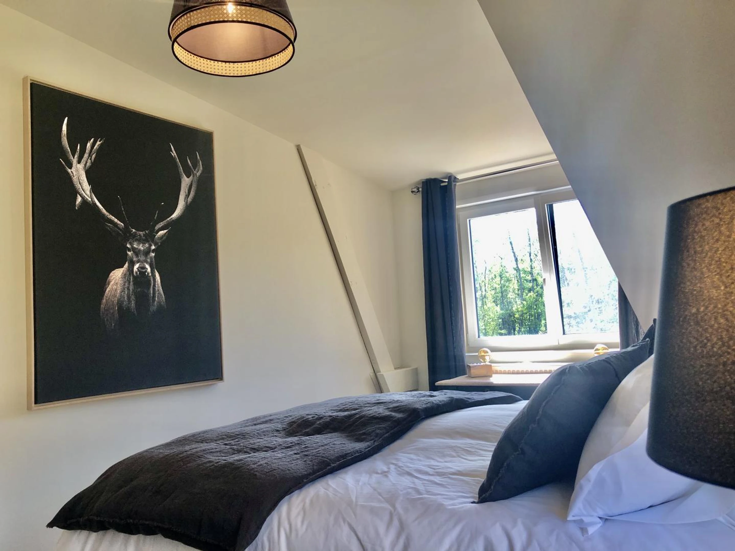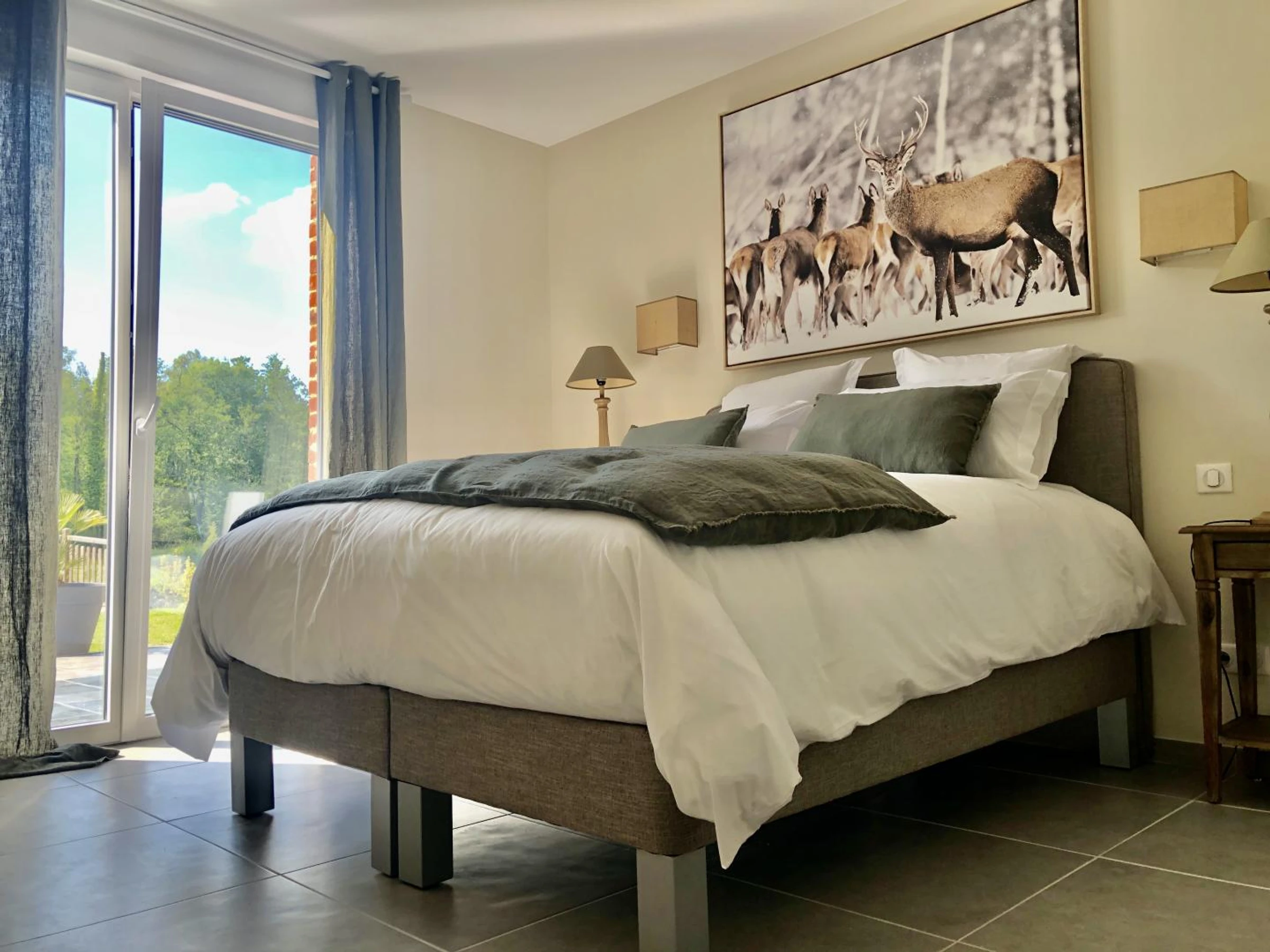 A l'étage : 1 chambre avec un lit double en 160x200 et un lit en 90x200. 1 salle de bains (baignoire, lavabo et WC). Très beau jardin clos d'un hectare avec étang et ses îlots, terrasse, barbecue en briques. Stationnement dans la propriété, fermeture avec un portail. Places de stationnement possibles sur la voie publique. Boulodrome. Wifi avec fibre.