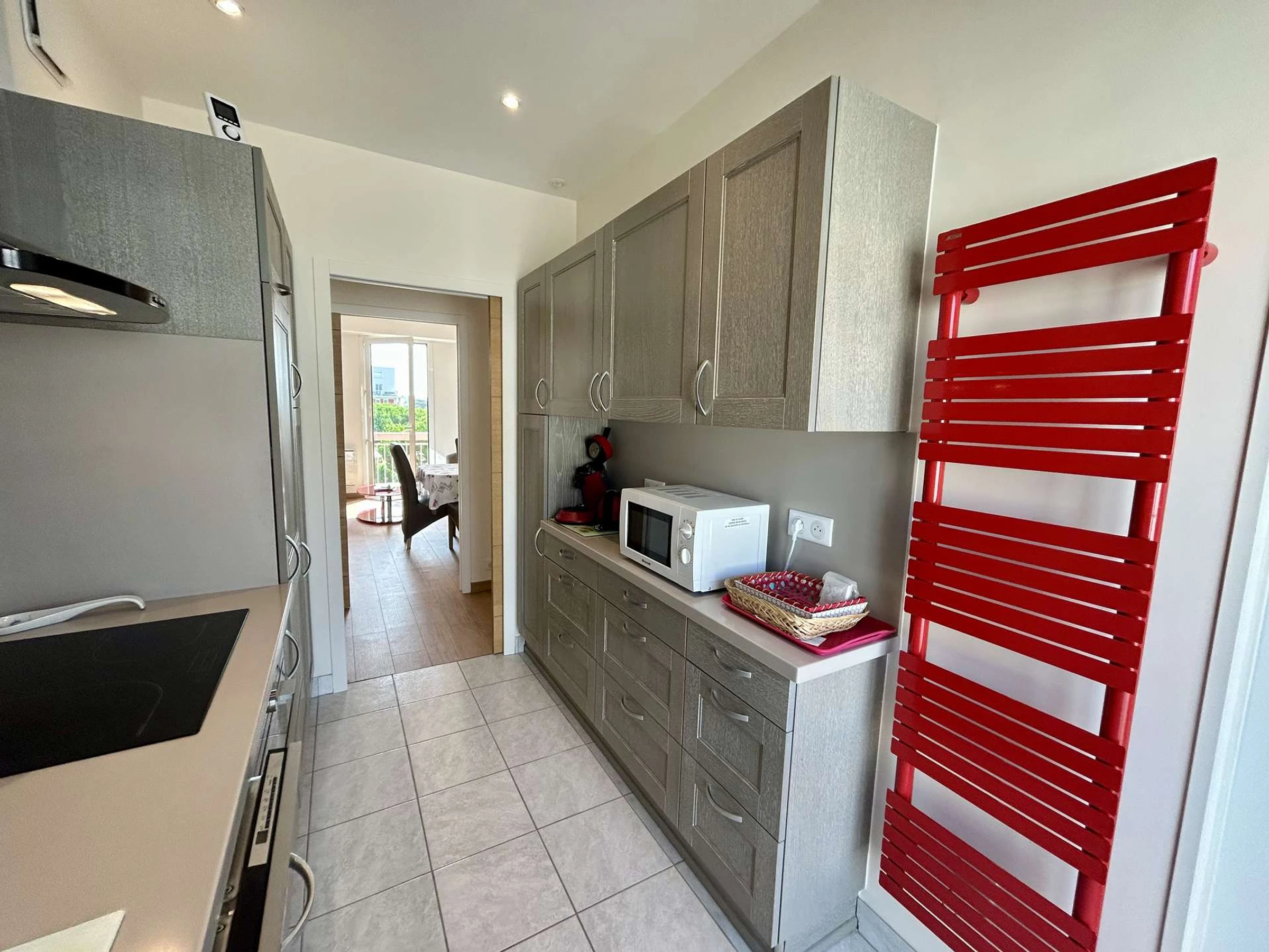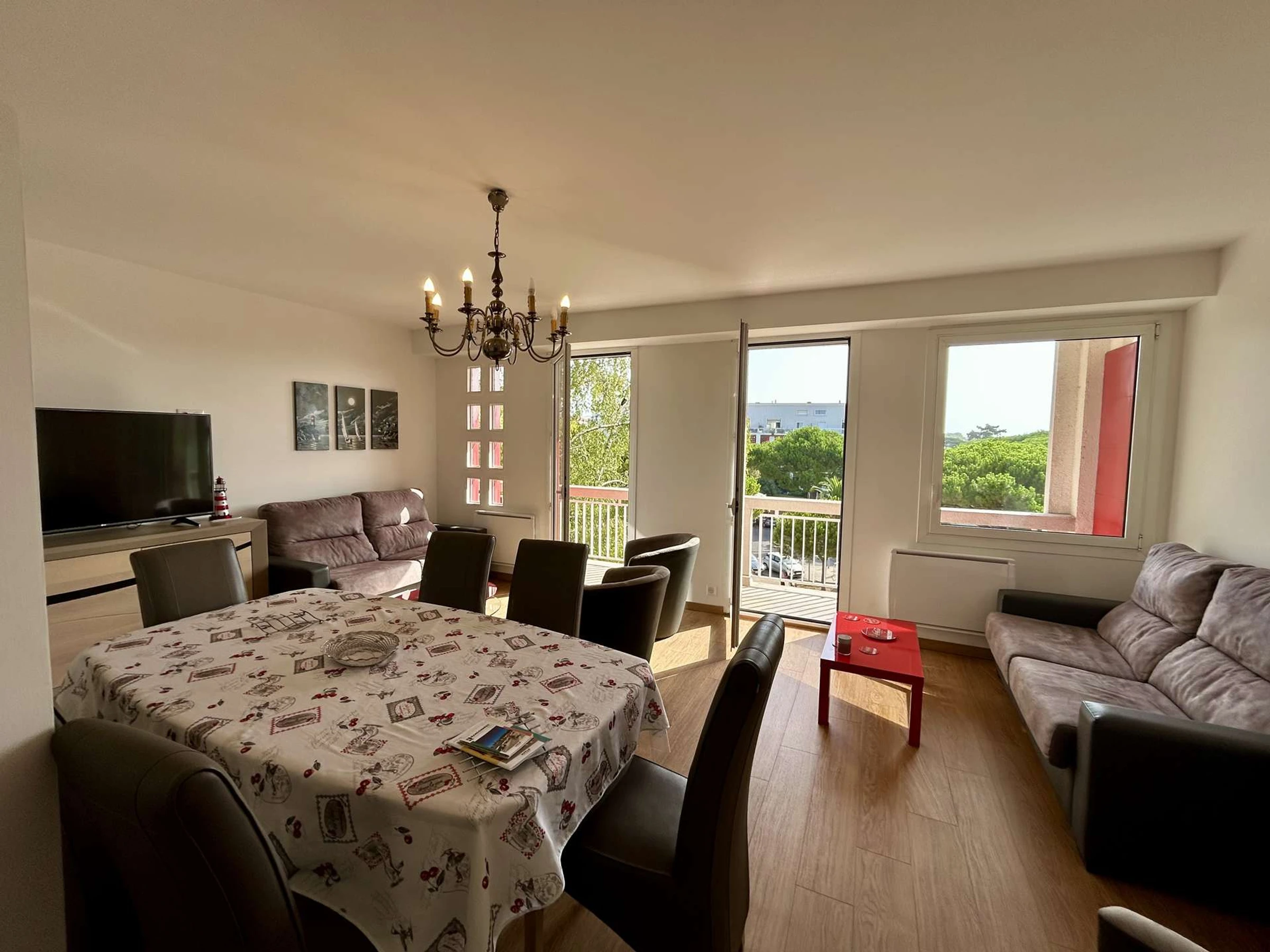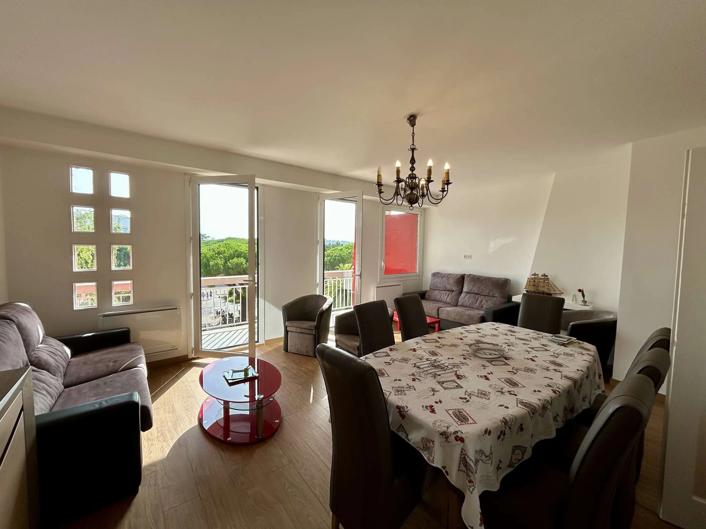 Cet appartement se compose d'une entrée, d'un cellier, WC séparé, pièce de vie avec table à manger, 8 chaises, deux canapés convertibles 140 x1 90.