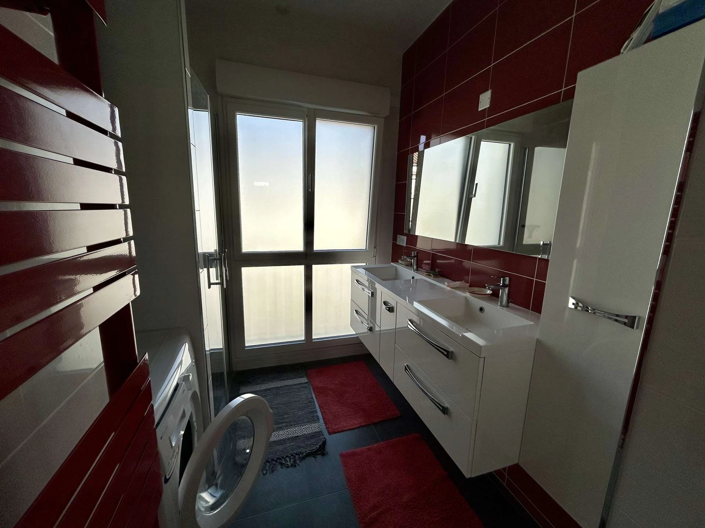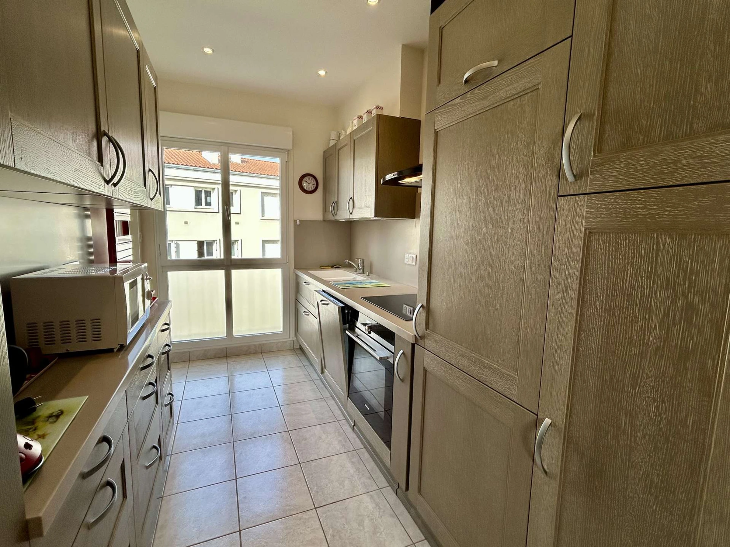 Le couloir dessert une cuisine séparée aménagée et équipée, une salle d'eau, machine à laver, une première chambre avec lit double 140x200, armoire de rangements.