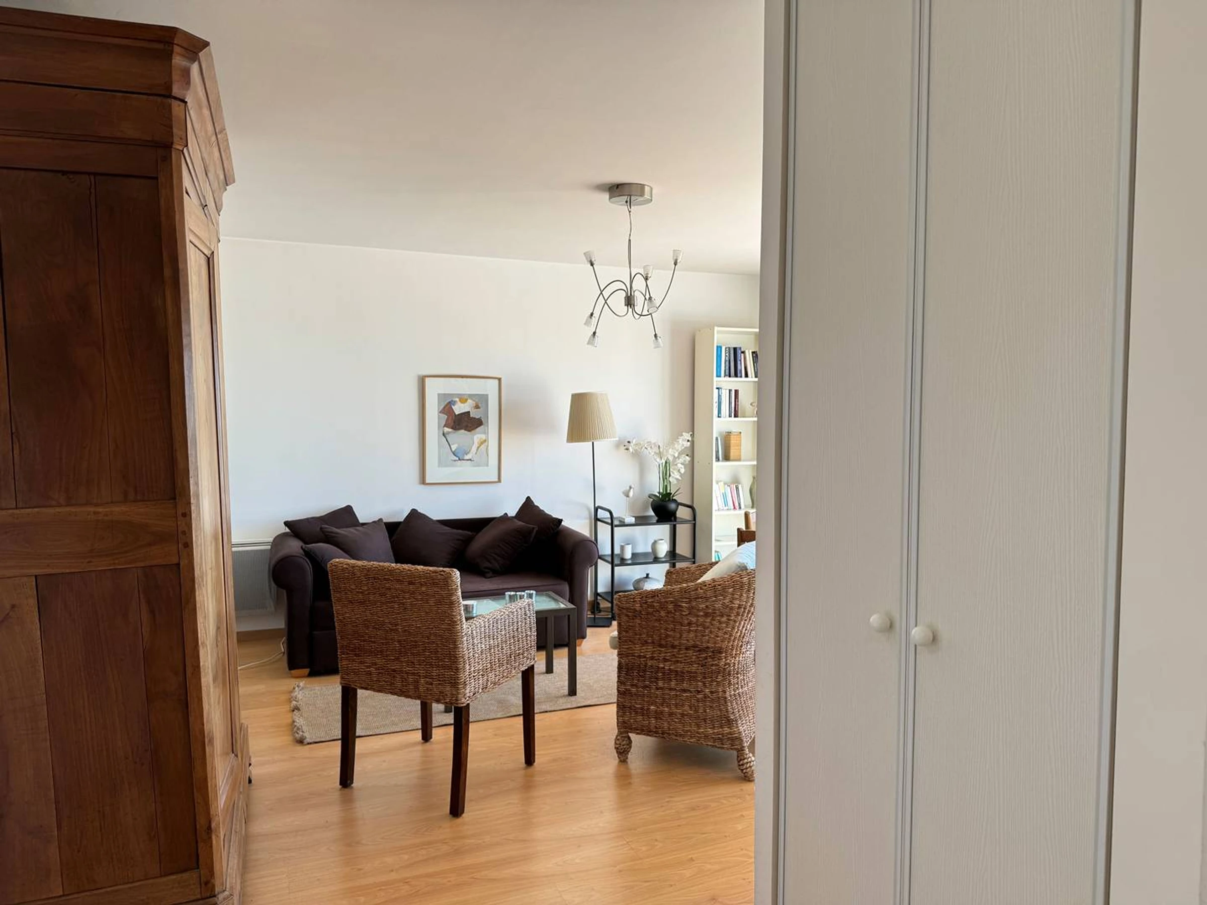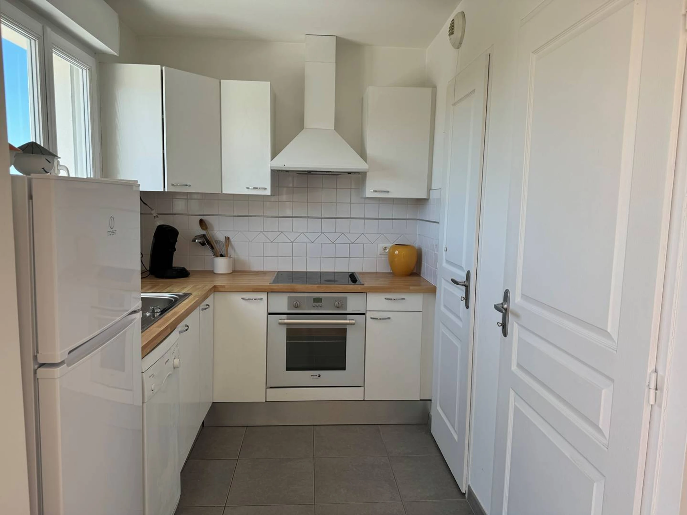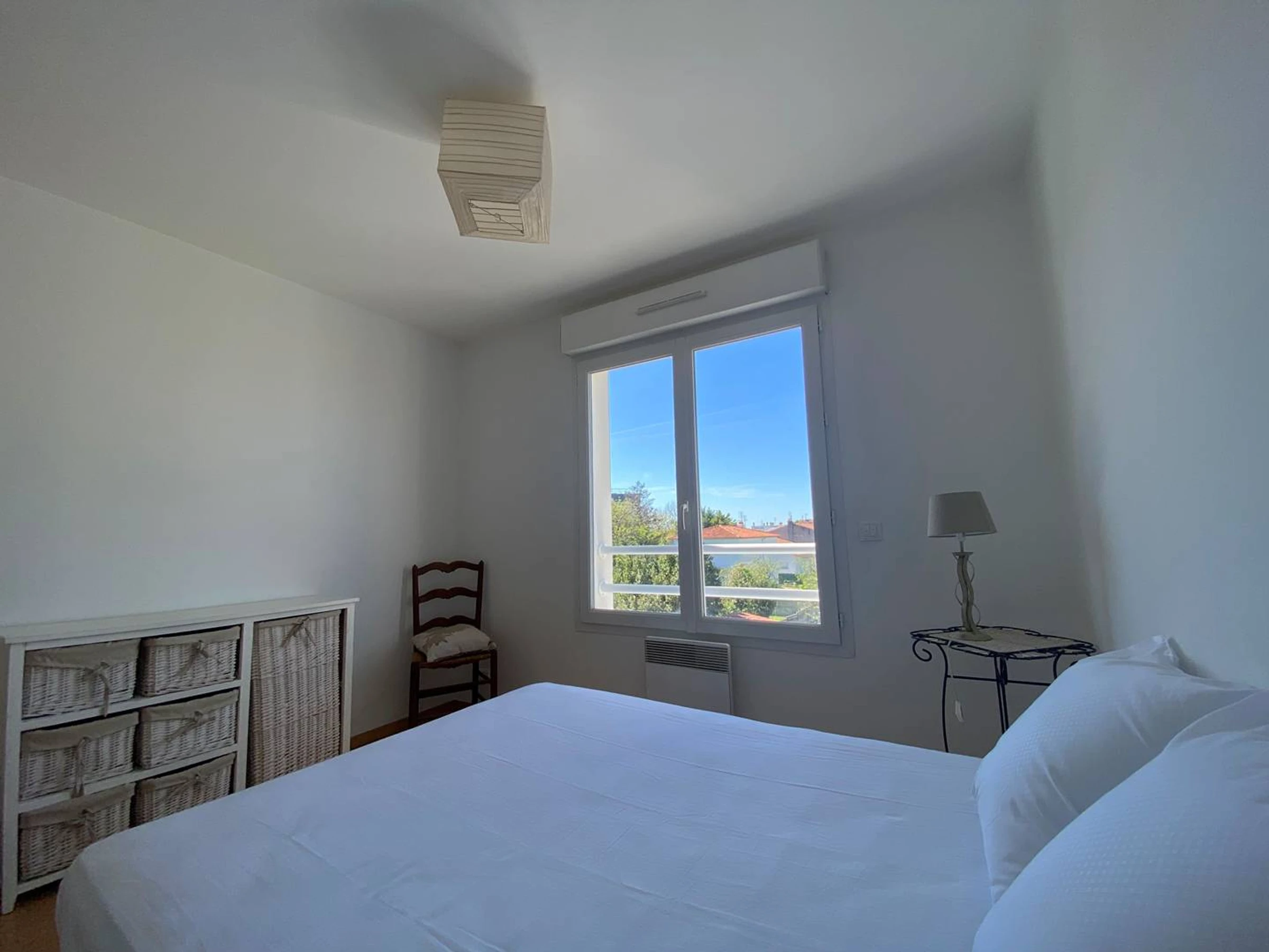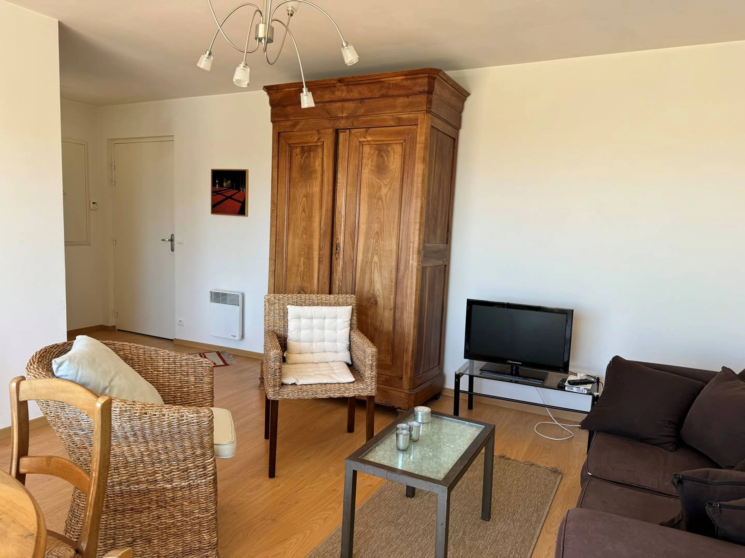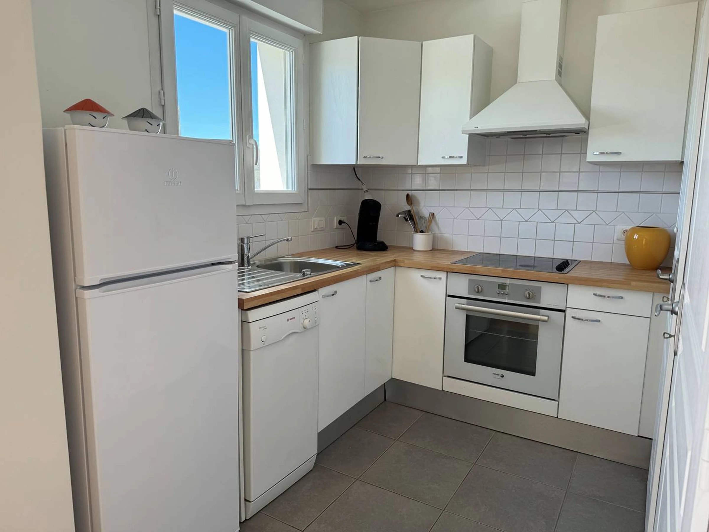 Charmant appartement lumineux de 47 m² dans une jolie résidence récente au calme. Au 3ème étage avec ascenseur, cet appartement est composé d'une entrée avec placard, une pièce de vie ouvrant sur un grand balcon, une cuisine aménagée et équipée (réfrigérateur-congélateur, plaque de cuisson vitrocéramique, four, hotte, lave-vaisselle, lave-linge, sèche-linge, cafetière senseo, bouilloire), une chambre avec placard et salle d'eau attenante (douche avec marche de 15cm), wc indépendant. Du balcon vous pourrez profiter d'une belle vue dégagée et prendre votre petit déjeuner ou déjeuner (mobilier d'extérieur). Pour votre stationnement, une place de parking privée et sécurisée. Appartement parfait pour de belles vacances à Royan en toute tranquillité. Linge de lit, serviettes, tapis de bain, torchons non fournis - prestations à commander sur demande. Prestation ménage sur demande, sinon une caution spécifique ménage sera demandée. Caution hébergement 300€ à verser par chèque à votre arrivée ou par le lien SWIKLY qui vous sera adressé.