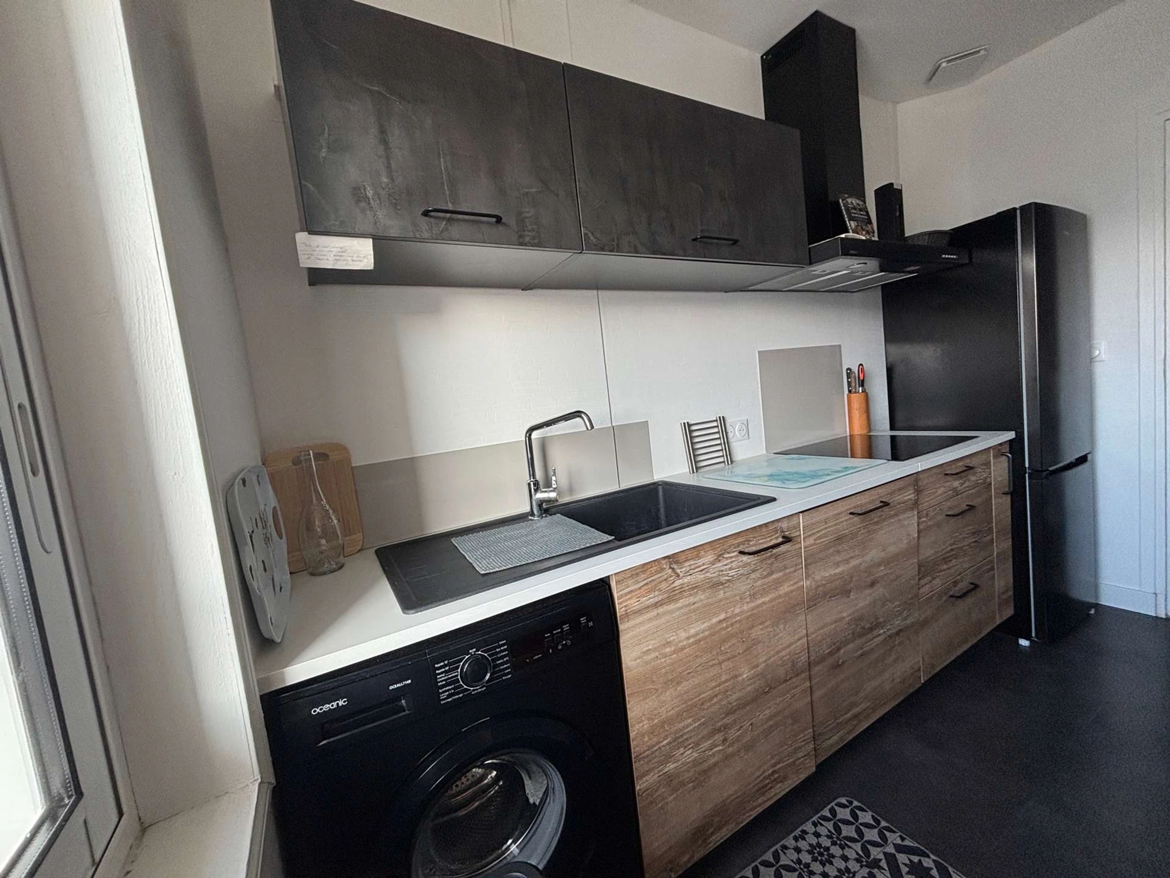 Une entrée avec rangements, une cuisine indépendante aménagée et équipée avec un coin snack et tout équipement pour bine cuisiner.