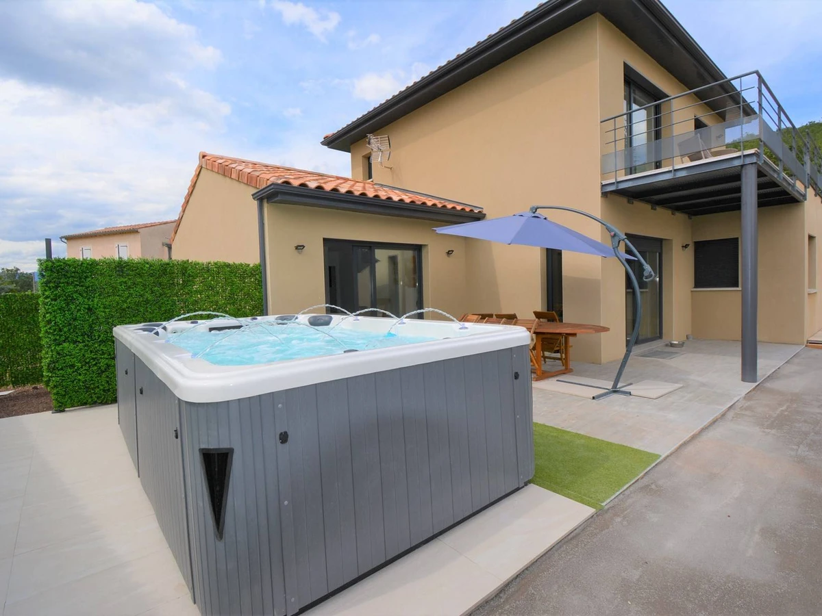 IMMOLOC ARDECHE vous propose une villa récente climatisée, située dans le Sud de l'Ardèche sur la commune de Ruoms, à seulement 5 minutes à pied centre ville de Ruoms, à moins de 14 minutes en voiture du centre ville de Vallon Pont d'Arc, nous vous invitons à découvrir cette villa aux belles prestations pour une capacité de huit personnes.