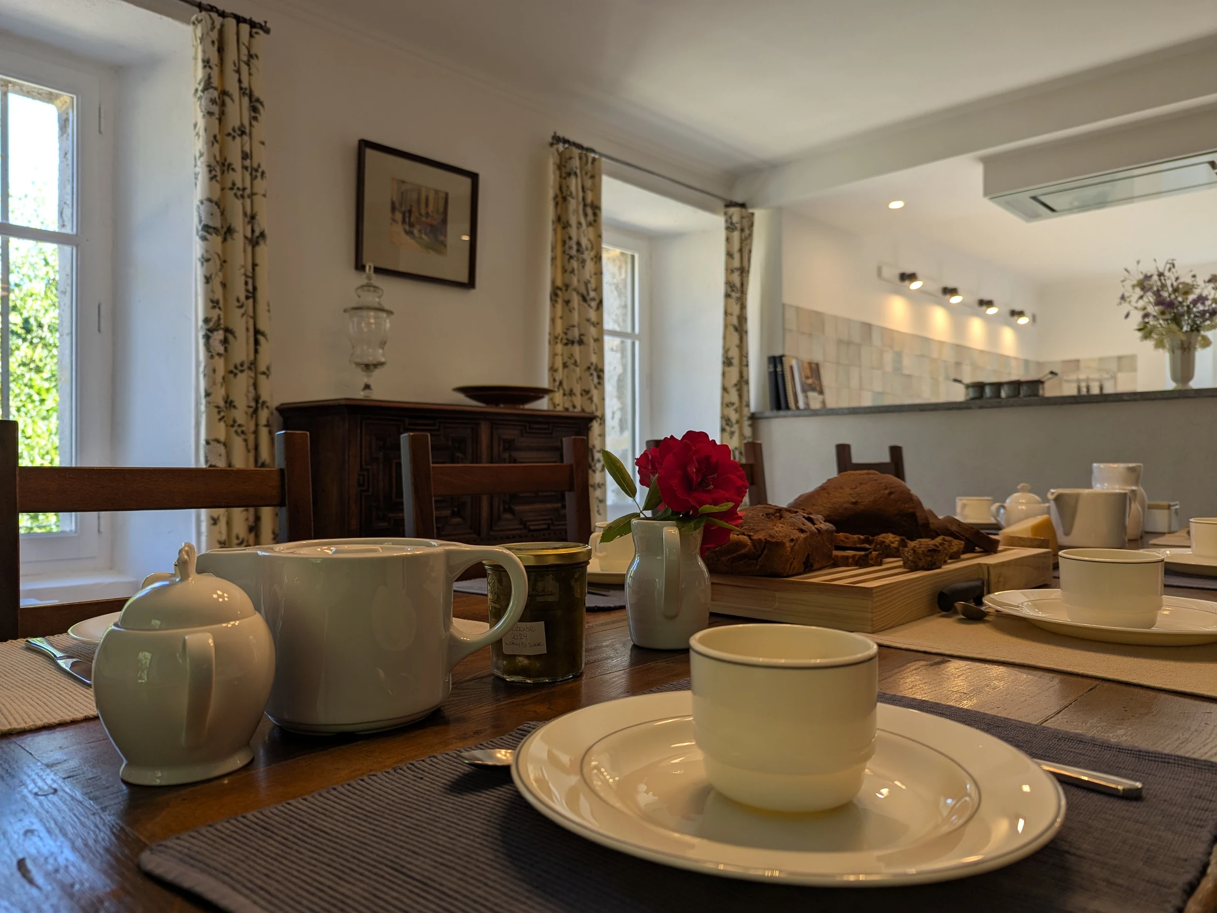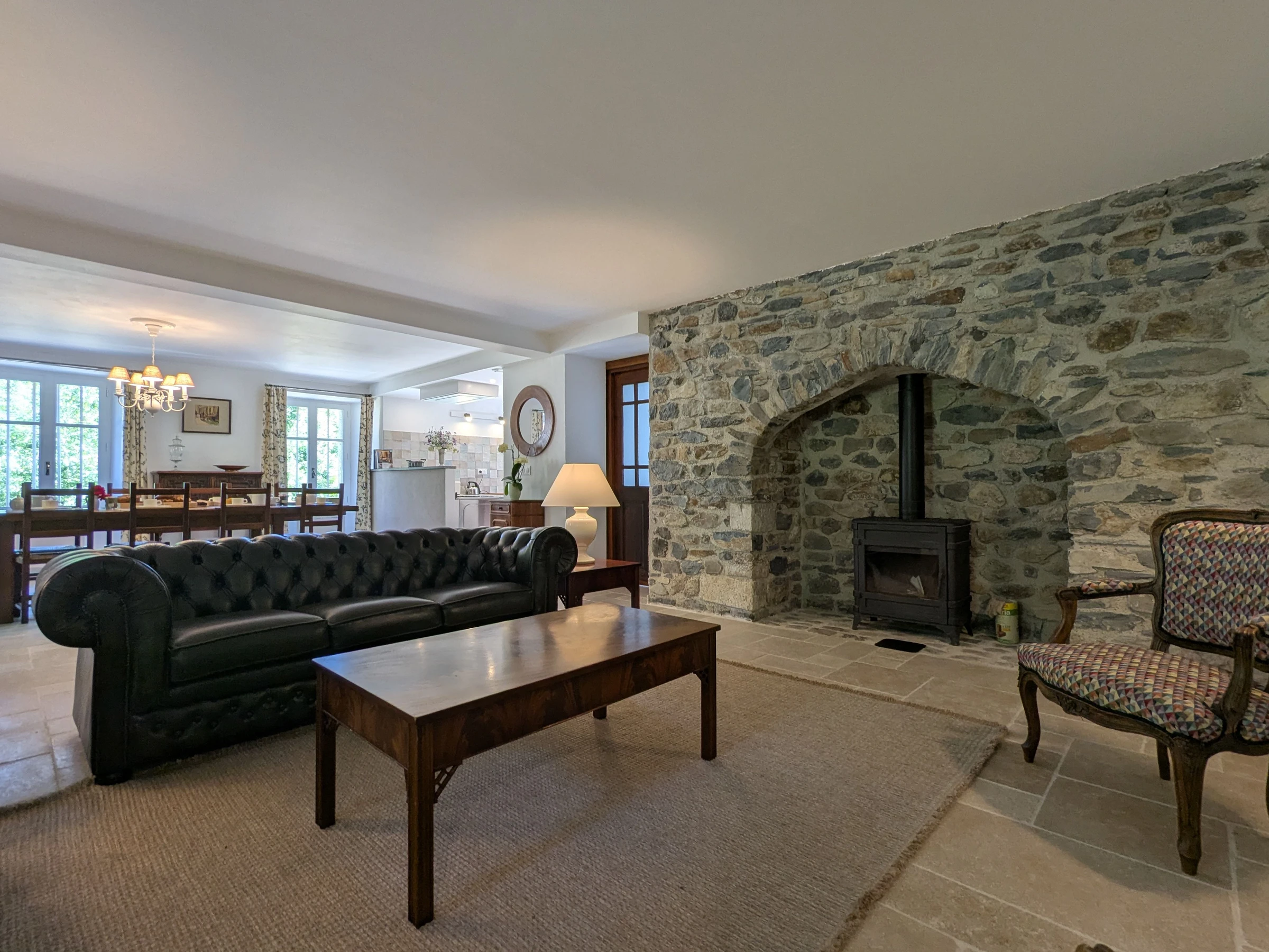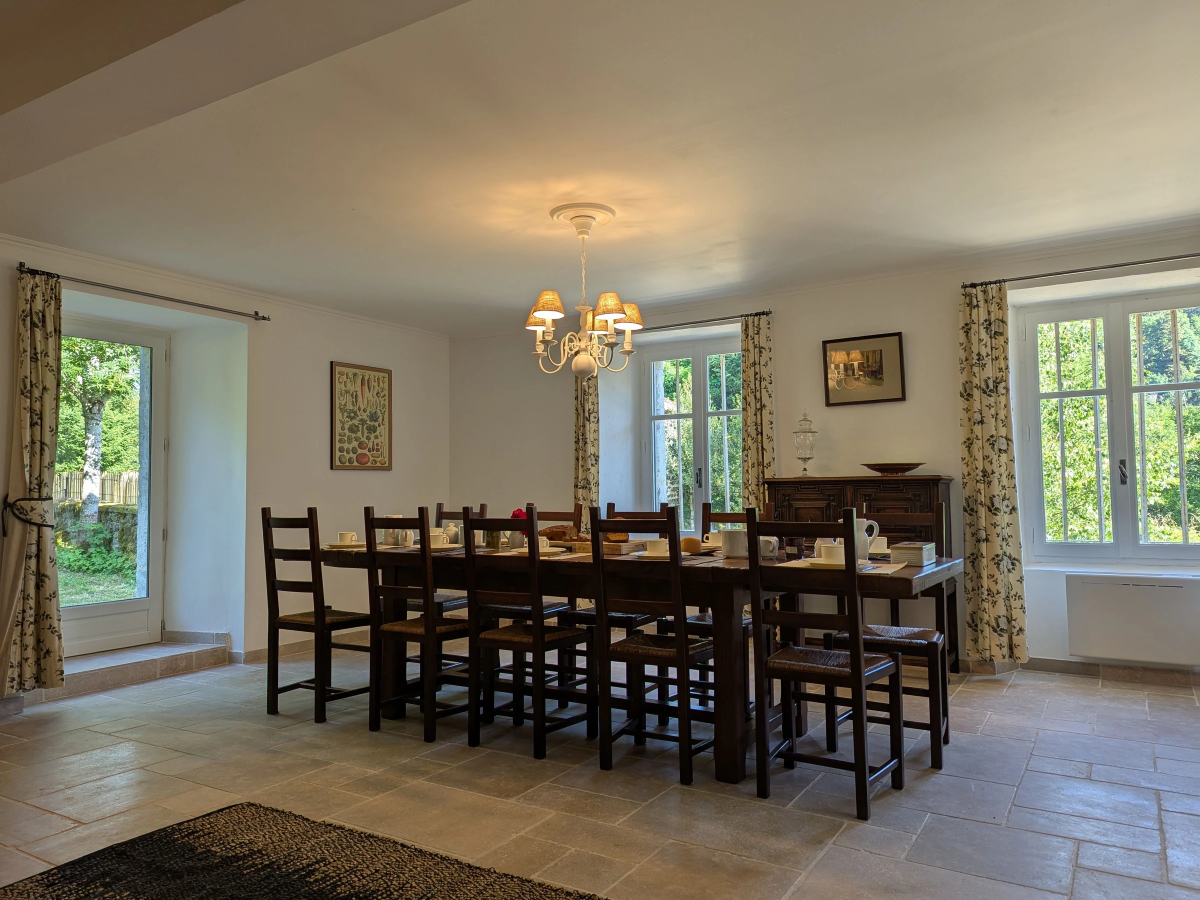 ⚠️ Afin de préserver la quiétude des lieux, les fêtes et événements festifs ne sont pas autorisés. On entre par un hall qui mène à une vaste pièce de vie baignée de lumière. La cuisine ouverte, équipée avec soin (piano de cuisson, réfrigérateur-congélateur, ustensiles, robots, marmites et plats à profusion), s’ouvre sur une grande table conviviale. Le coin salon, organisé autour d’un poêle à bois, invite à la détente après une belle journée en pleine nature.