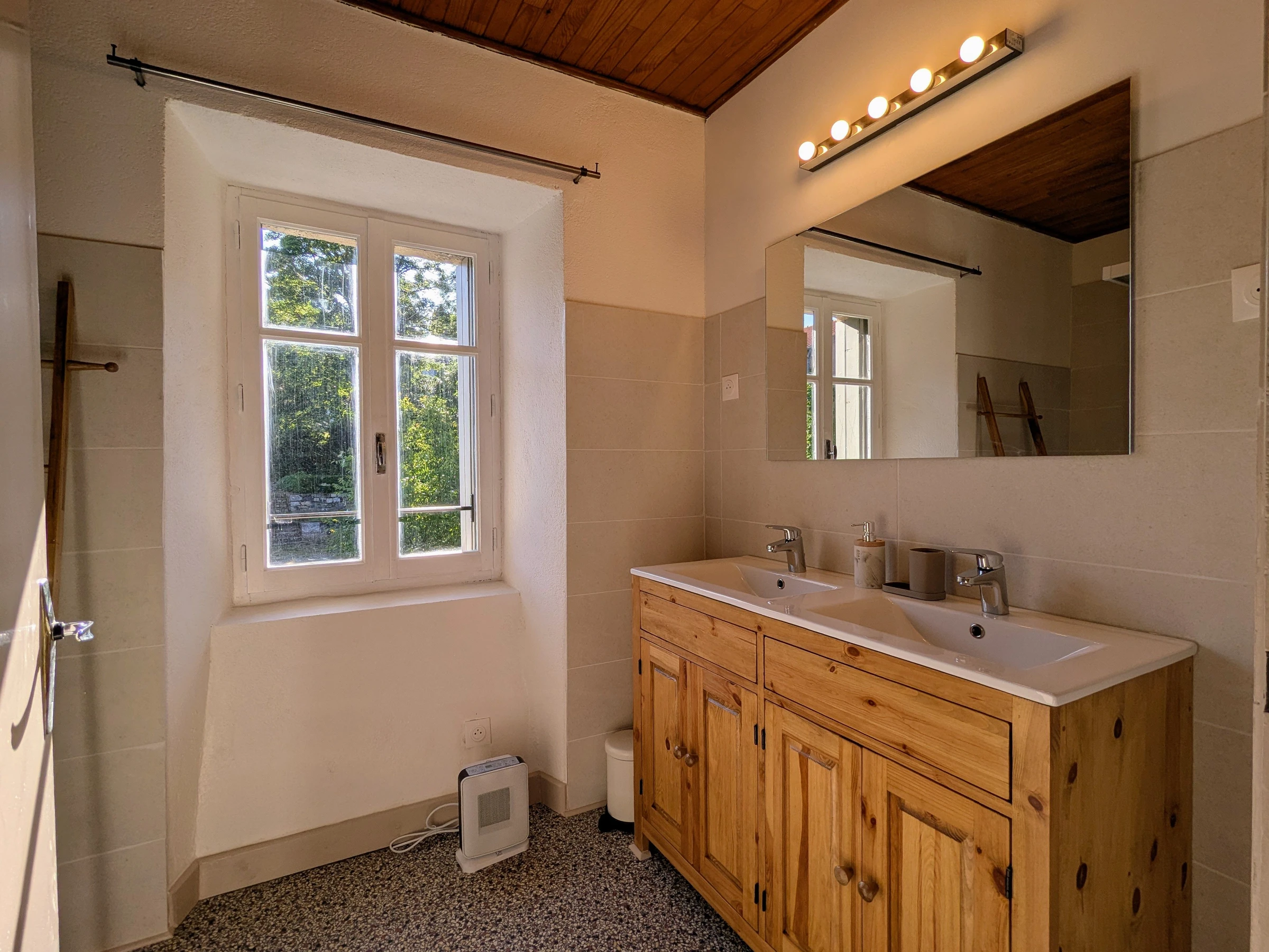 Un large escalier avec rampe vous conduit à l’étage, où vous trouverez quatre chambres et deux salles d’eau ainsi que deux WC séparés:
