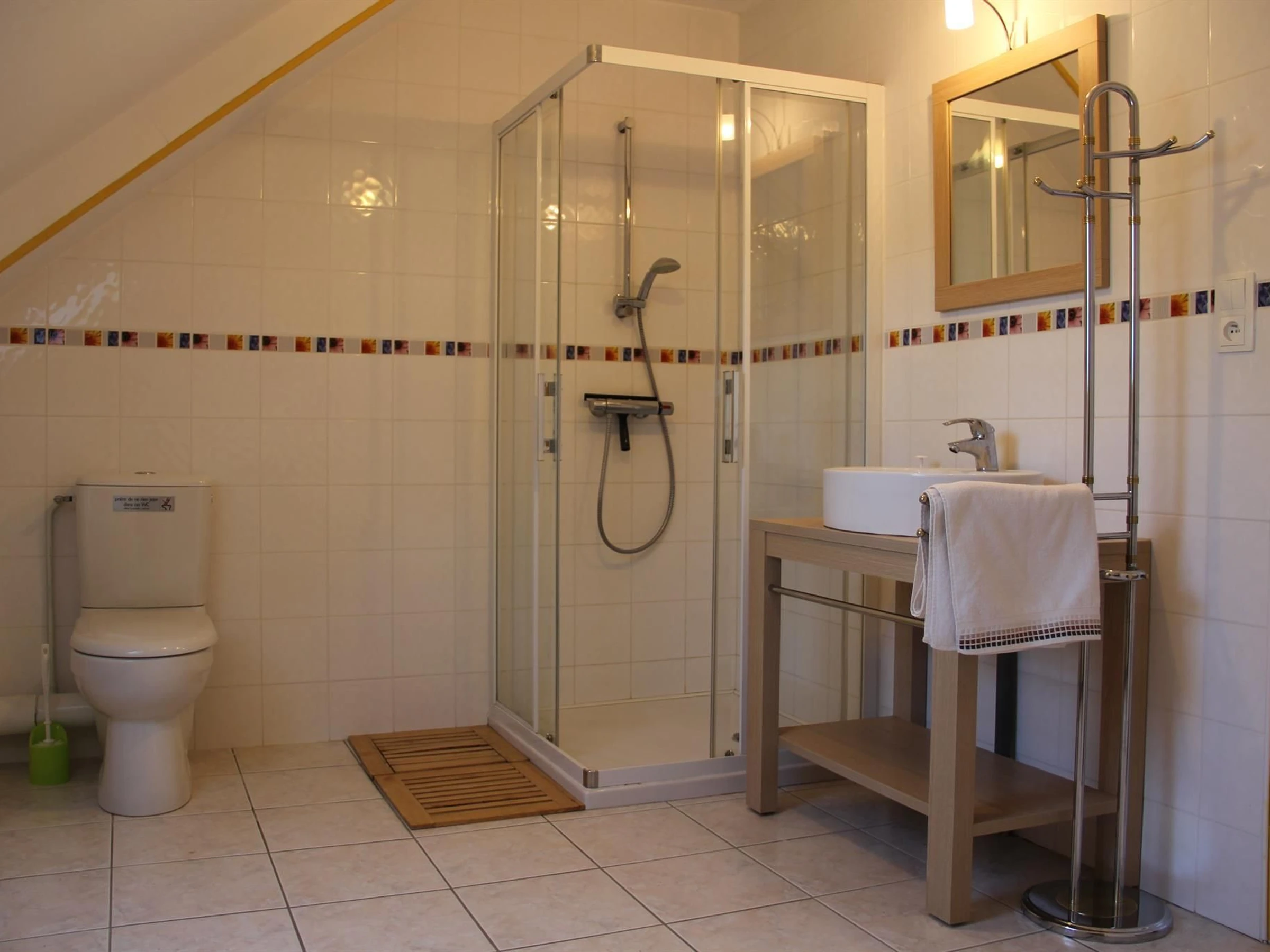 Au 1er étage : 1 chambre "Hirondelle" avec 3 lits 90x190 1 chambre " Mésange" avec 1 lit 140x190. Ces 2 chambres ont chacune un accès direct à la salle d'eau (douche et wc). Une 3éme chambre " Tourterelle" avec 1 lit 140x190, 1 lit 90x190 ( un lit bébé peut être installé ) est accessible en passant par la chambre Mésange . Des livres sont à disposition dans chaque chambre. Si vous avez commencé un livre au cours de votre séjour, vous pouvez le ramener chez vous et le renvoyer . Téléphone à disposition. La grange a été aménagée en cuisine d'été avec 2 grandes tables permettant de partager des moments conviviaux. Gîte Bébé Câlin : équipement bébé fourni. Possibilité d'accueillir des chevaux.