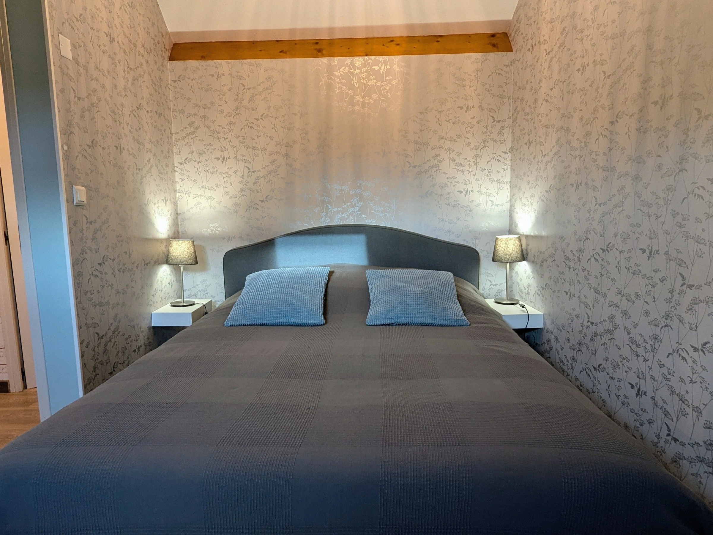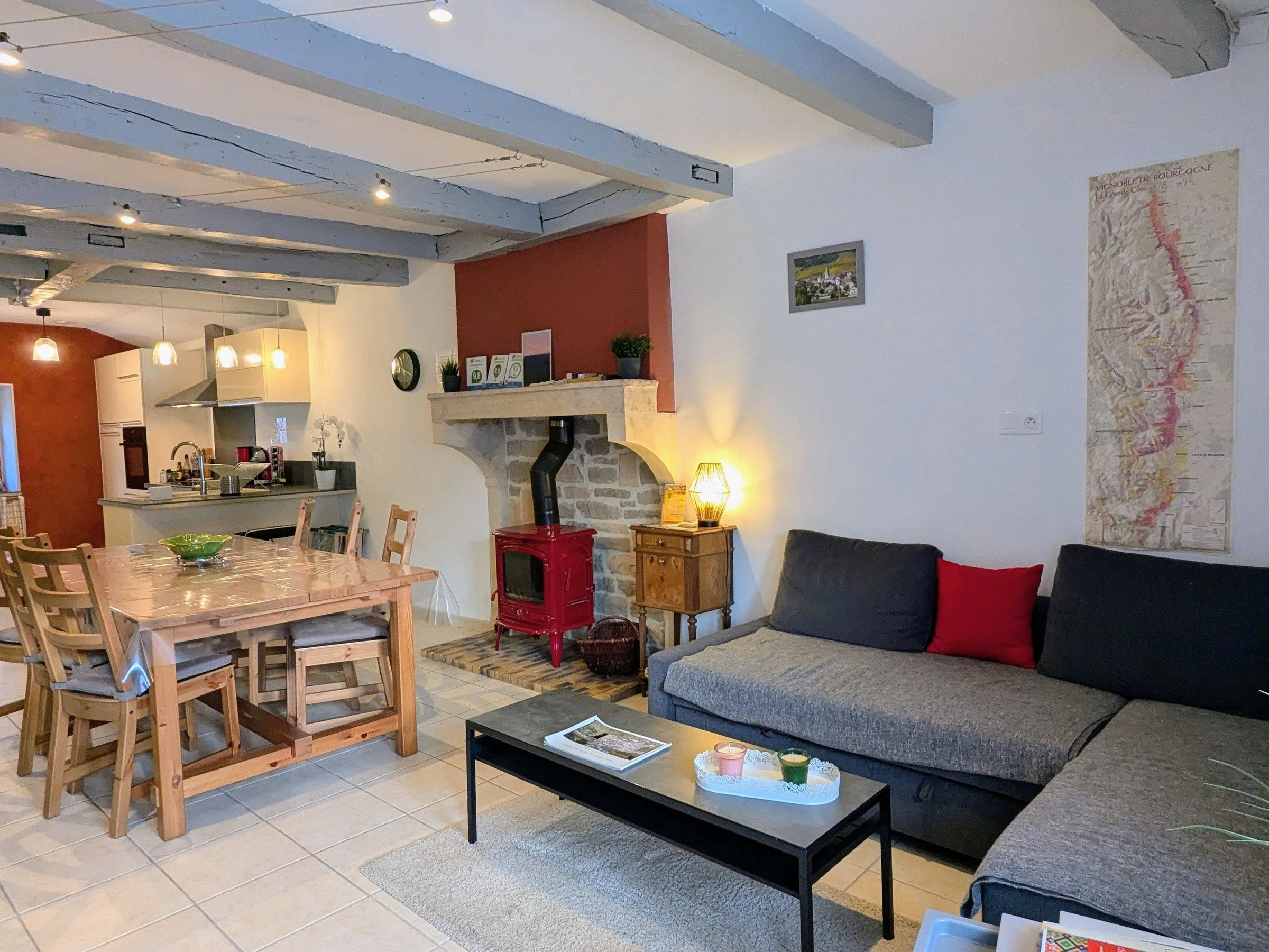 Dans un petit village viticole, à proximité du domaine des propriétaires, le gîte "De la Vigne au Vin", situé au 1er étage d'une jolie maison en pierres, vous offre : cuisine entièrement équipée ouverte sur salle à manger/salon, avec TV, wifi, poêle à bois (bois fourni) et accès direct à la grande terrasse, 1 chambre avec 1 lit de 160 cm, 1 WC indépendant, 1 salle de bain. A l'étage : 1 chambre avec 2 lits de 90 cm, 1 chambre avec 1 lit de 160 cm. Lit parapluie et chaise haute à disposition. Buanderie avec lave-linge et sèche-linge au sous-sol (accès par l'extérieur). Local fermé pour vélos. A l'arrière, terrain clos avec grande terrasse en bois, salon de jardin, parasol et plancha électrique. Parking privé 3 places devant le gîte.