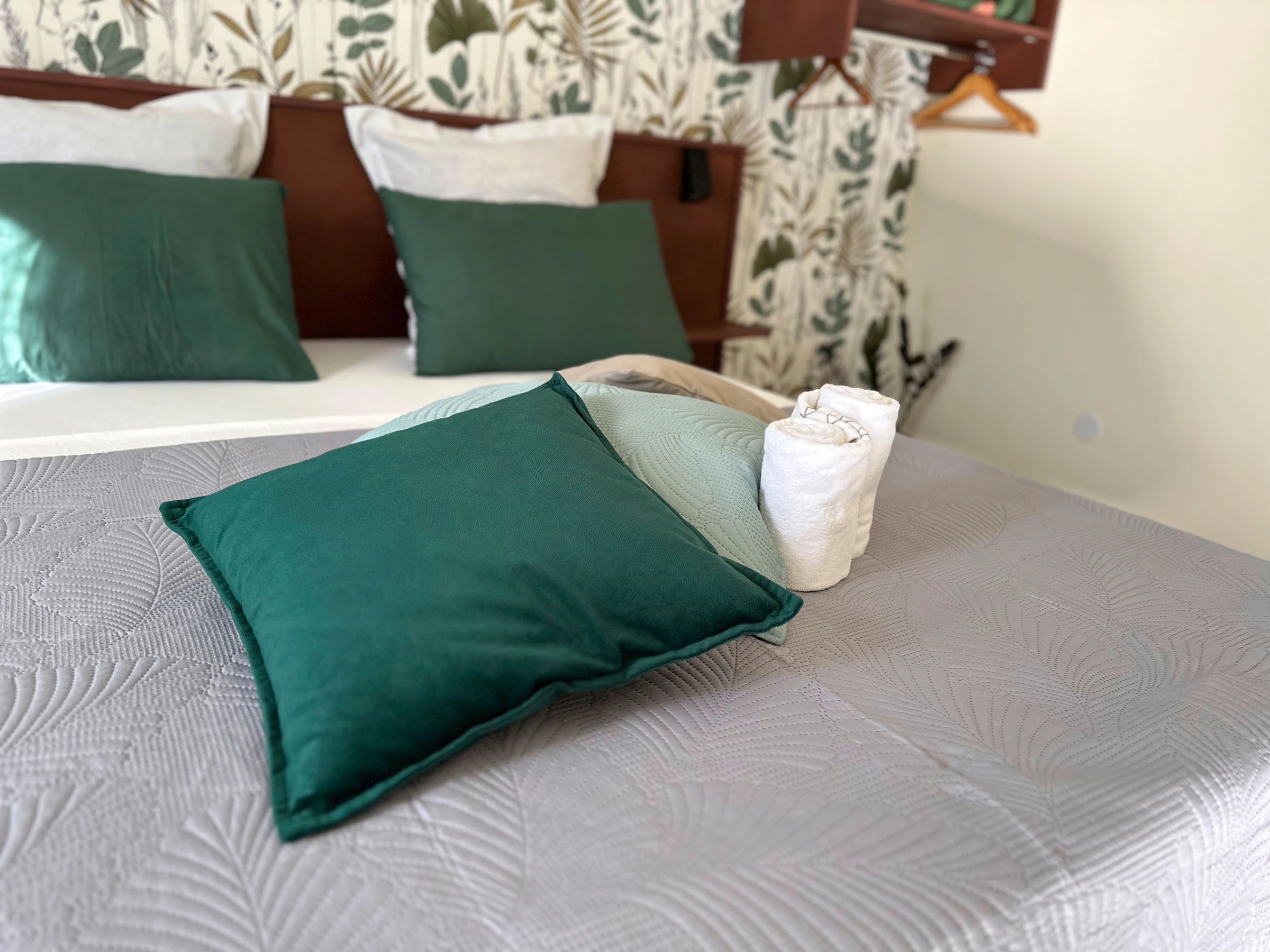 Nous proposons trois chambres doubles de 15 m², chacune équipée de sanitaires privatifs pour votre confort. La maison, nichée sur un terrain agricole, offre une magnifique vue sur une prairie entourée de pitons et de remparts, créant un environnement propice à la déconnexion et à la sérénité. Ici, le calme est omniprésent, permettant de se ressourcer pleinement.