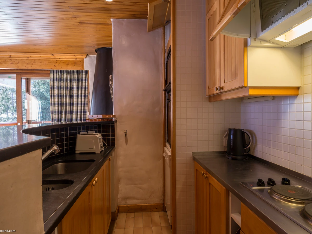 Appartement avec une belle terrasse exposée Sud, décoré de bois et élements chaleureux de montagne. Une chambre avec lit double et un chambre avec deux lits superposés. Canapé convertible dans le salon. Idéal pour une famille de 5. Situé quartier du Jardin Alpin, entre sapins et chalets.