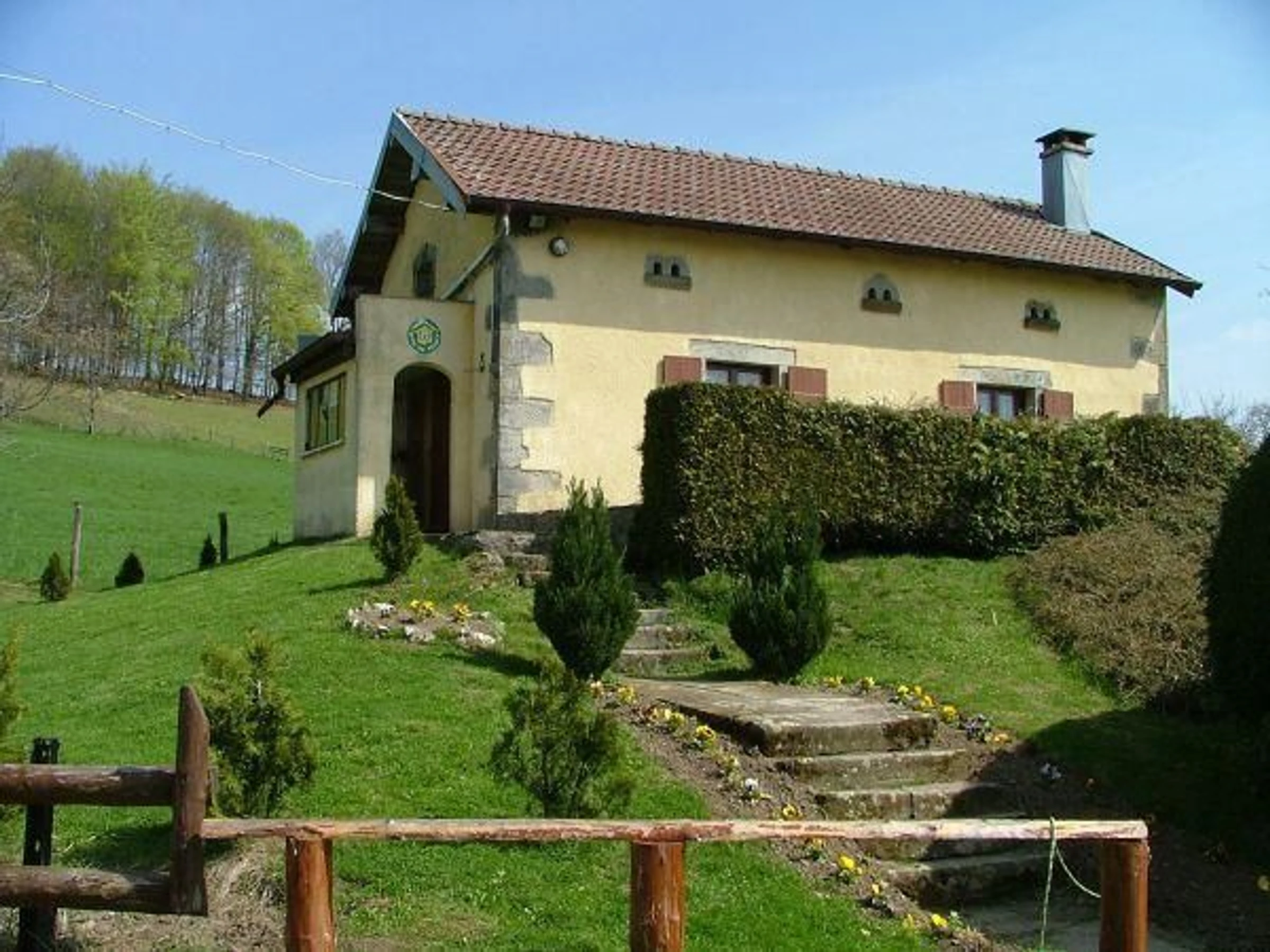 À faire : chasse, pêche et balades sur les sentiers de randonnée (dont un circuit balisé avec table de lecture), ski et luge en hiver. Dans un hameau à 3 km du village au cœur des Vosges Saônoises, petite maison indépendante avec jolie vue sur la campagne environnante, comprenant au RDC : cuisine/coin séjour, 1 chambre (1 Lit 140 cm) salle d'eau/WC. 1er étage : 1 espace couchage sous les combles (accès par escalier rapide) ; couchages supplémentaires possibles (2 lits 90cm). Garage. Terrain en pelouse privatif non clos. Chauffage central fuel.