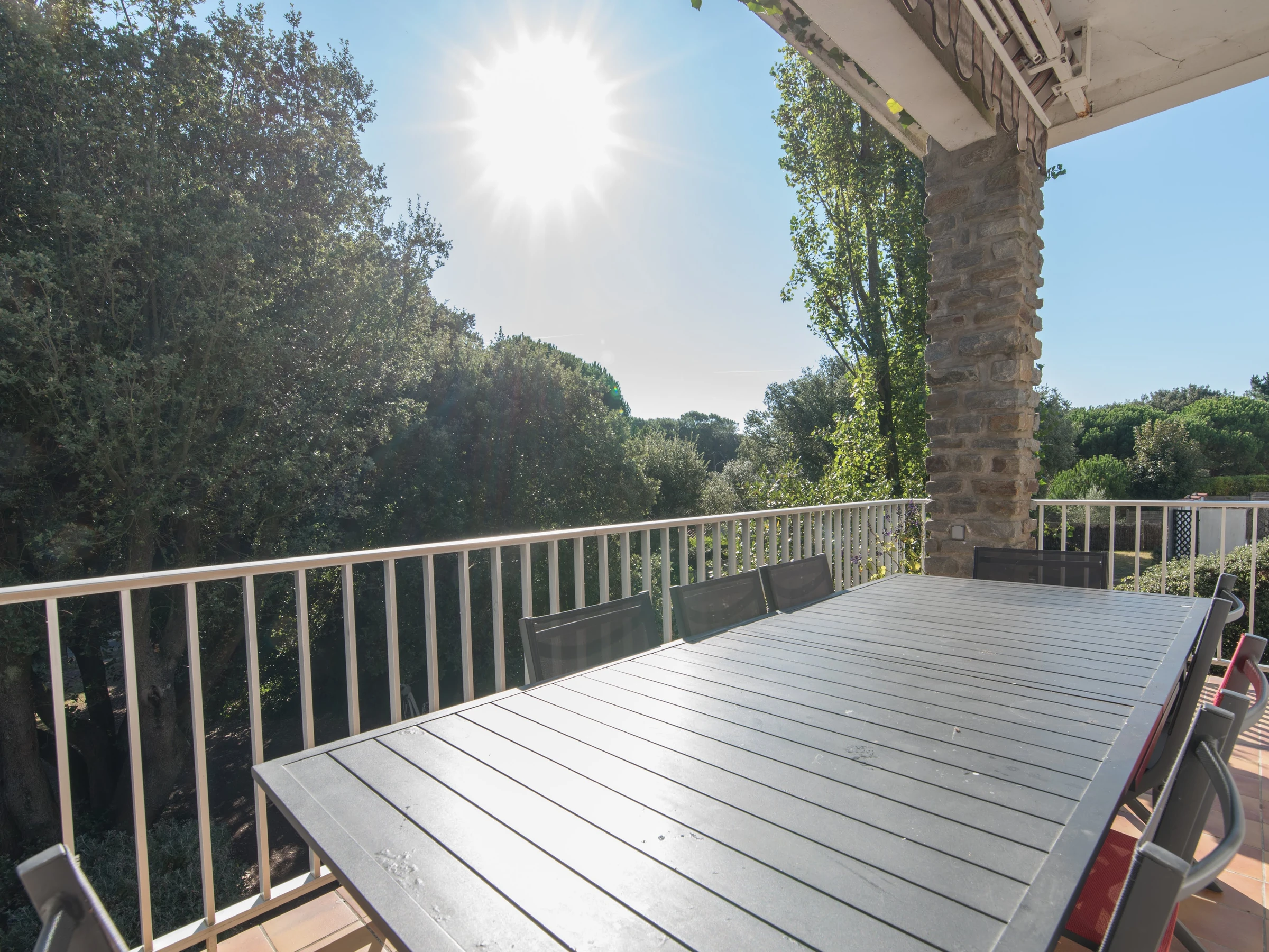 -Espace extérieur : terrasses ensoleillées avec salon de jardin, barbecue et transats pour profiter du climat et de la vue sur la pinède.
