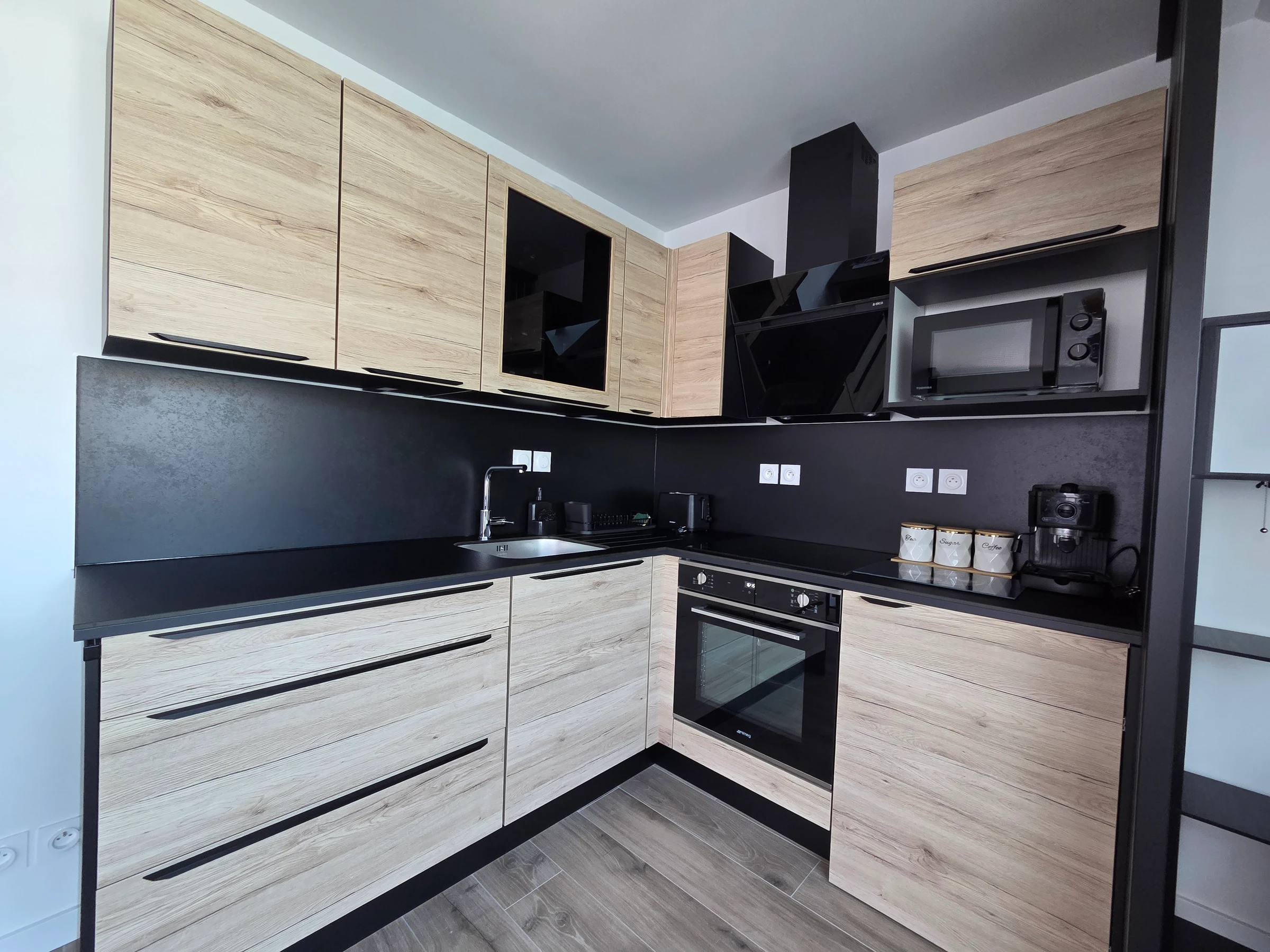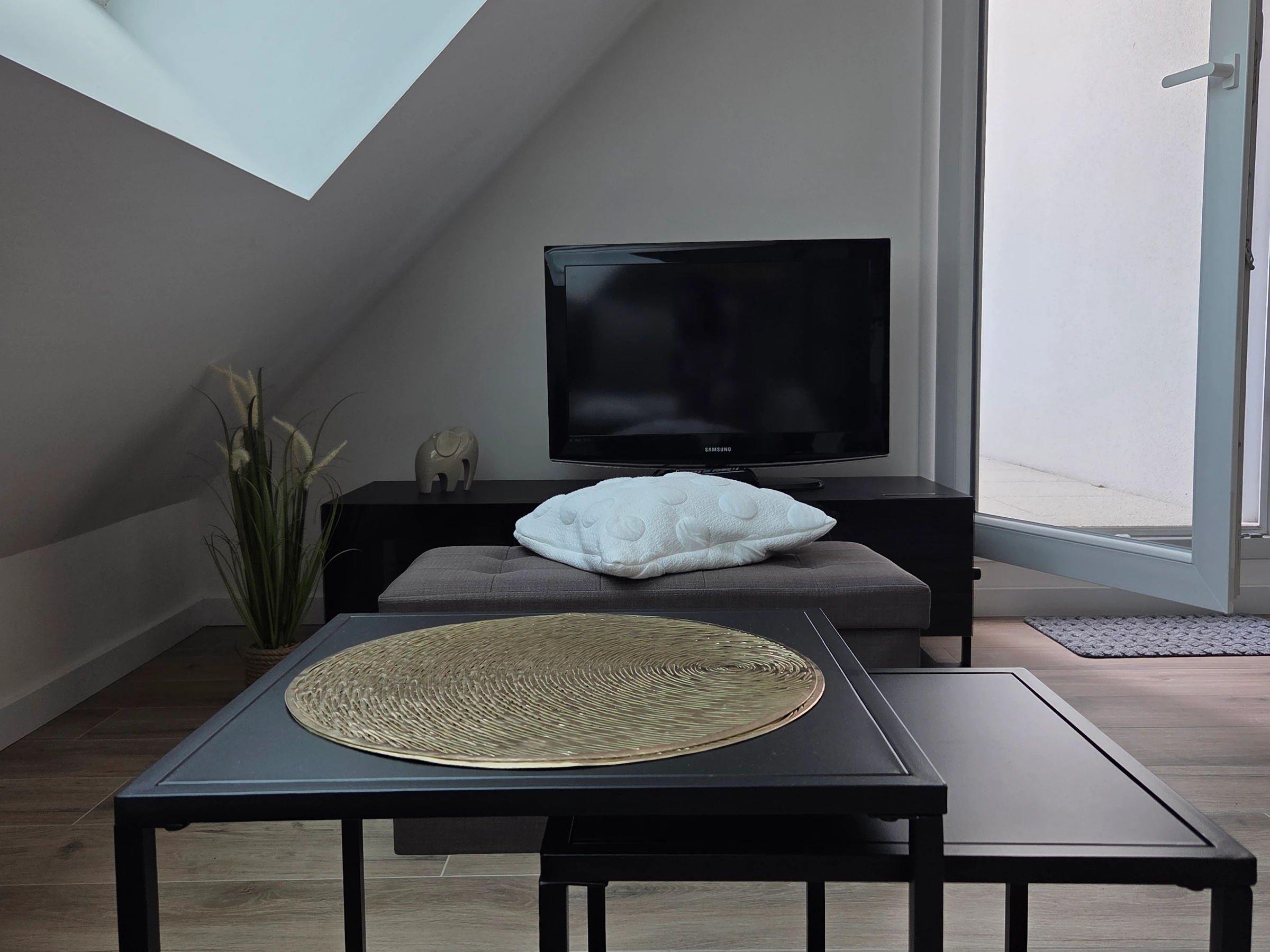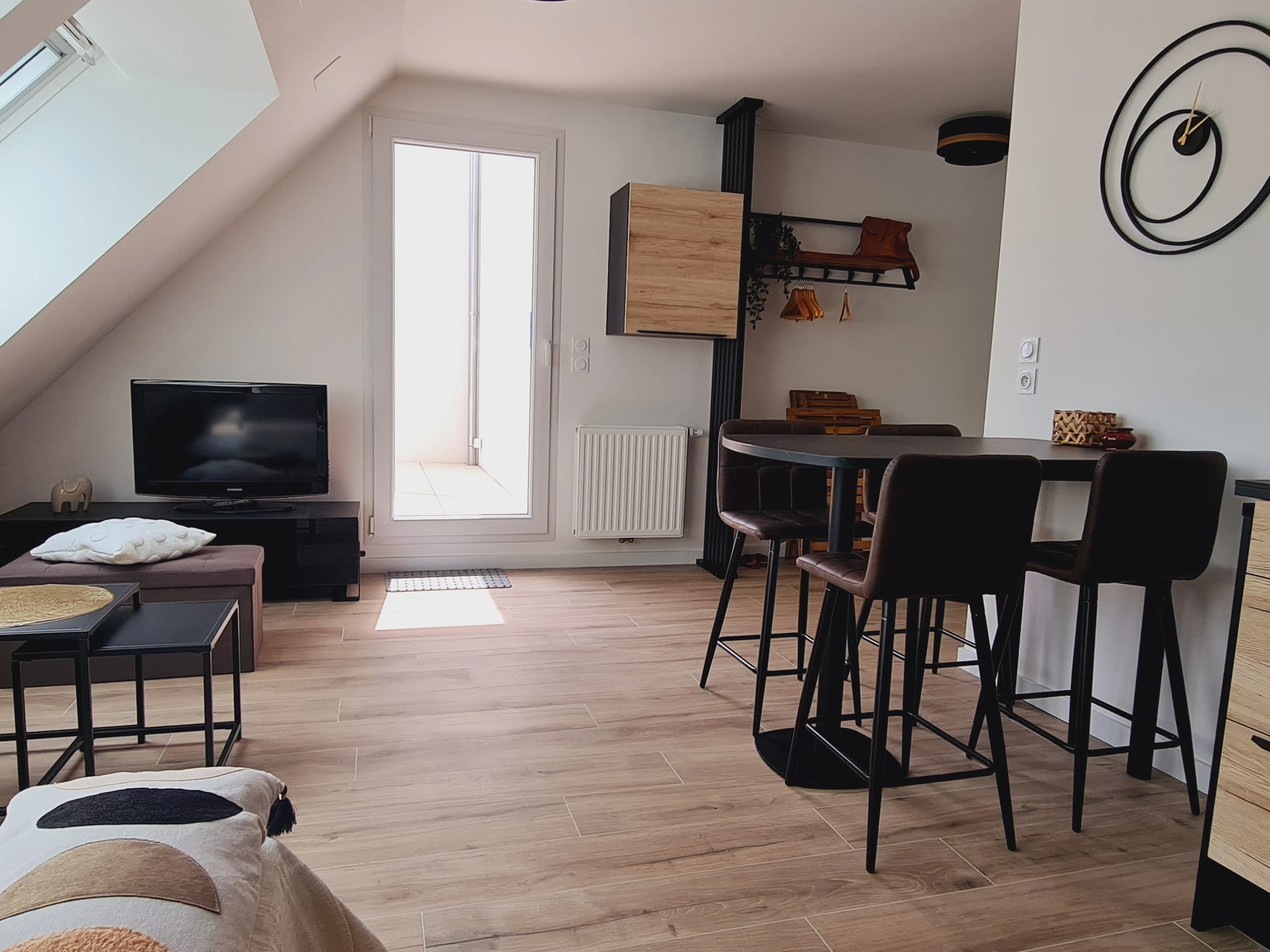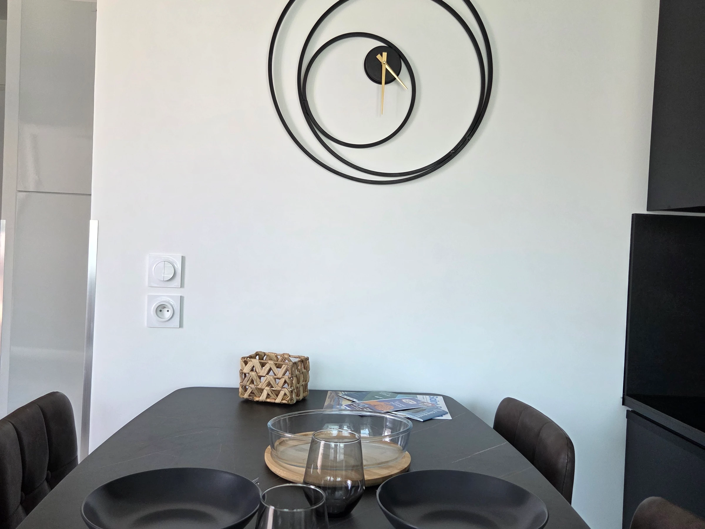 Ce studio neuf de 23 m² a été décoré avec soin et est parfaitement équipé pour un séjour tout confort à deux. Il se compose d’un salon-séjour avec un coin nuit, d’une cuisine aménagée et entièrement équipée, d’une grande salle d’eau moderne avec douche, ainsi que d’une terrasse sans vis-à-vis avec table pour vos repas en extérieur.