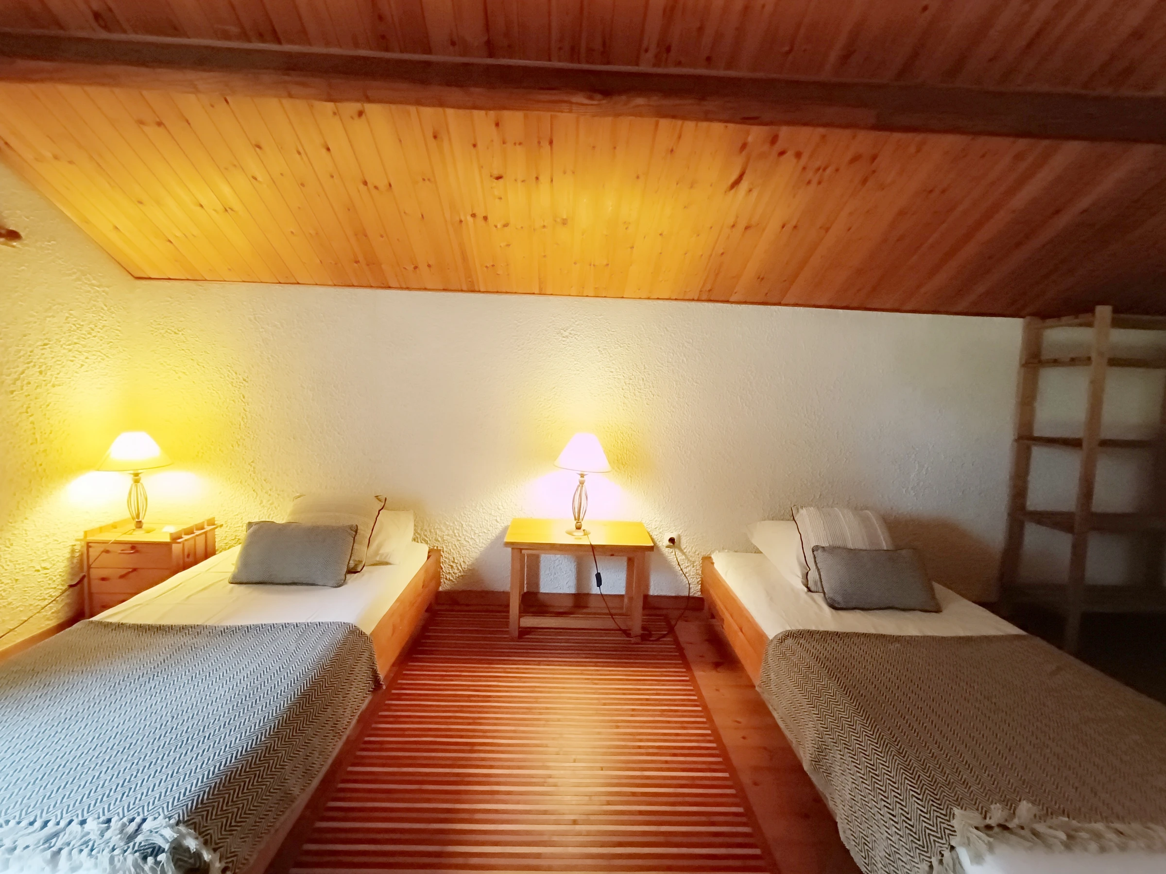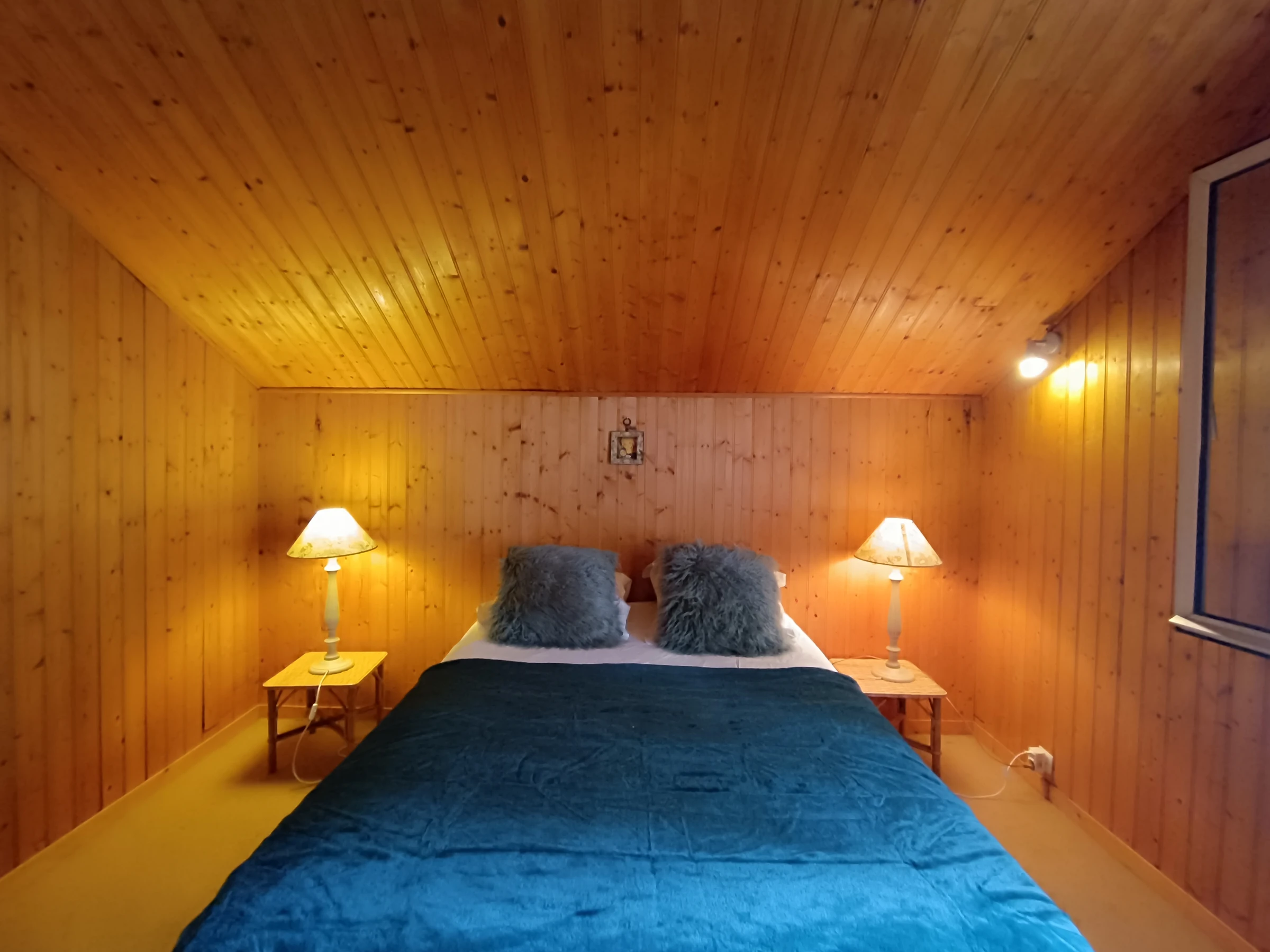 -3 chambres :Rez-de-chaussée : 1 chambre avec lit double (140 cm) ; Étage mansardé : 1 grande chambre avec lit double (140 cm) et mezzanine avec 2 lits simples (90 cm)