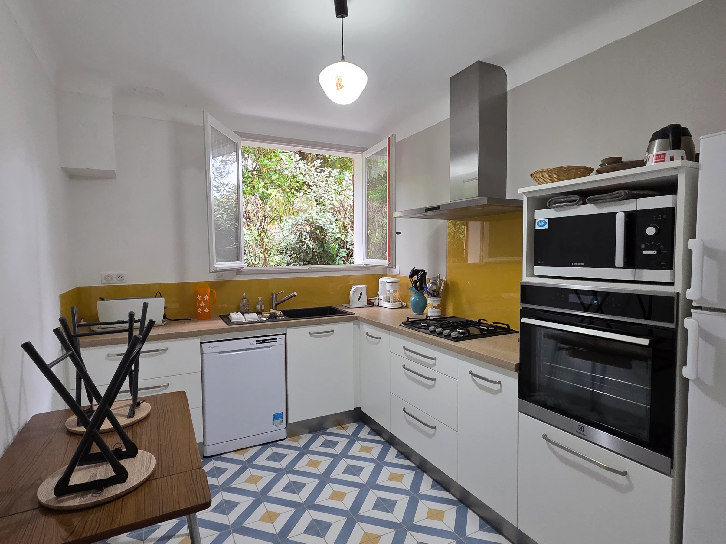 Elle offre un séjour lumineux ouvrant sur une terrasse exposée plein sud, équipée d’un salon de jardin et d’un barbecue pour profiter des belles journées.
