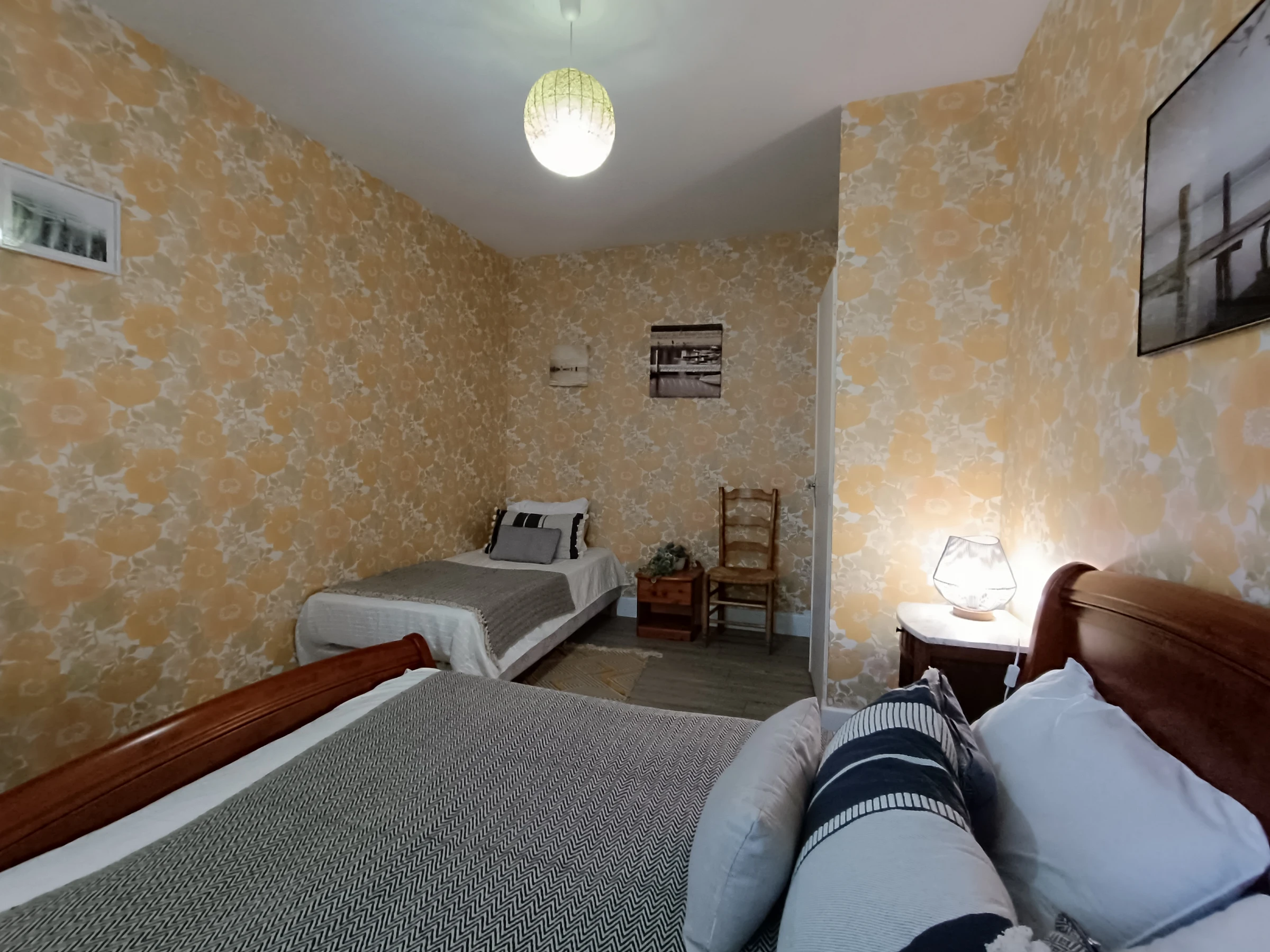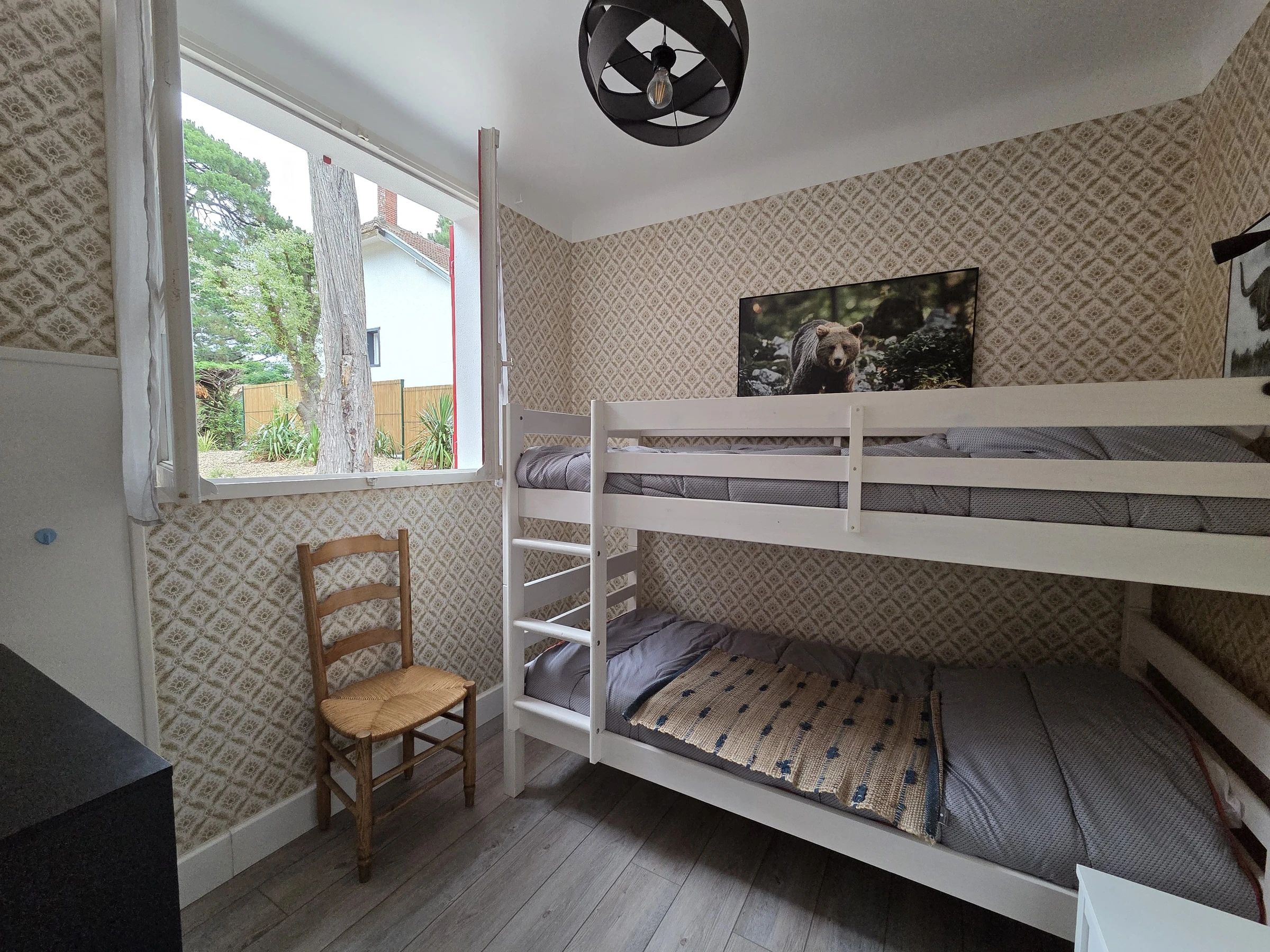 La cuisine est entièrement aménagée et équipée, avec lave-vaisselle. La maison dispose de quatre chambres : deux avec lit double 140 cm, une avec lit double 140 cm + lit simple 90 cm, une avec lits superposés. Salle d’eau confortable.