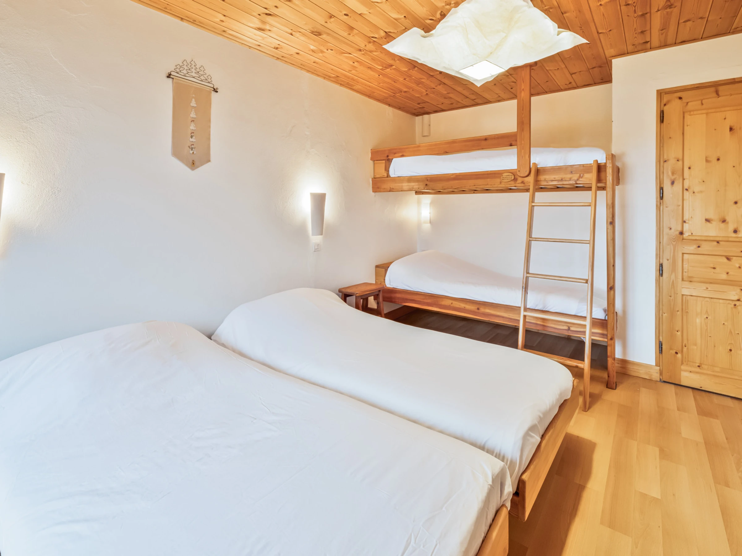 Chambre 1 avec : 1 lit(s) double(s) en 140, Chambre 2 avec : 2 lits simples (90cm) pouvant être rapprochés pour faire un lit double, 2 lits superposés
