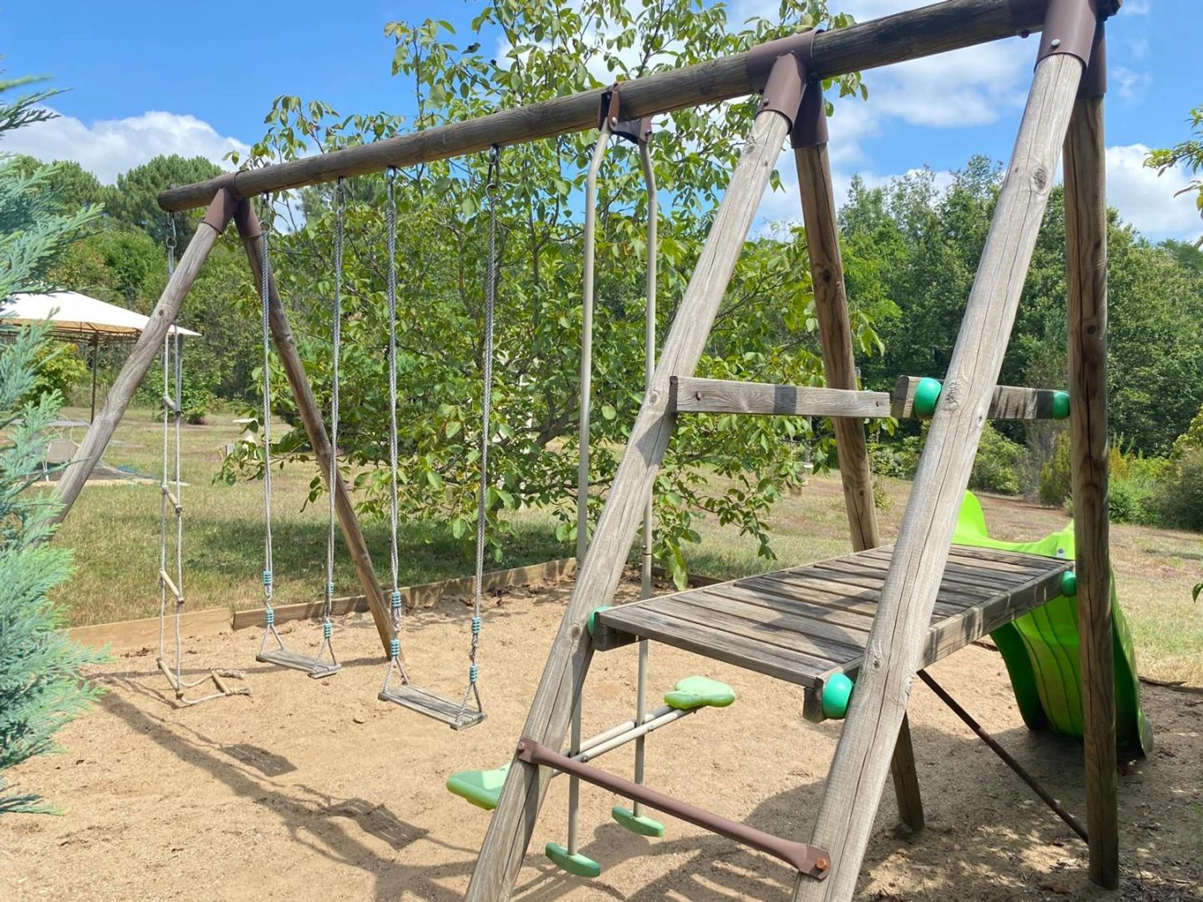 Vous profiterez de sa piscine privative semi enterrée clôturée (8 x 4 m, profondeur 1,25 m), de deux terrasses privative aménagées (barbecue, salon de jardin, chaises longues) . Situés à Saint-Chamassy, à seulement 5 minutes du Bugue, cette maison en bois est une invitation à la simplicité et à l’authenticité. Grâce à leur décoration naturelle et apaisante, retrouvez le goût des choses vraies dans un cadre de verdure de 1 hectares. Vous pouvez rejoindre à pieds les étang du Boss, un régal pour les enfants et le adultes.