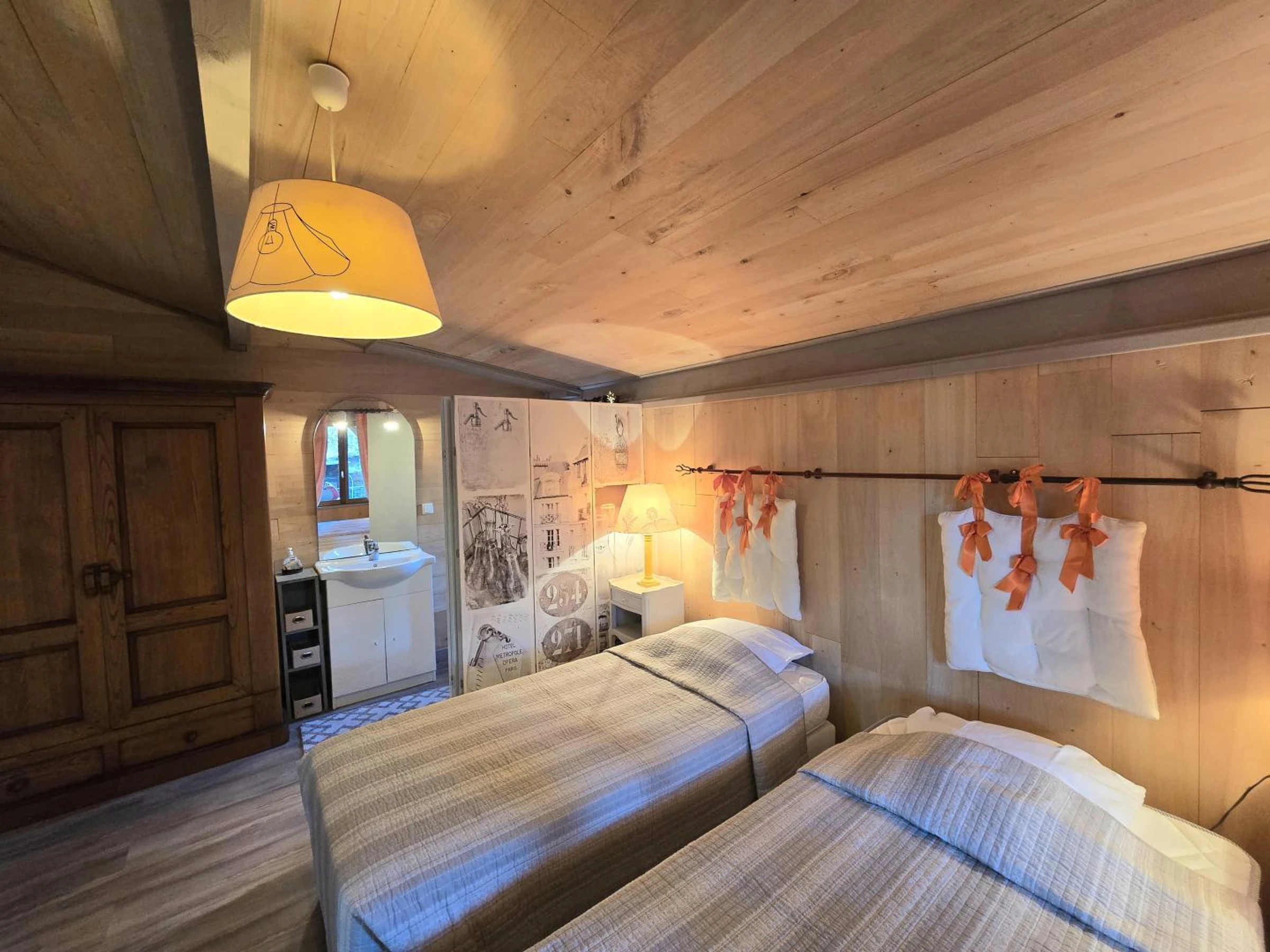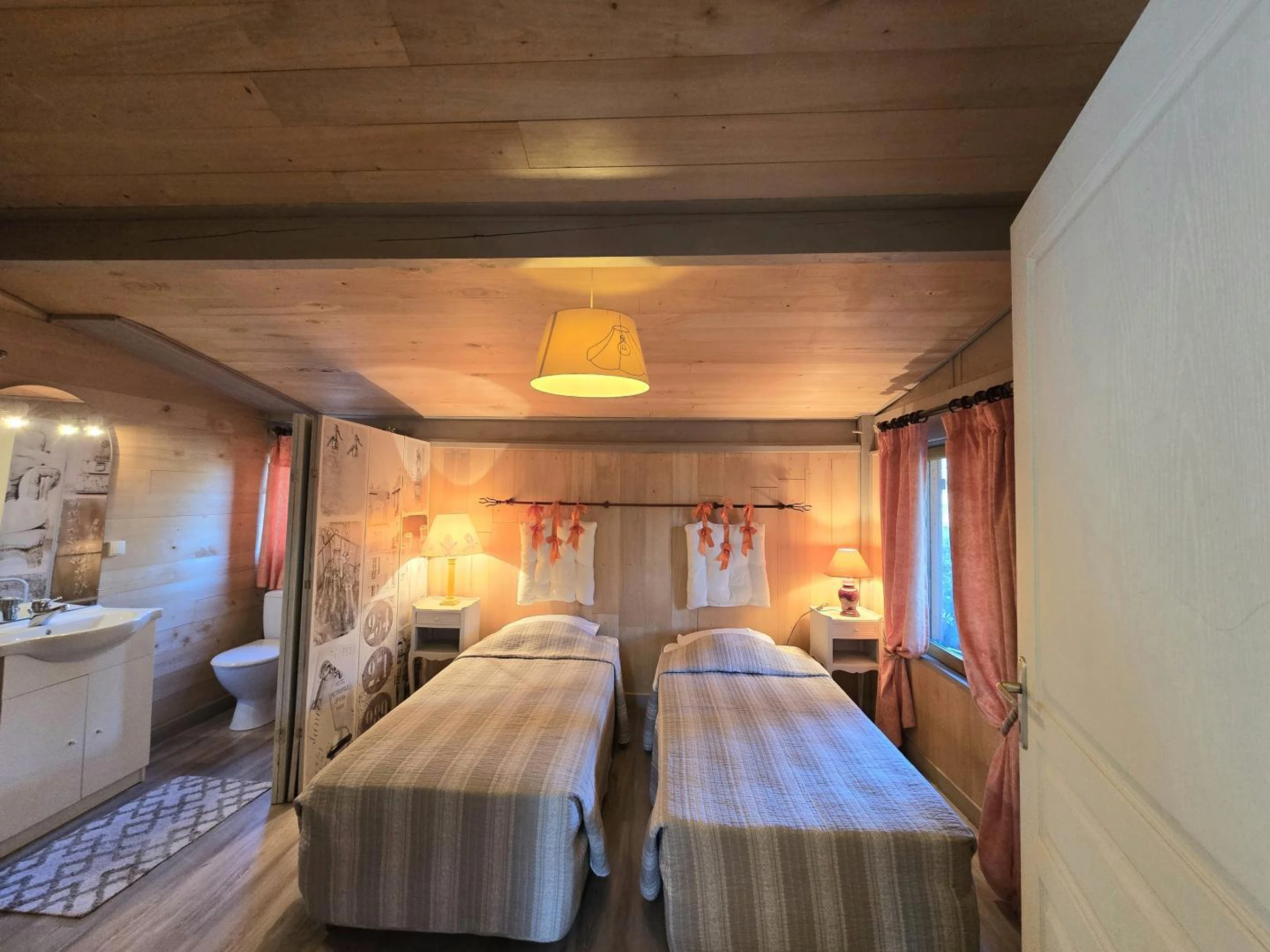 2 chambres,1 lit de 140 et 2 lits simples de 90 avec WC et lavabo privatifs