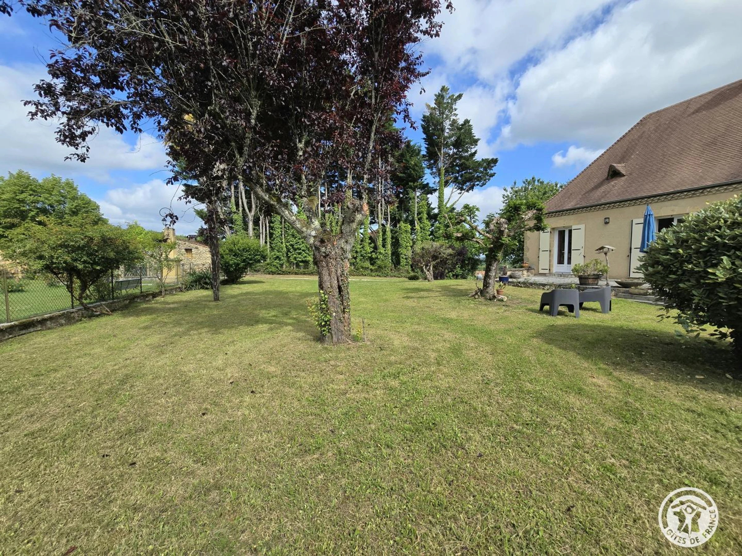 Draps 12 €/lit/change. Ménage fin de séjour 50€. Chauffage : 10€/nuit. Au cœur du village de Saint-Chamassy, cette maison de caractère vous surprendra par son vaste jardin paysager, un véritable écrin de verdure insoupçonné. Située dans un parc privé jouxtant un manoir et l’église, elle bénéficie d’un emplacement privilégié à seulement 3 km de Limeuil, classé parmi les plus beaux villages de France, au confluent de la Dordogne et de la Vézère. À proximité : le gouffre de Proumeyssac, les grottes de Bara-Bahau et de Saint-Cirq, l’Aquarium du Périgord Noir, les Jardins de Planbuisson ou encore Sarlat et Lascaux à moins d’une heure.