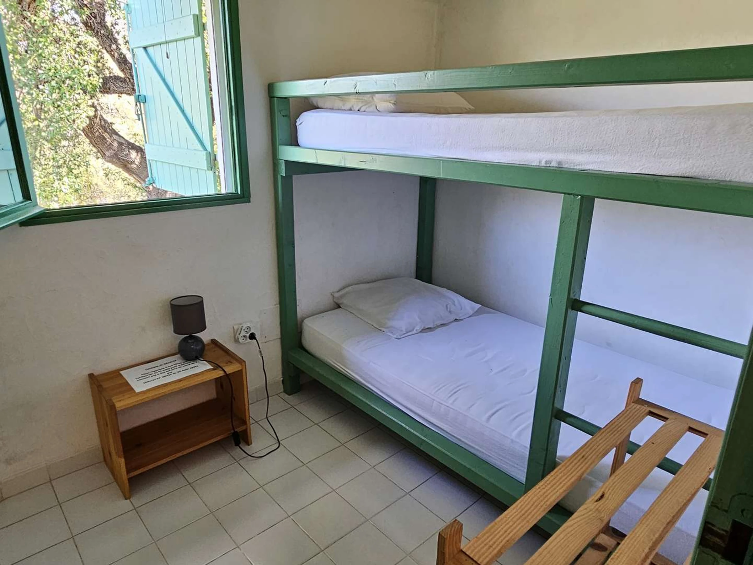 Chambre 1 : clim : lits superposés (2x90), rangement.