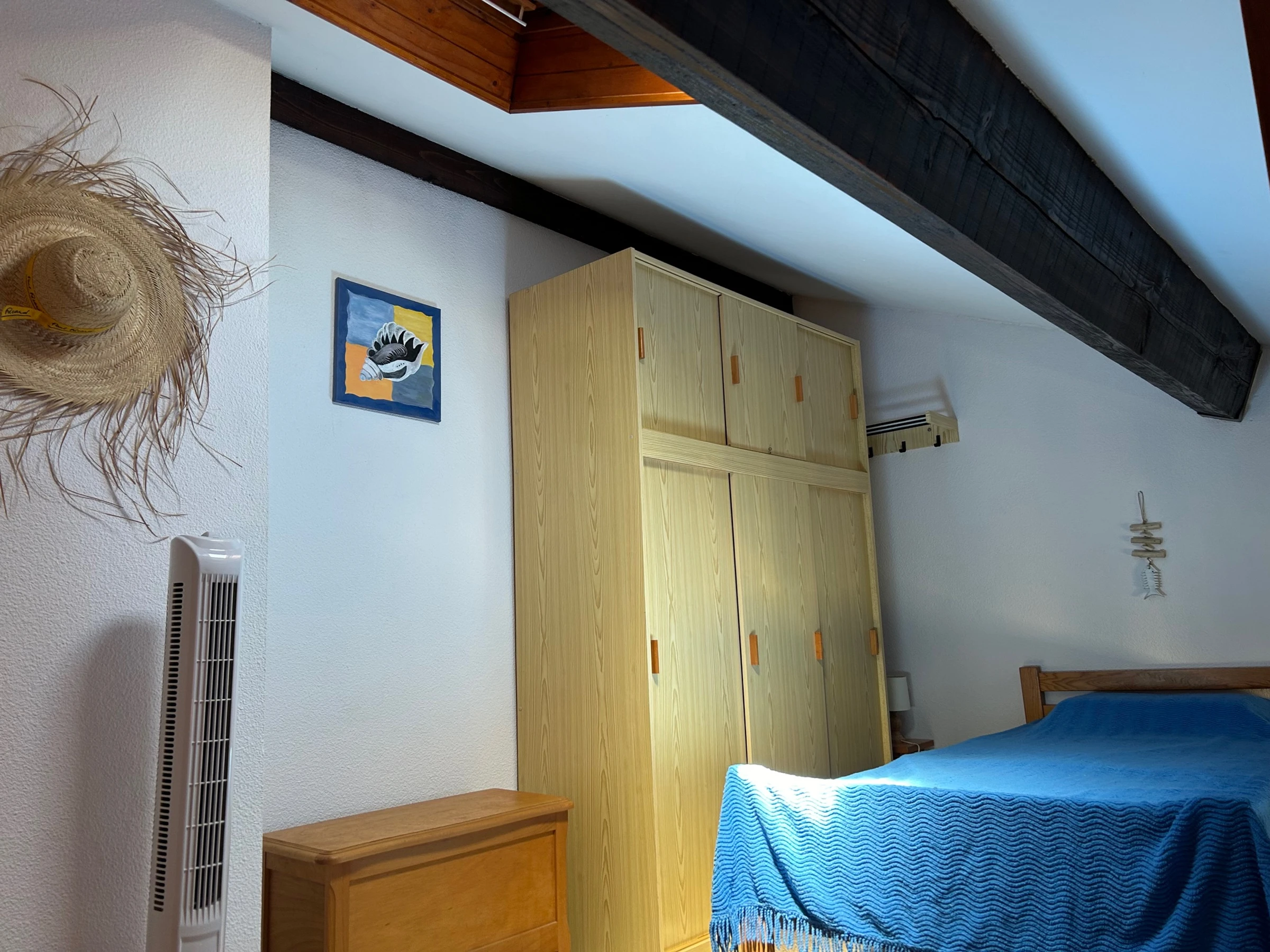 Résidence Les Patios de la Mer T2 Mezzanine de 30 m2 idéal 4/5 pers ,3 éme étage sans ascenseur ,parking sécurisé place libre . Il dispose d'un coin cuisine ,un séjour clic-clac (140) donnant sur loggia fermée ,1 chambre lit (140) 1 salle d'eau ,1 wc indépendant . A l'étage mezzanine 2 lit (90) rangements .