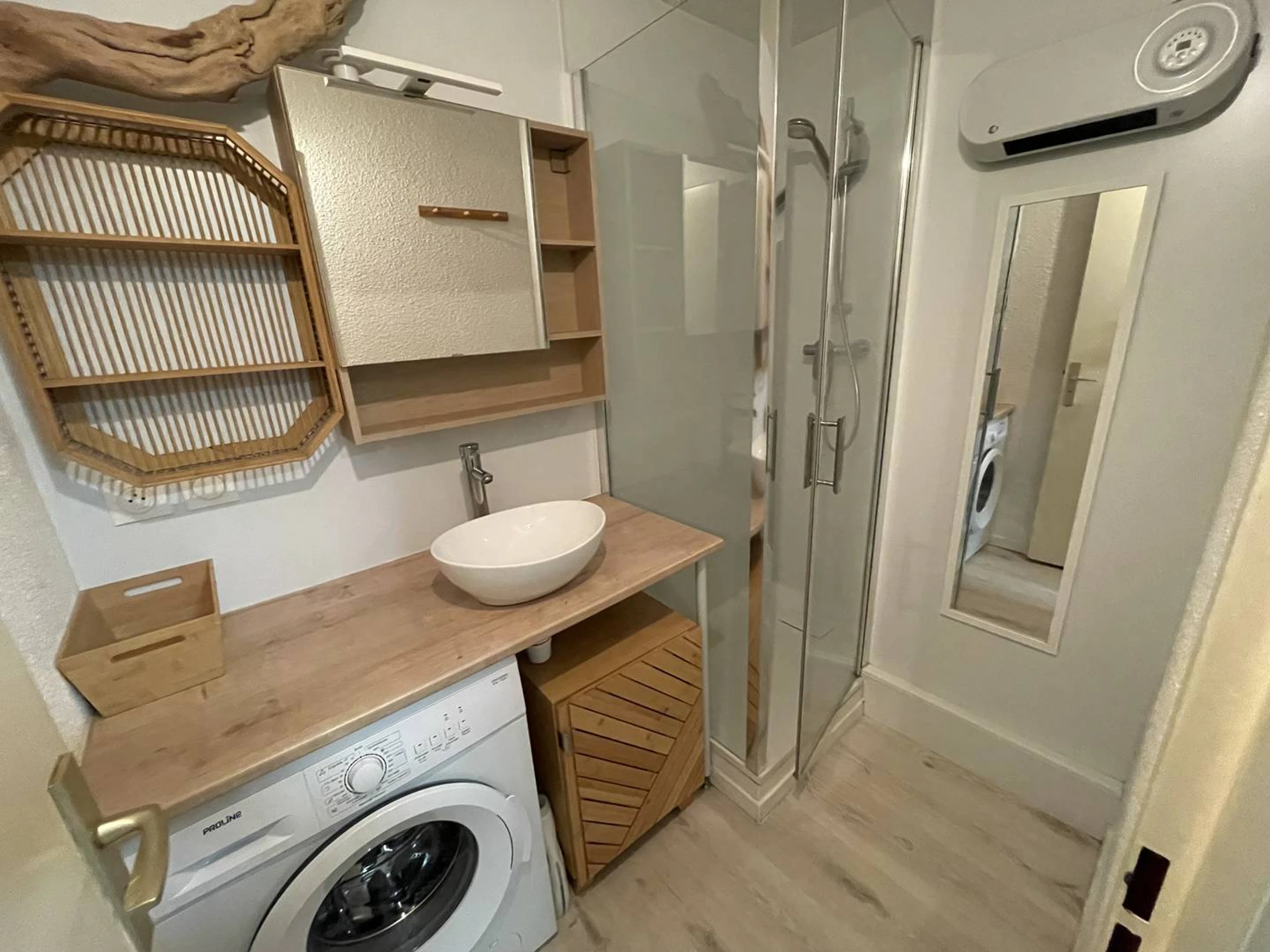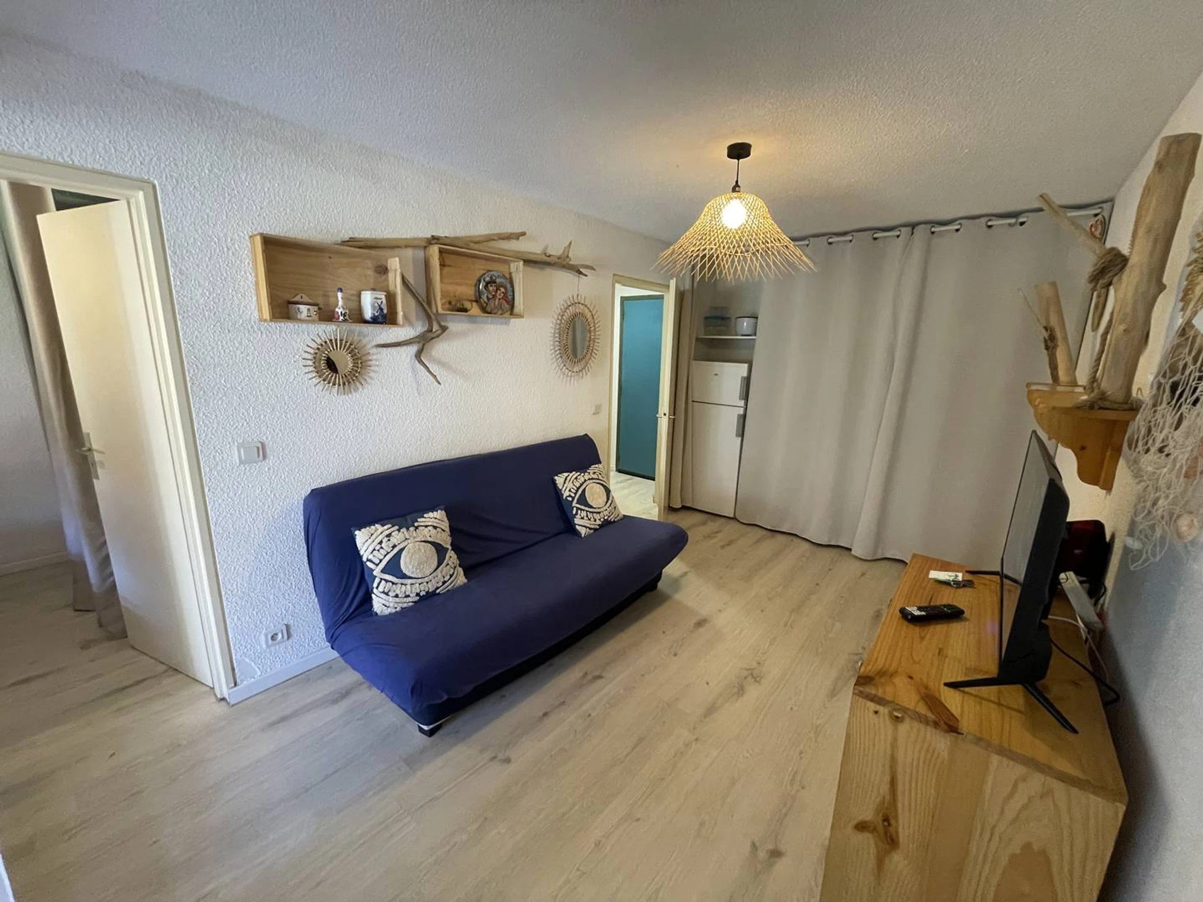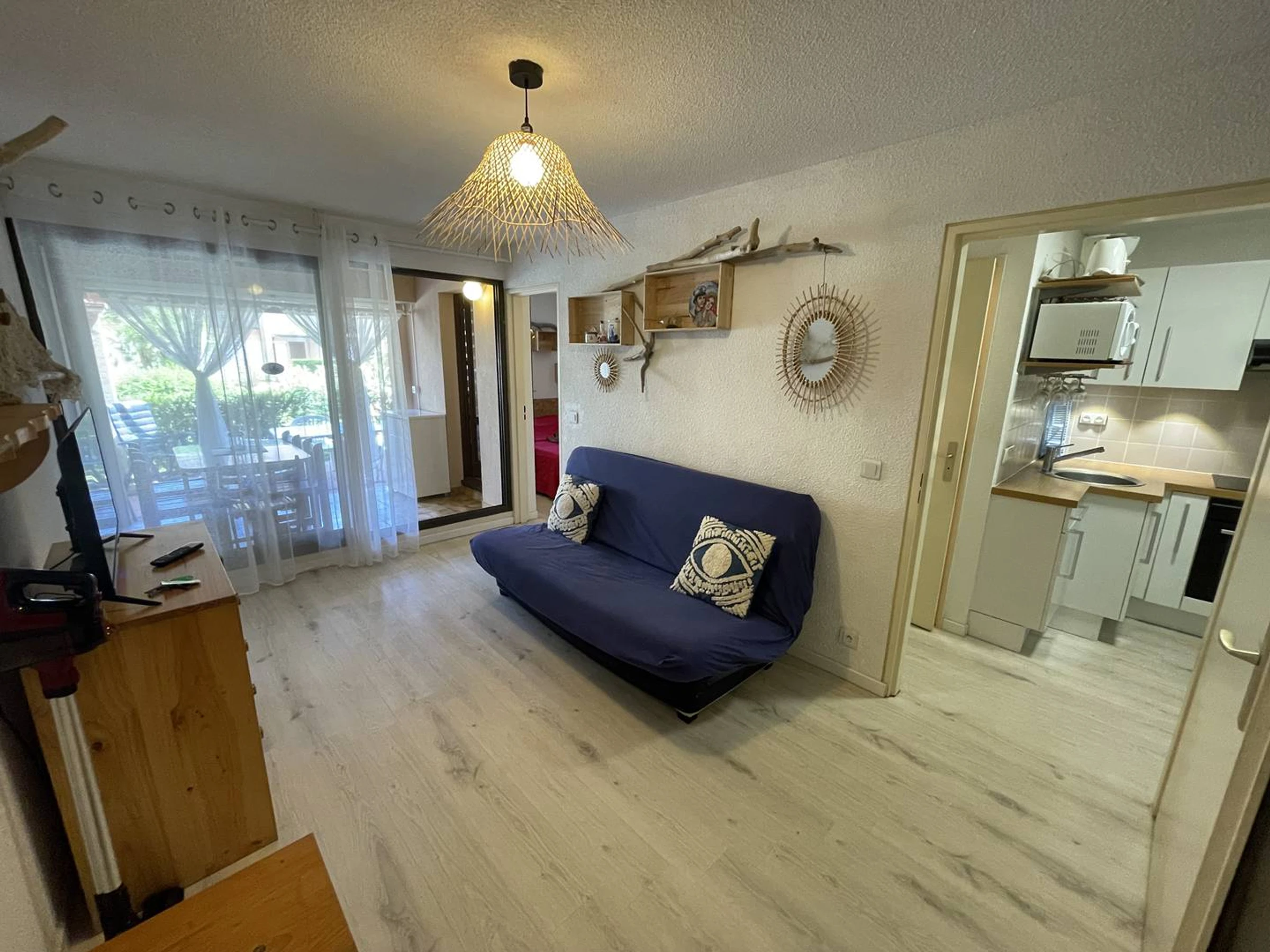 Proche du parc des capellans, appartement 2 pièces d'env. 28m2 en RDC équipé pour 2/4 pers, loggia et terrasse privative d'env. 15m2 avec salon de jardin. Entrée sur coin cuisine équipé : 3 plaques induction, four, micro-ondes, hotte, cafetière électrique, grille pain... Salle d'eau avec cabine douche et lave-linge, wc séparés. Séjour avec canapé clic-clac en 140 et TV lcd, frigo-congélateur, aspirateur, placards. Une chambre avec un lit 140 et penderie. Volet roulant électrique pour la loggia (coin repas). Quartier calme entouré de verdure, (un goût de campagne à la plage) proche des activités sportives de Grand Stade des Capellans et du jardin des plantes. Parking privatif sécurisé n°35/304, local ouvert avec râtelier pour planches à voiles et vélos. Proche restaurants, commerces et marinas. RES AVEC PISCINE ouverte du 01/06 au 30/09 (idéal famille). ANIMAUX ADMIS.