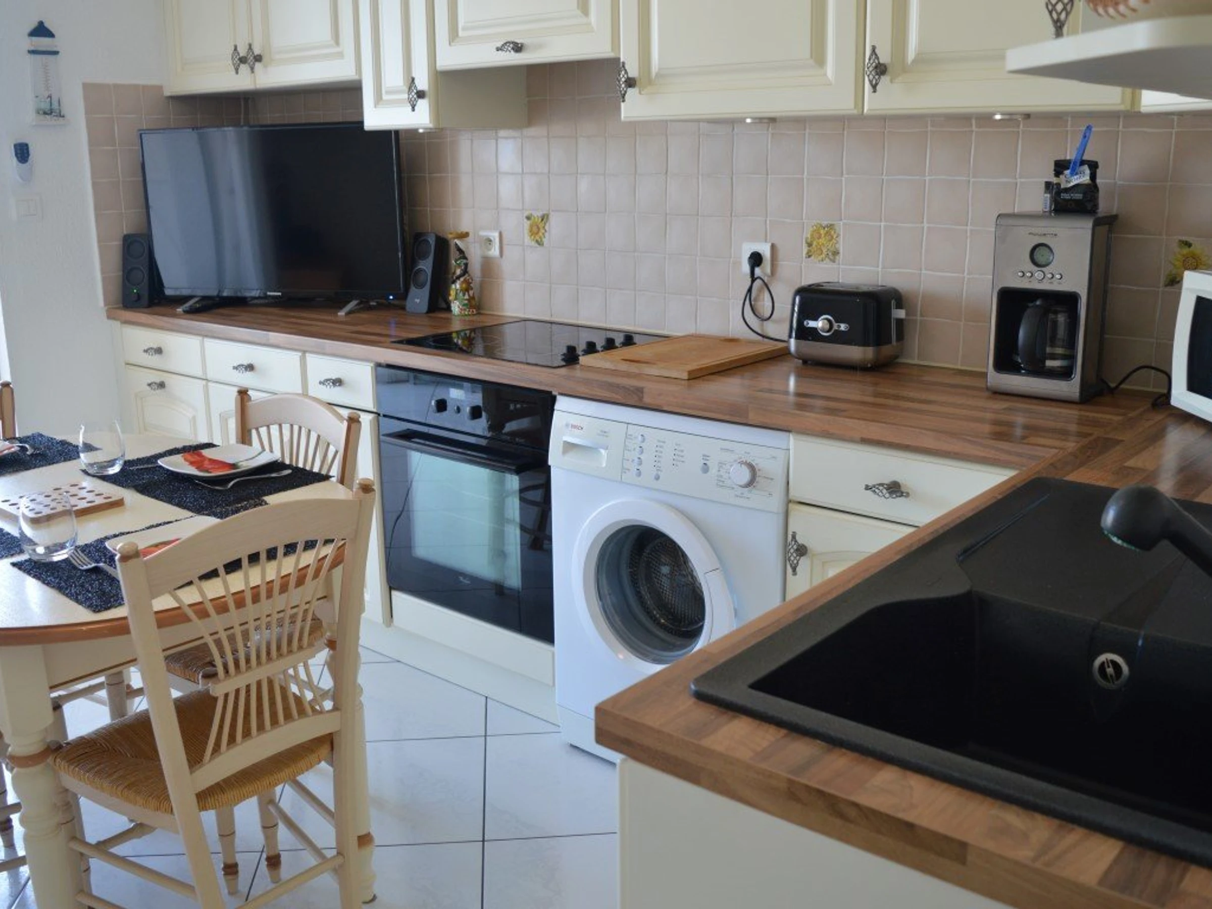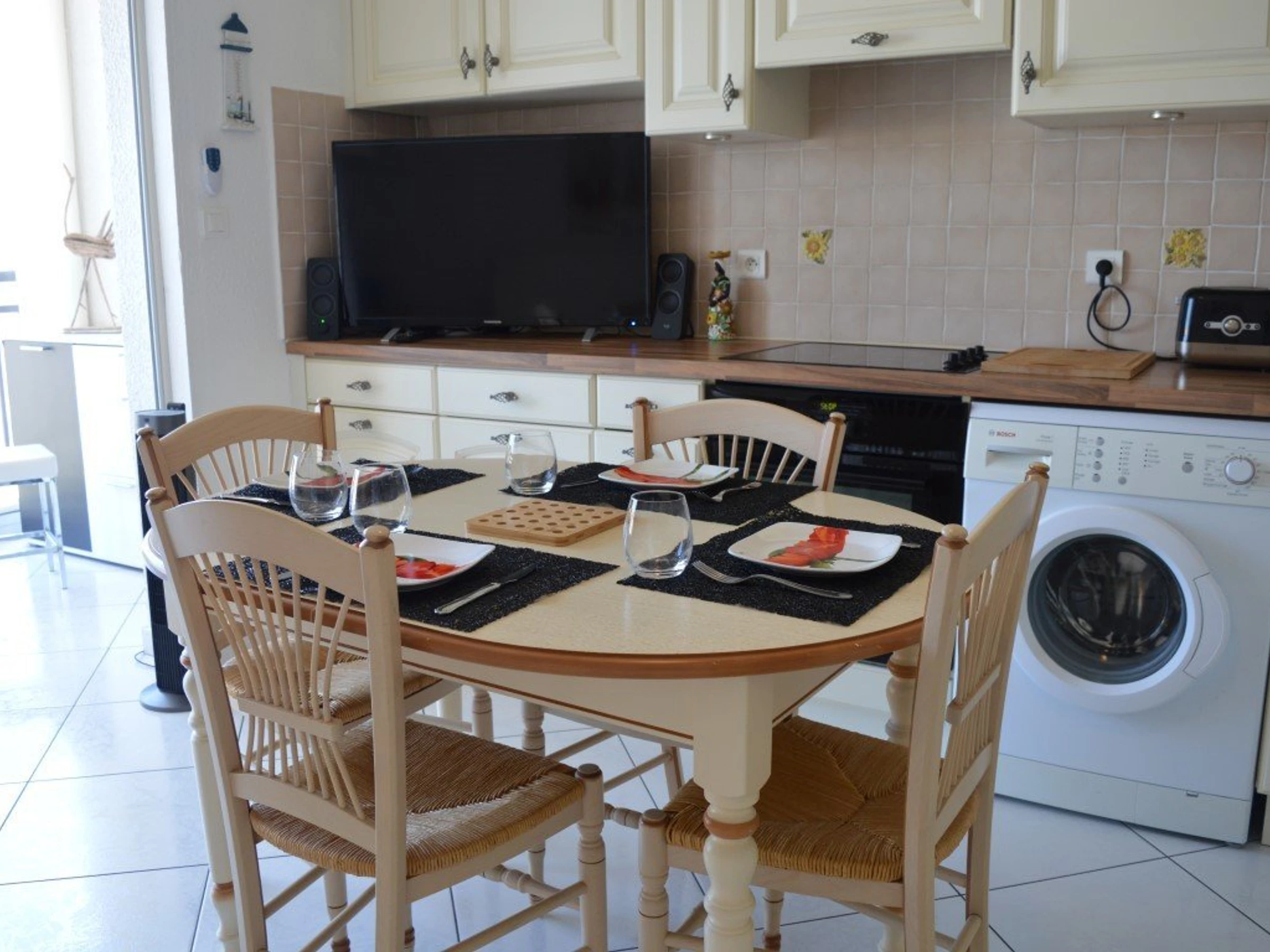 Cet appartement à la mer, situé au 1er étage vous propose un séjour avec un canapé convertible 2 personnes, et télévision, un grand espace cuisine très bien équipée, une chambre avec un lit double, une salle d'eau avec douche et vasque, les WC sont séparés . Pour profiter du soleil, vous disposez d'une loggia avec salon de jardin et une belle vue sur les marinas.