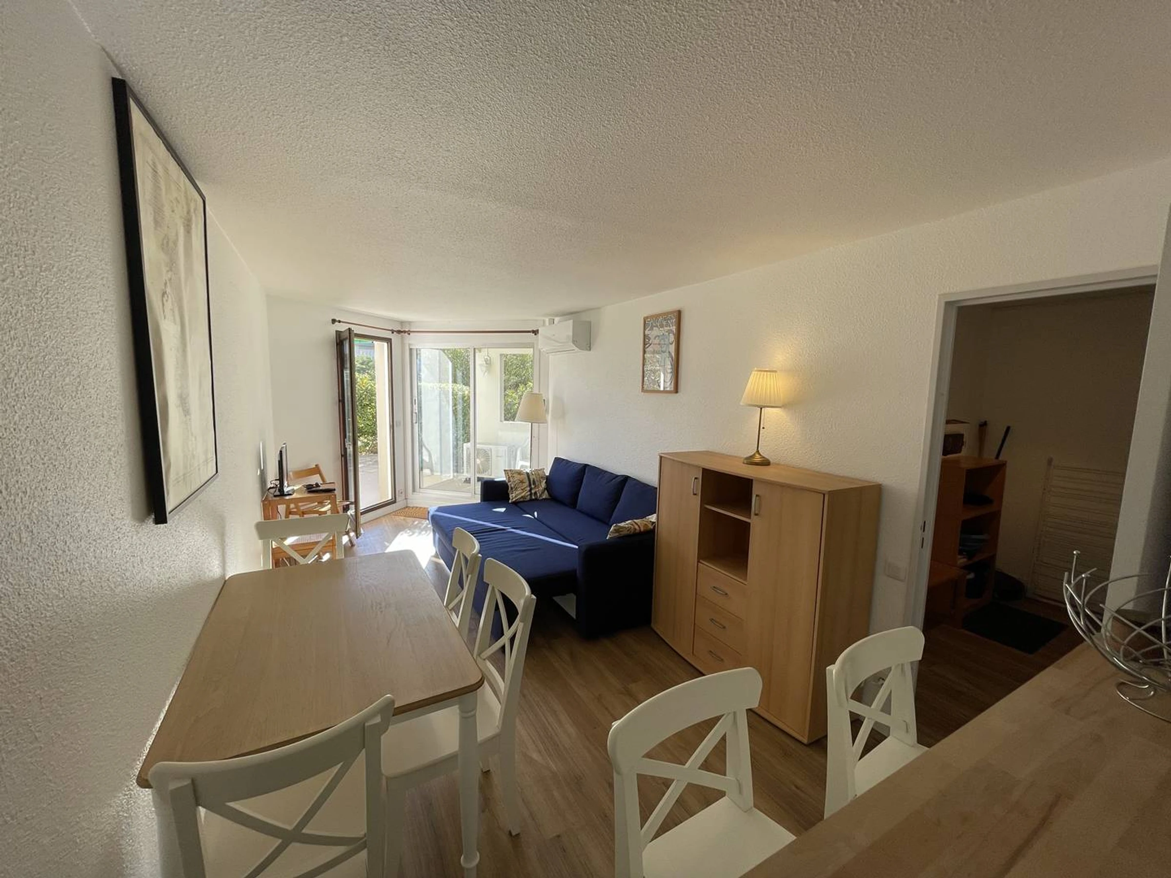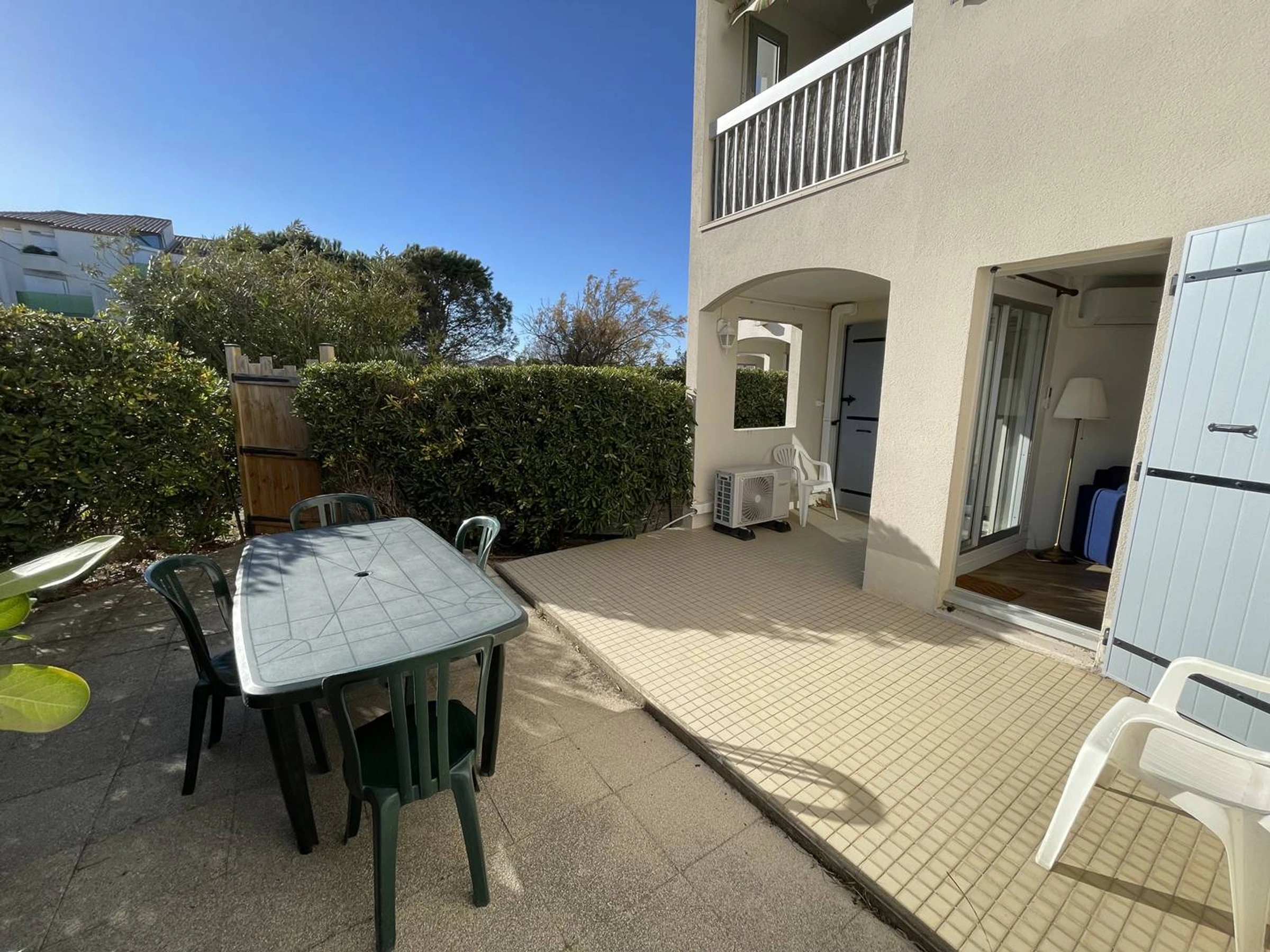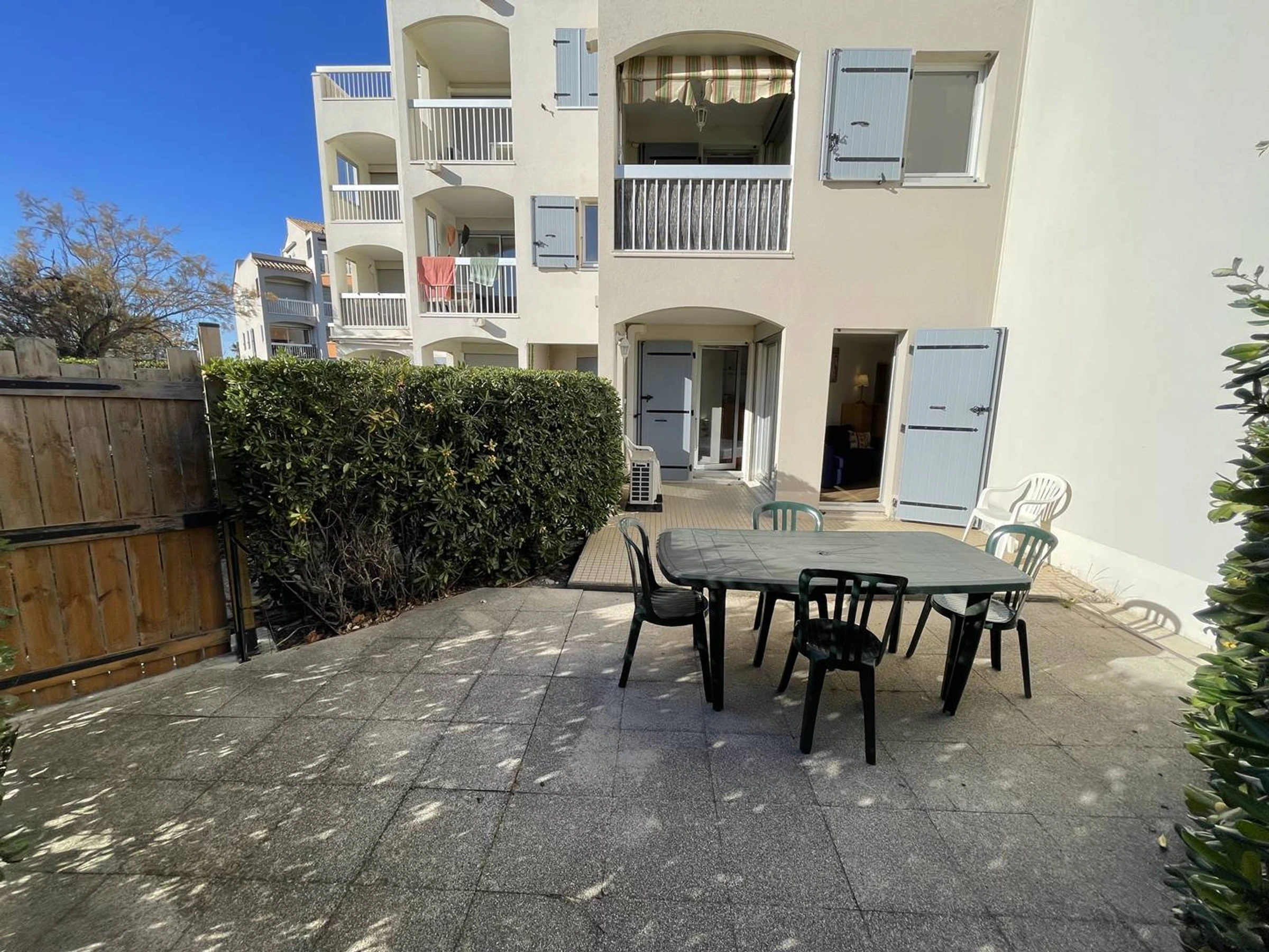 Au sud de Saint Cyprien, bel appart. 2 pièces d'env. 40m2, équipé pour 4 pers en RDC idéalement situé en front de mer avec grande terrasse expo sud/est avec salon de jardin et sortie sur les espaces verts pour aller à la plage (50m). Entrée, salle d'eau rénovée avec cabine douche, lave-linge. Wc indépendants. Séjour avec climatisation réversible, TV, wifi, canapé convertible en 140x200, commode... Coin cuisine : 2 plaques induction, lave-vaisselle, frigo-top avec compartiment congélation, combi micro-ondes/grill/four, cafetière électr, grille pain, hotte, plancha électrique... 1 chambre climatisée (clim réversible) avec 1 lit 140, grand placard-penderie, kit de repassage, aspirateur. Au pied du bâtiment parking n°32 sécurisé. Terrasse expo Sud/Est. Cadre idyllique pour vacances familiales. Accès direct à la plage. Commerce et restaurant à proximité. RES AVEC PISCINE SECURISEE OUVERTE DU 15/6 AU 30/09. ANIMAUX ADMIS.
