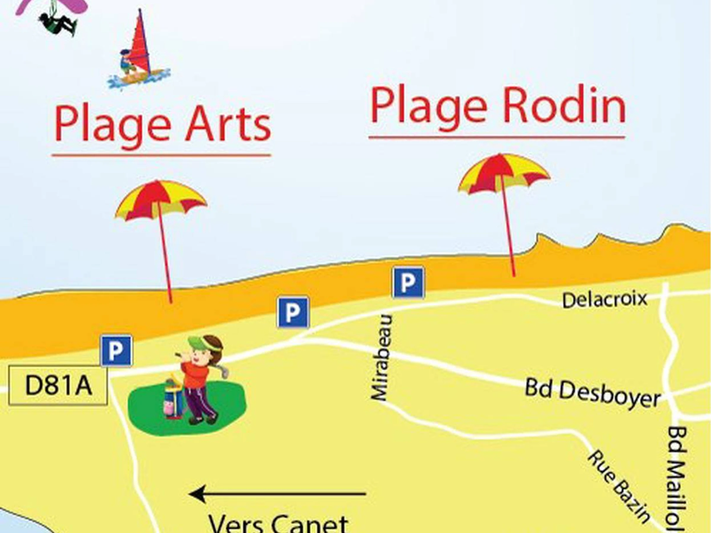 Appartement au pied des commerces, du marché (Mardi et Vendredi) et de la plage Rodin.