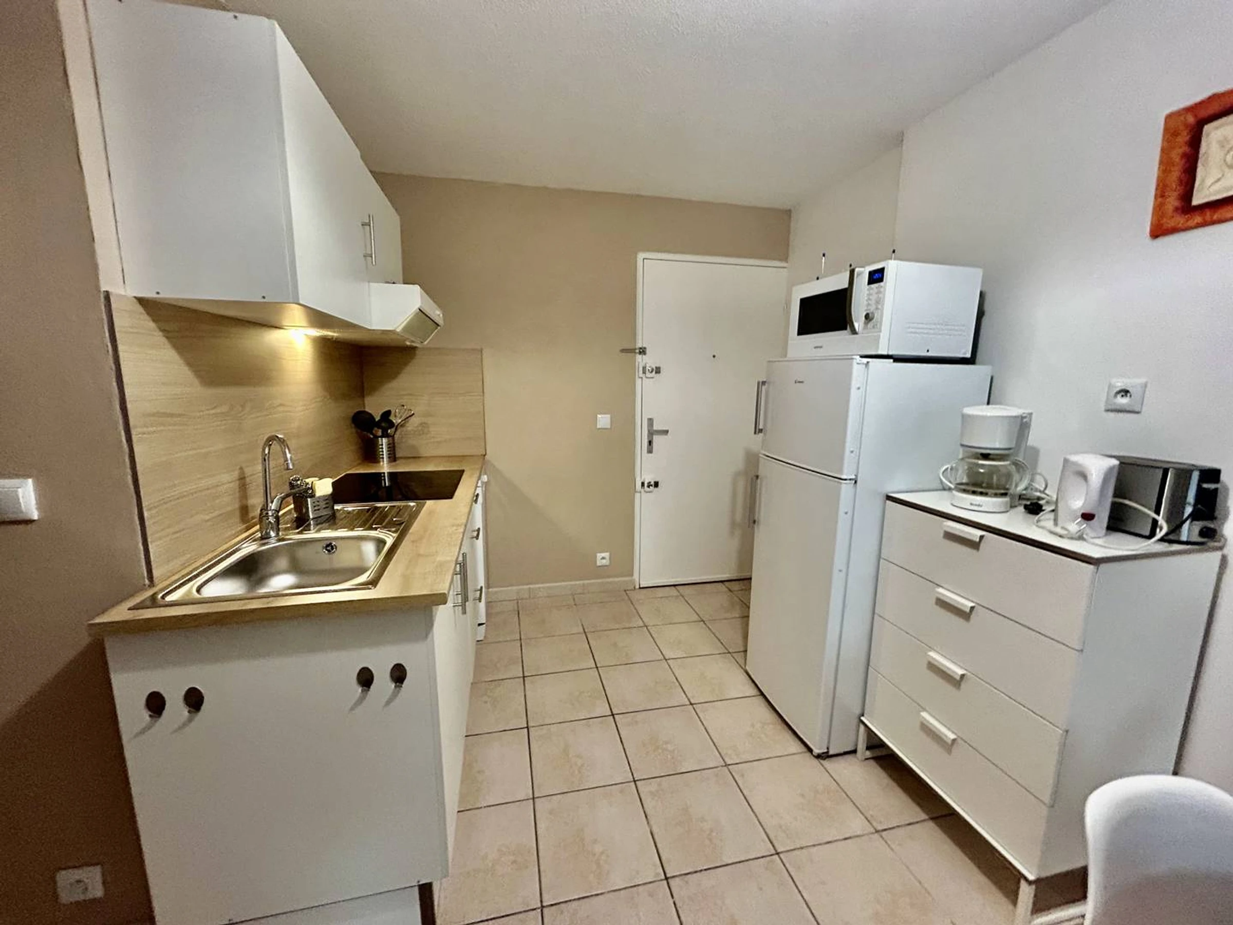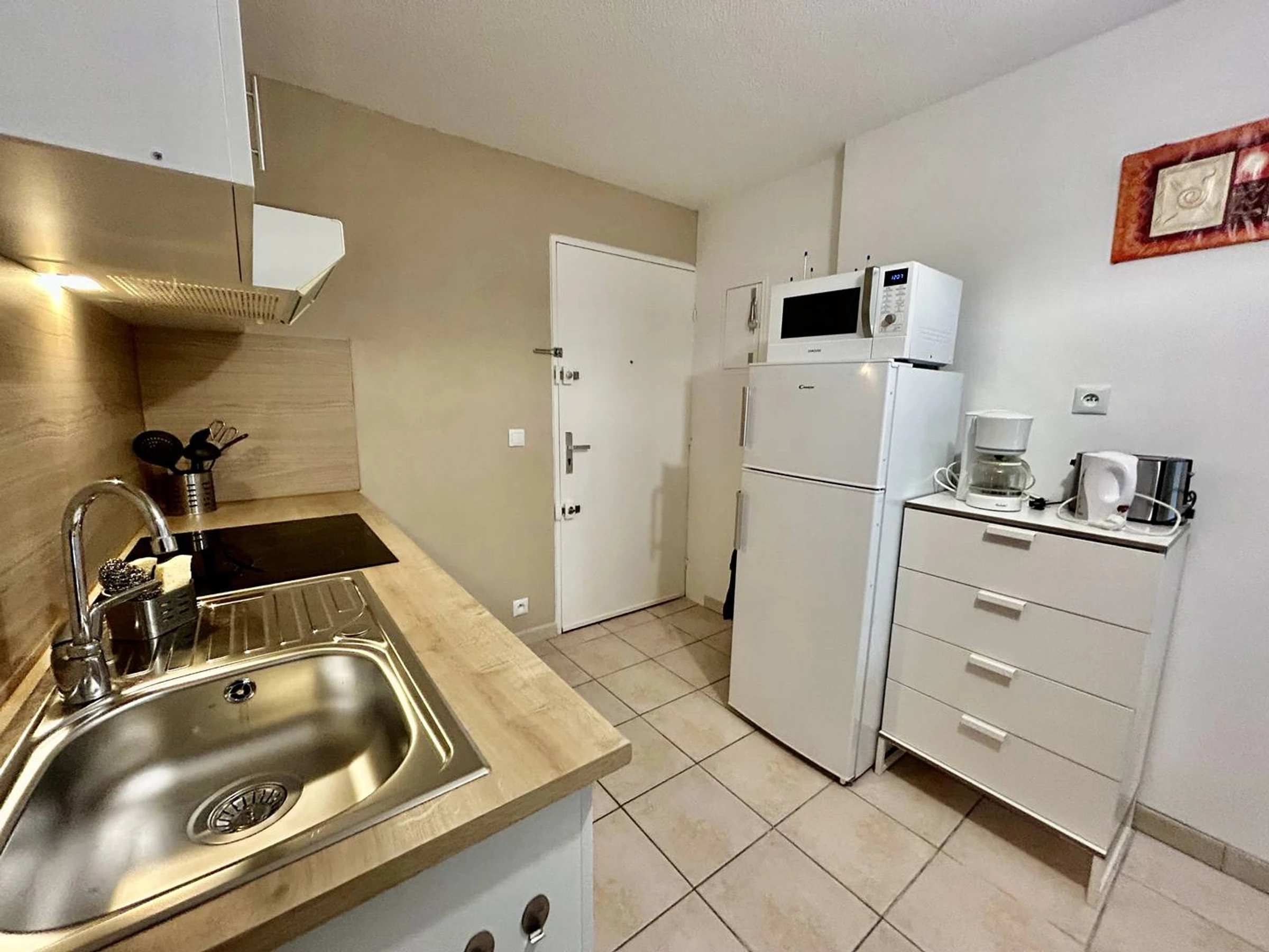 Cette location à la mer, au rez de chaussée, vous propose un séjour avec canapé convertible 2 personnes et une télévision, un coin cuisine équipé, une chambre avec un lit double, une salle d'eau avec douche et WC.