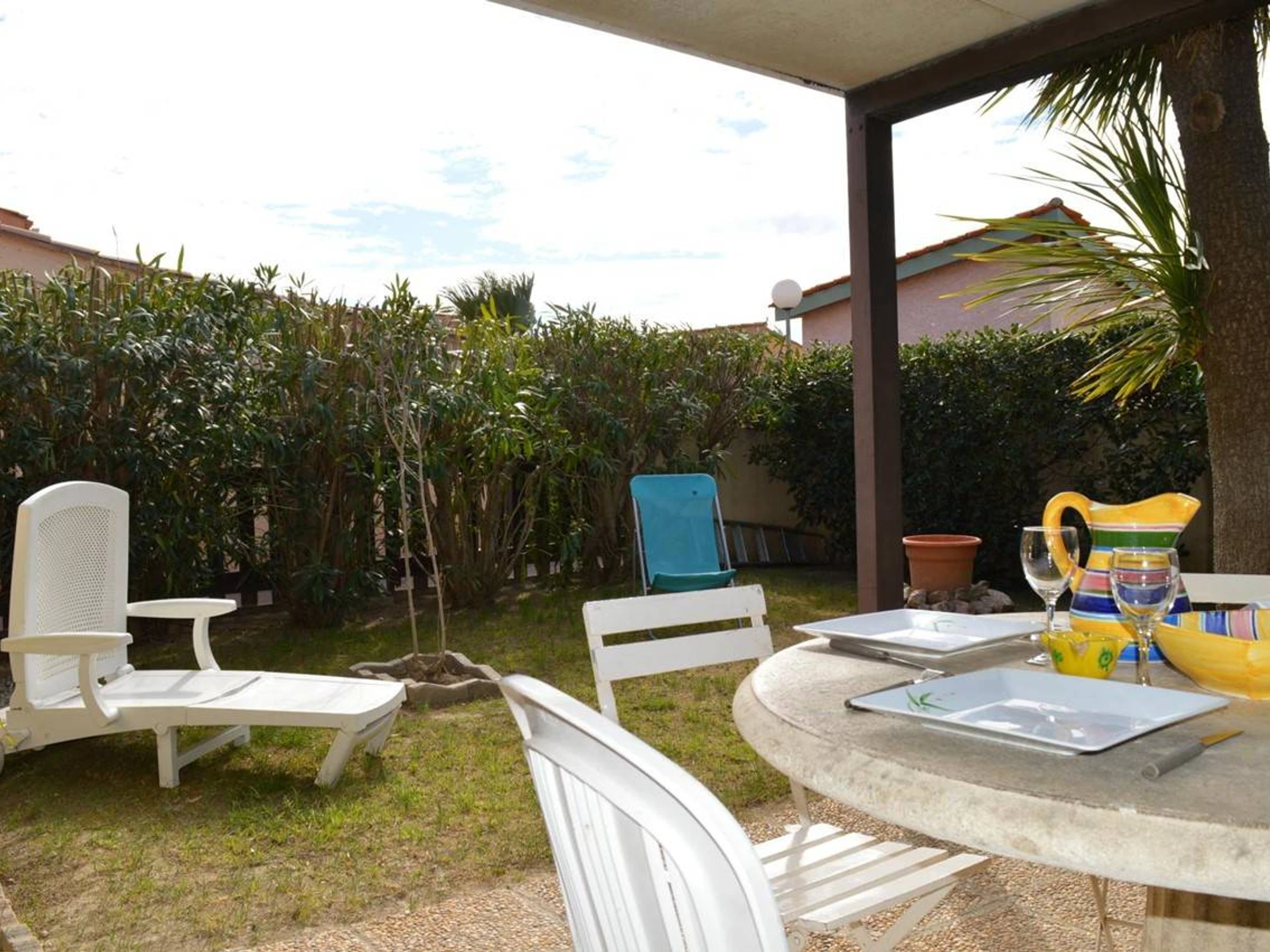 Les Plus de cette location à la mer : jardin privatif avec son mobilier et barbecue, la piscine réservée à la résidence( ouverte en été, et la proximité du village commercial des Capellans, lave-linge, lave-vaisselle, télévision, parking. Taxe de séjour au forfait incluse.