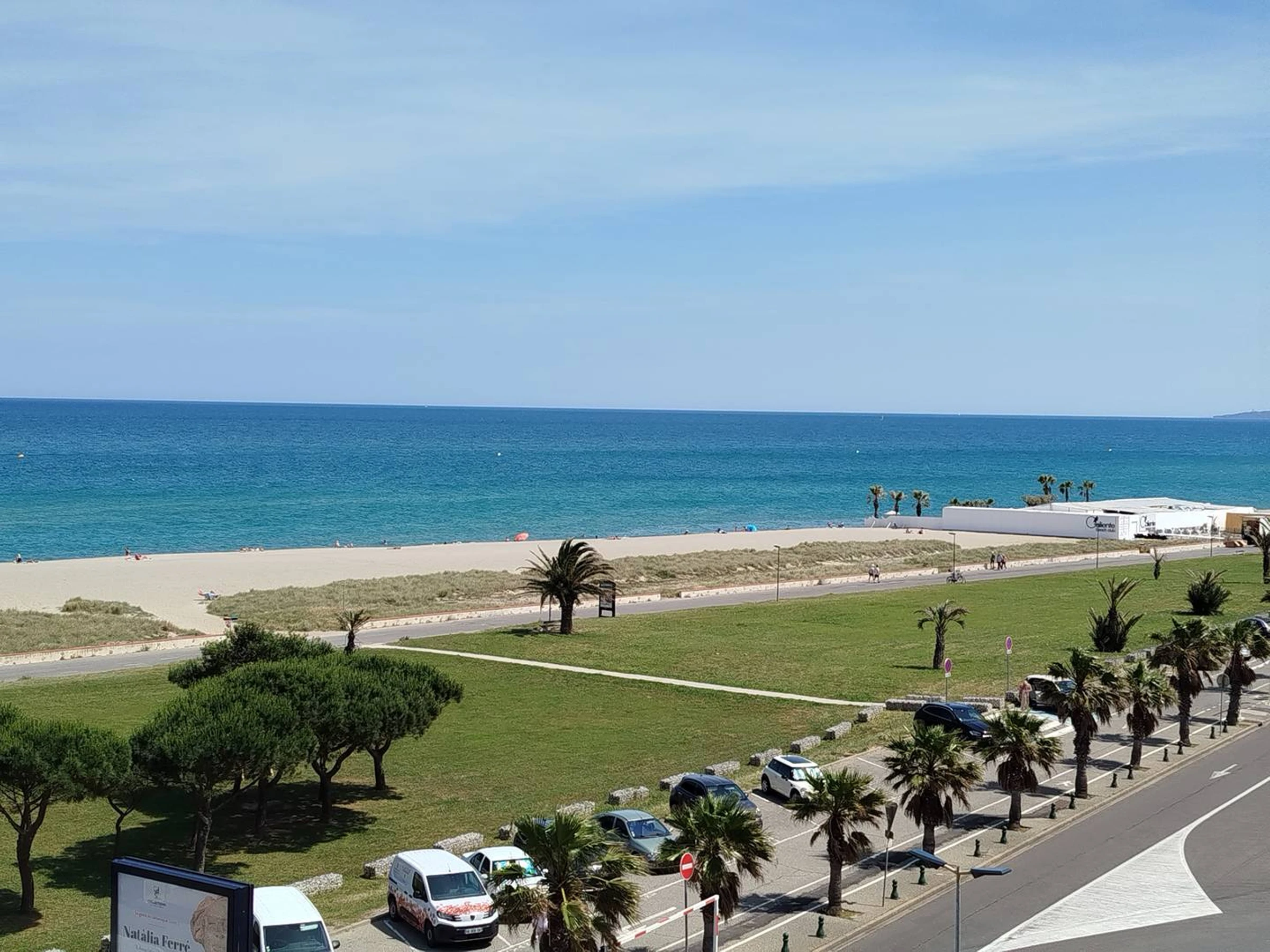 Cette dernière donnant accès sur un long balcon avec splendide vue mer où vous apprécierez prendre votre petit déjeuner tout en contemplant la Méditerranée.