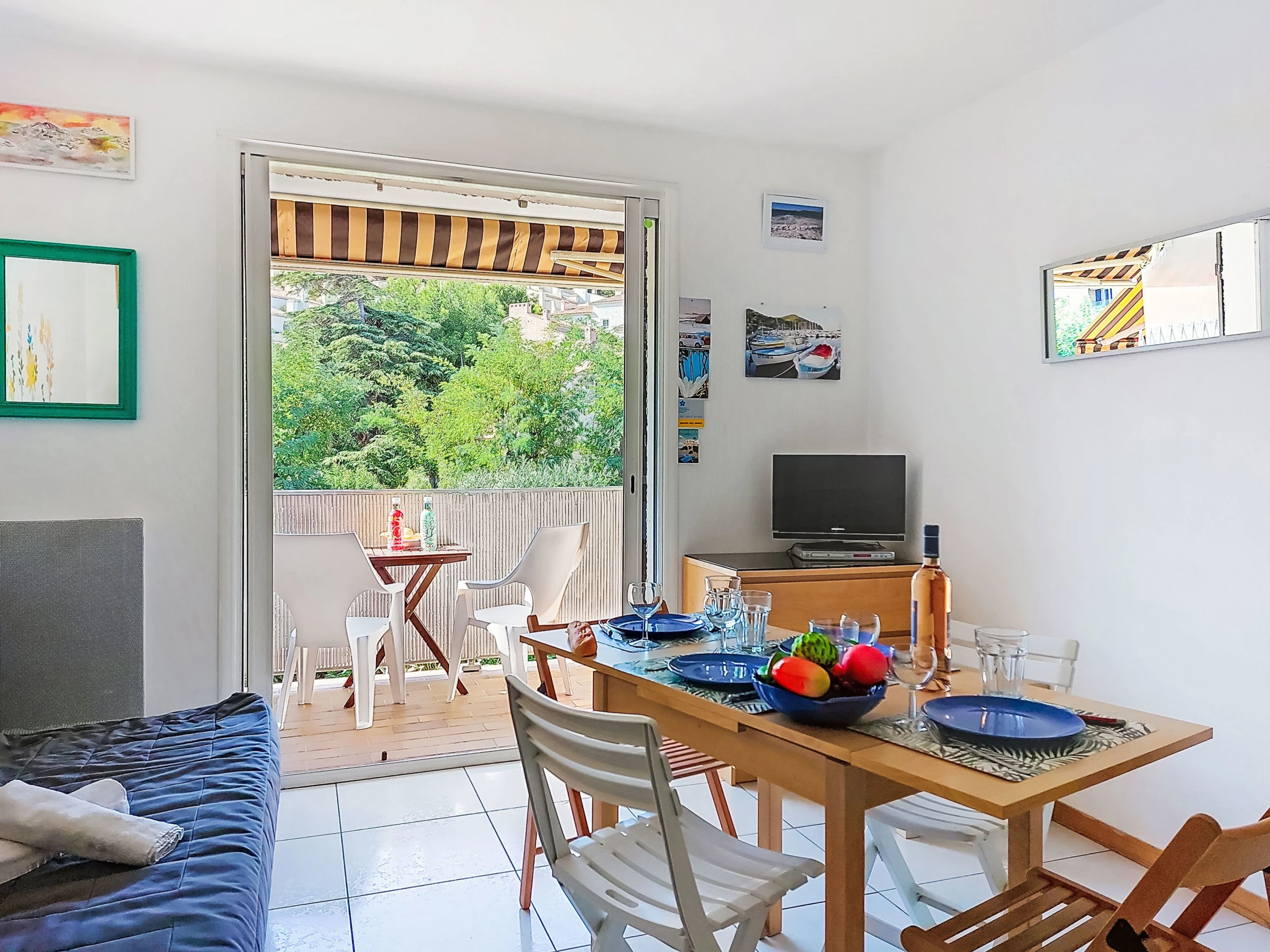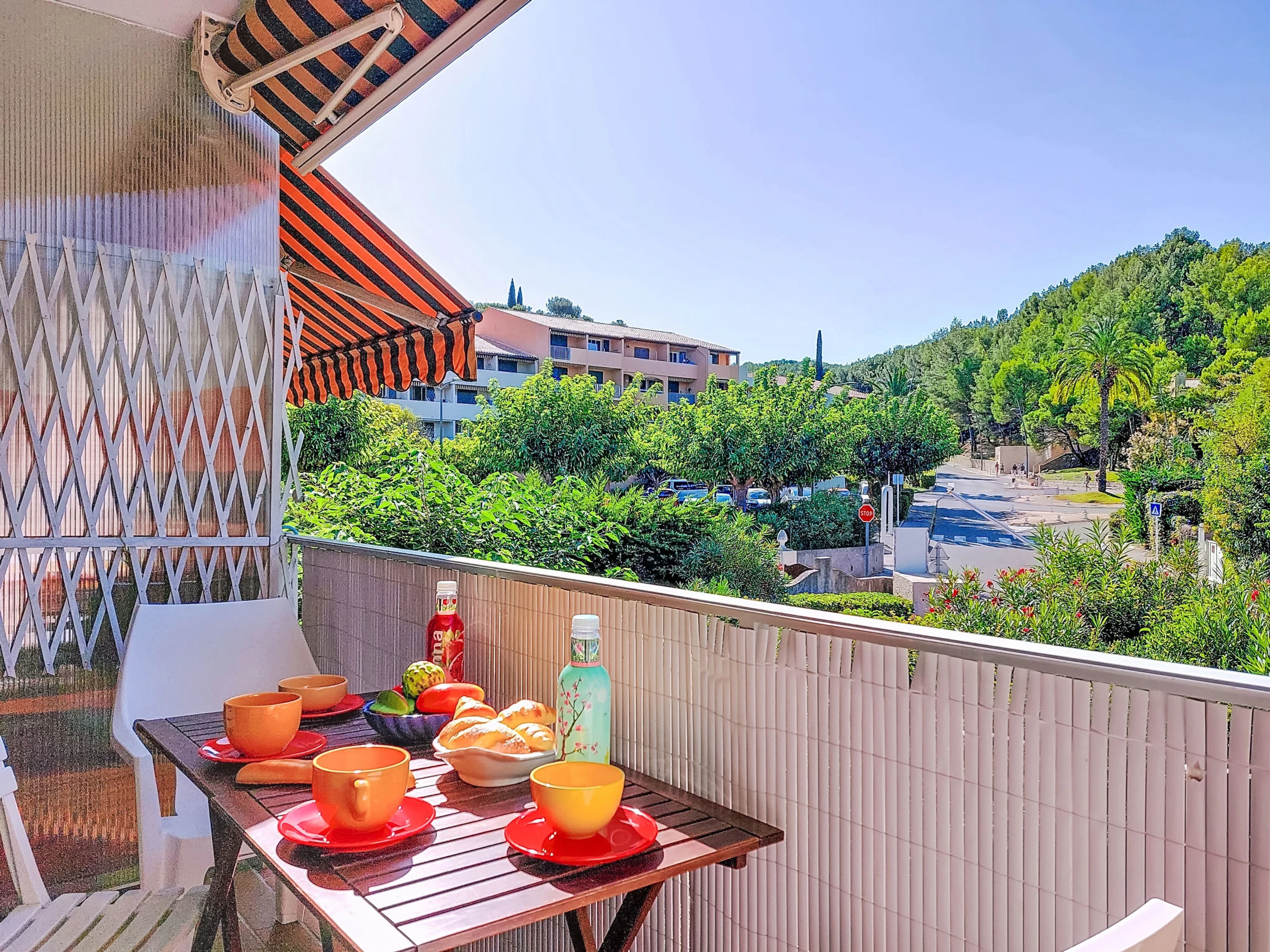 Résidence "Les Aigues Marines", de 3 étages. Dans la localité, à 2 km du centre de Saint Cyr sur Mer, situation surélevée dans un quartier résidentiel, à 600 m de la mer, à 600 m de la plage, dans une rue, dans la verdure. Place de parking (nombre de places limité), parking public en sus. Magasin d'alimentation 200 m, restaurant 500 m, arrêt de bus "Le Viguier" 2.3 km, gare ferroviaire "Saint Cyr les Lecques-La Cadière" 3.1 km, plage de sable "La Madrague", plage de galets 600 m. Port plaisance 500 m, terrain de golf (18 trous) 4 km. Attractions à proximité: Aqualand 3 km, Sentier du Littoral 1 km. Région de randonnées: Sainte Baume, Sainte Victoire, Calanques Port-Cros, Porquerolles, Ile verte, Embiez, Figuerolles, Cassis. Veuillez noter: la remise des clés a lieu à l’agence de St Cyr La Madrague. La photo ne montre qu’un exemple de location de vacances. D’autres appartements sont également proposés à la location dans cette maison de vacances.