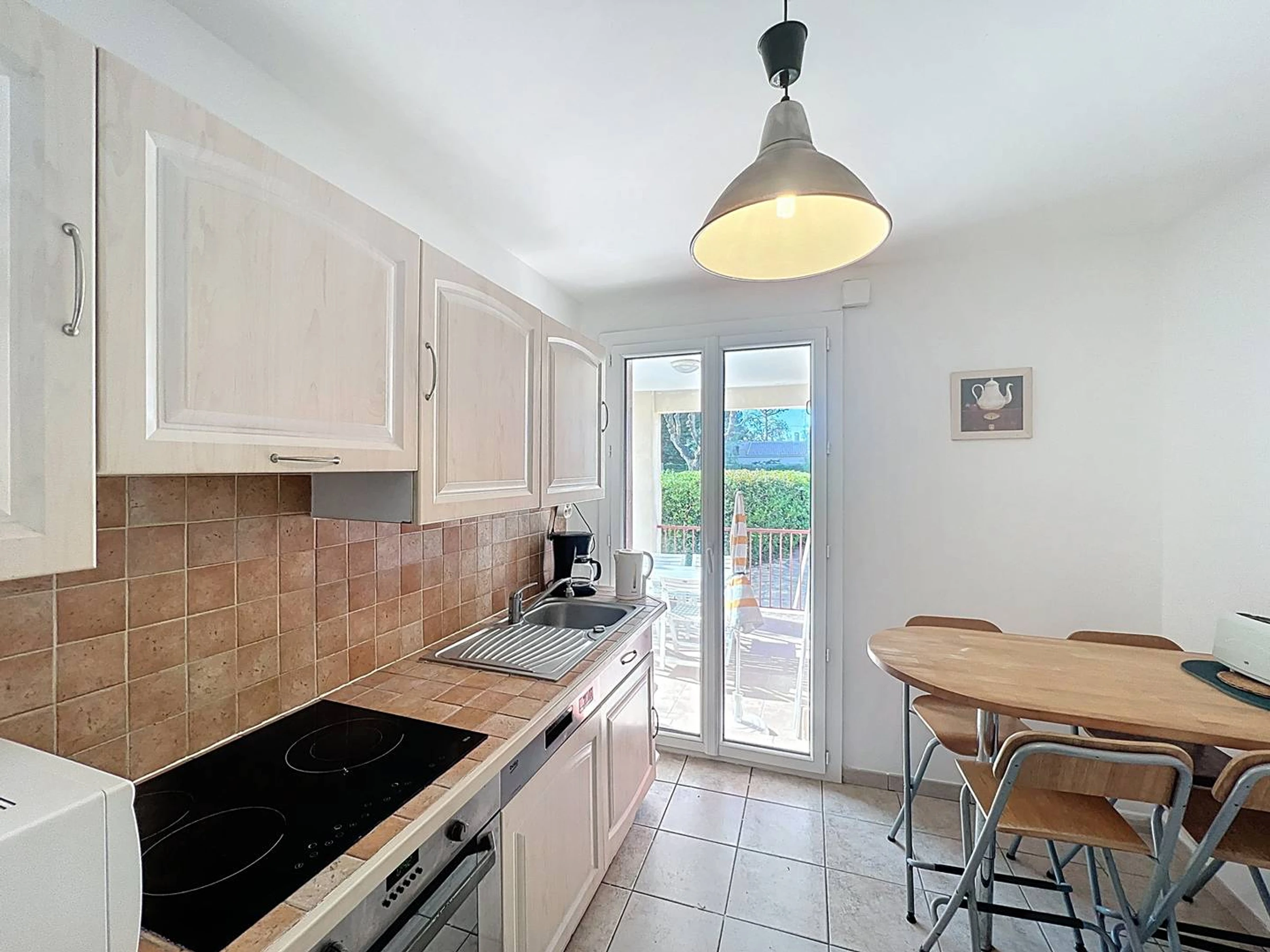L’appartement dispose d’une machine à laver, d'un espace extérieur avec table et chaises de jardin. Dans la cuisine vous trouverez tout les équipements nécessaires pour préparer de bons petits plats d’été. Oy y retrouve également une cafetière filtre, une bouilloire, un four, un frigo, un lave-vaisselle, un congélateur, une plaque vitrocéramique avec 4 feux, un grille pain, une planche à découper le pain, un micro-onde, un aspirateur, un fer et une table à repasser, un sèche cheveux, une télévision, un ventilateur et une plancha pour vos grillades !