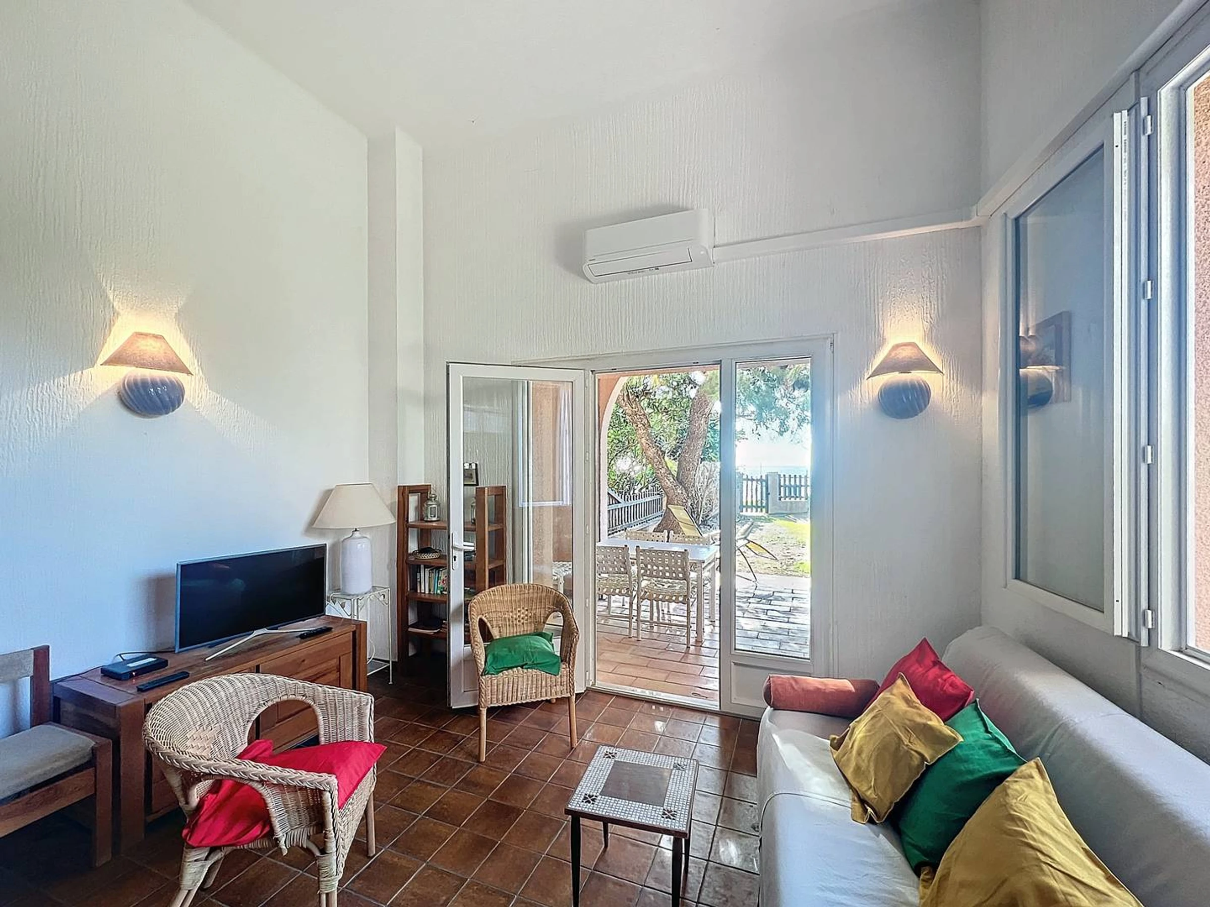 La terrasse dispose d’une table à manger. Vous pourrez donc profiter de bon repas avec une vue imprenable sur la plage et la baie des Lecques !