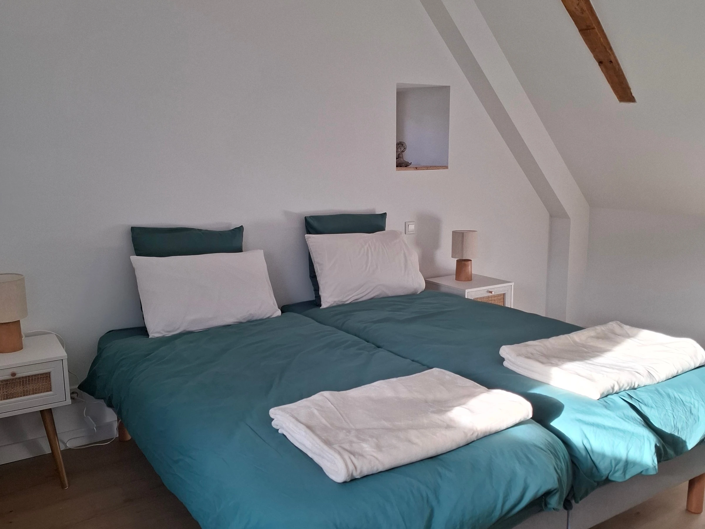Une maison de campagne pleine de charme à 5km de la Petite cité de caractère de Saint Denis d'Anjou. Vaste séjour lumineux avec une vue plongeante sur la nature, 4 chambres et 2 salles d'eau. Cuisine équipée, matériel bébé complet et nombreux jeux intérieurs et extérieurs, un terrain de pétanque sous le chêne et bain nordique sur la terrasse... il ne reste plus qu'à poser son sac !
