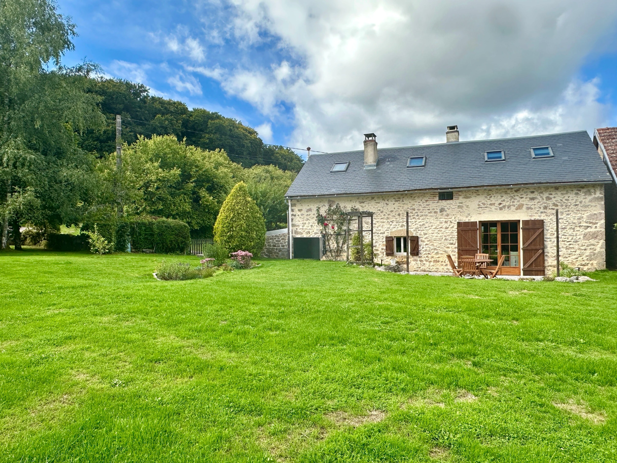 Dans un environnent verdoyant et bucolique, le cottage de Pauline, en lisière de forêt, est la promesse d’un moment de détente et de repos assuré. Cette jolie maison individuelle typique du Morvan, rénovée avec goût, est composée comme suit :