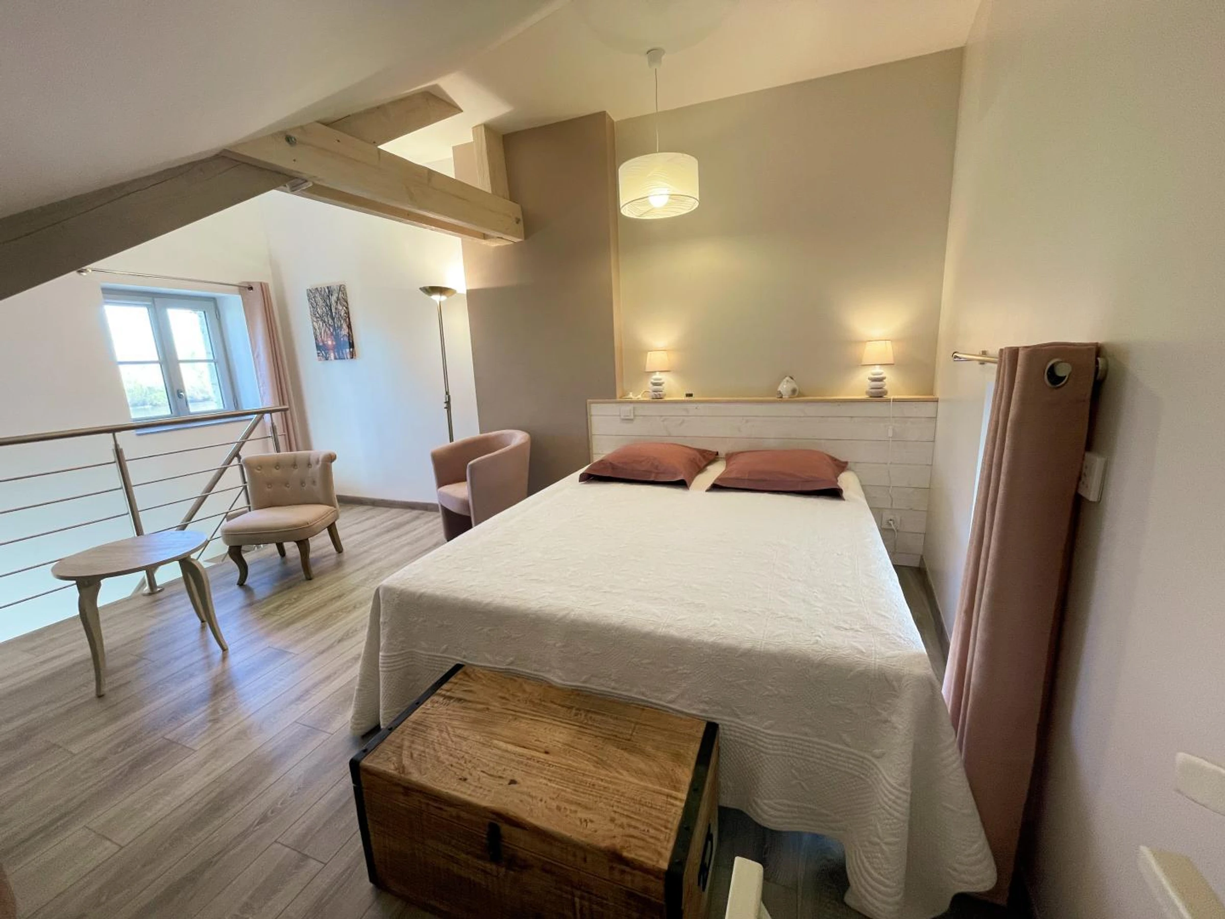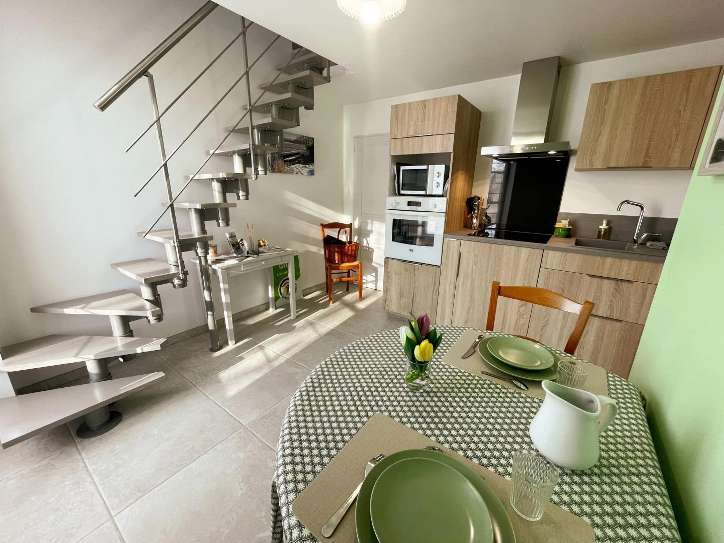 Micro-onde, Lave linge, Lave vaisselle, TV, Salon de jardin, Chbre en mezzanine, Accès à internet, Draps inclus, Non-fumeurs, Parking privé, Chauffage inclus, Jardin, Vélo ou VTT, Linge de toilette inclus, Ménage fin de séjour inclus.