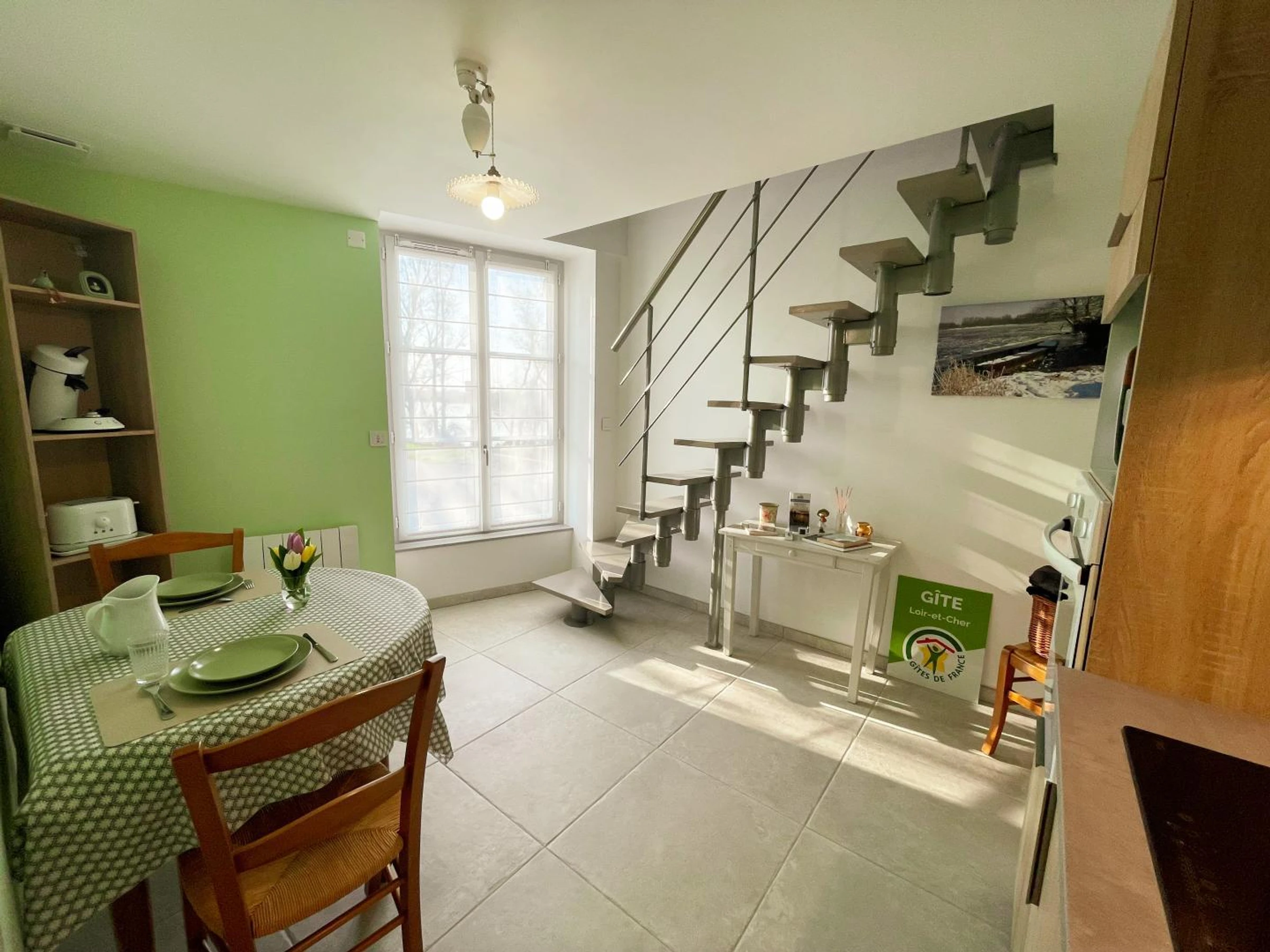 Gîte tout inclus (sauf taxe de séjour). RdC : cuisine tout équipée (cafetière Senseo et à filtre)/séjour, salle d'eau (WC inclus, lave-linge). Etage : chambre (lit 160x200cm) avec espace détente, TV). WIFI. Chauffage électrique inclus aux tarifs. Entrée commune dans la cour des propriétaires (discrétion assurée) par portail automatique. Possibilité de stationner un véhicule. Abri couvert pour vélos à disposition sur demande. Un espace jardin privé est à votre disposition pour la détente à 100 m env. du gîte (accès par petite ruelle). Un congélateur est mis à disposition dans le cellier des propriétaires (accès par la cour). Hébergement non-fumeur. Votre futur lieu de séjour se distingue à plus d'un titre. Sa situation en bord de Loire, tout d'abord, vous dévoile un paysage somptueux, propice à des instants de contemplation uniques et inoubliables. Sa proximité avec de superbes joyaux de la Renaissance tels que Chambord, Blois ou encore Cheverny constitue également un atout majeur. Votre gîte, entièrement restauré avec soin, offre un intérieur contemporain, confortable et parfaitement équipé. Côté extérieur, deux options s'offrent à vous : le jardin privé des propriétaires, accessible à environ 100 m par une charmante ruelle, avec transats, table et chaises pour vos repas en plein air, ou bien les rives de la Loire pour savourer des moments de détente bien mérités après vos visites, voire un déjeuner au fil de l'eau. Les richesses touristiques du Val de Loire sont innombrables : ses châteaux bien sûr, mais aussi les balades sur l'itinéraire de la Loire à Vélo, sans oublier une excursion incontournable en bateau traditionnel au dé