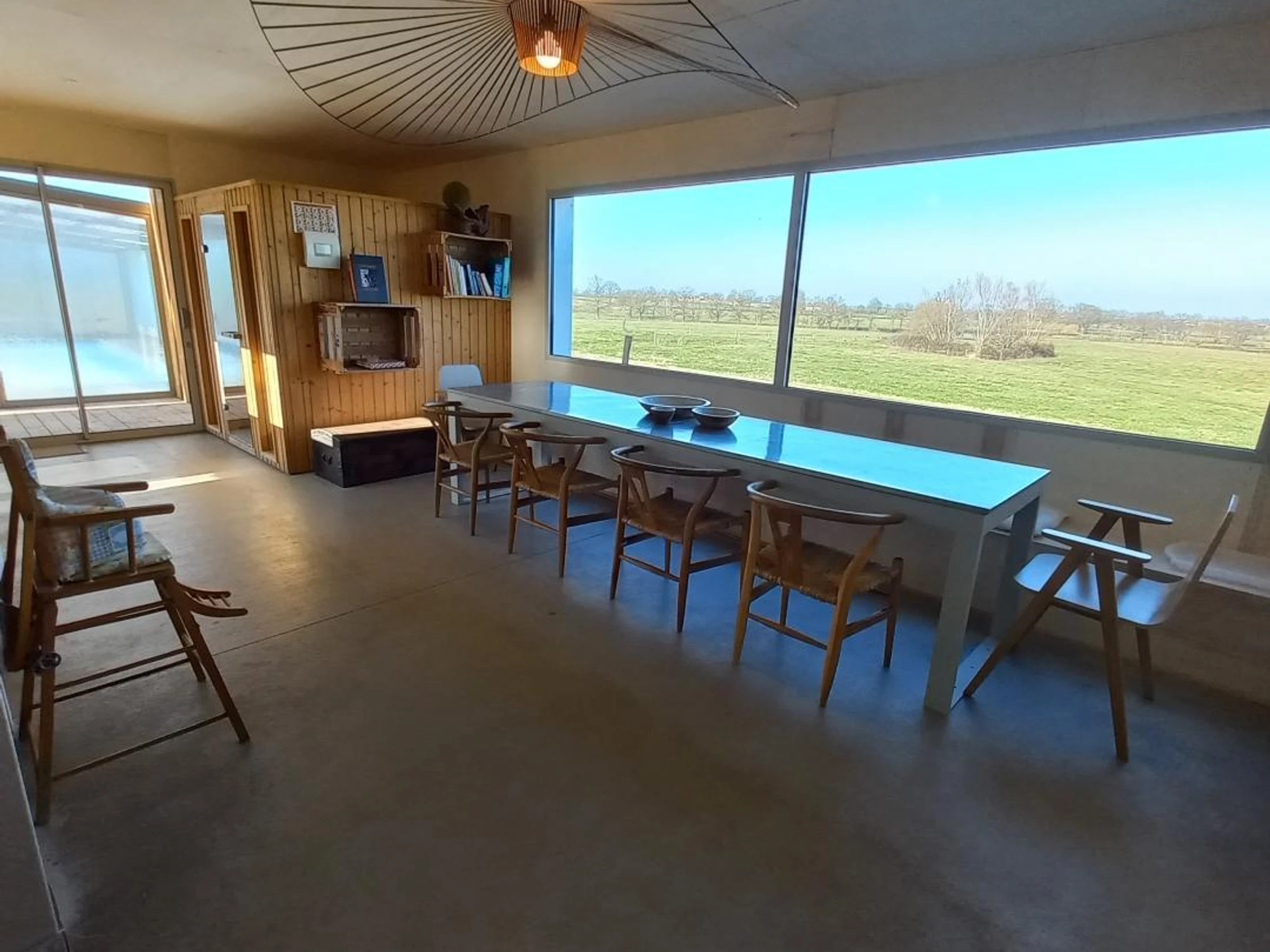 Maison indépendante de 170 m² : accessible par un chemin carrossable, au milieu des pâturages, et très facile d'accès. Location week-end et courts séjours possible. Les draps sont fournis (6 chambres). Une borne de chargement pour votre véhicule électrique est à votre disposition. La prestation ménage est obligatoire et incluse. Blotti dans un îlot de 33 hectares de pâturages, lovez-vous au milieu d'un environnement naturel remarquable ! Cette très belle maison authentique en pierres et ses extensions en bois inédites vous apporterons tout le confort d'un séjour idéal. Vous arrivez au milieu des prés, le spa pour 6 personnes est sous la pergola : l'eau est à 37°c toute l'année. La piscine chauffée couverte : 8*4m, minimum 27°c toute l'année, attenante à la maison vous offre un cadre exceptionnel pour vos baignades. Reposez-vous dans le grand séjour, le poêle à bois (bois inclus) est là pour vous réchauffer. Par la grande baie vitrée, une vue sur l'étang privé (pour vos pique niques ou parties de pêche). Pour votre bien-être un sauna-hammam, une douche écossaise : vous allez adorer prendre soin de vous ! Ici, tous les équipements sont privatifs ! Les enfants pourront profiter des nombreux jeux intérieurs et extérieurs.