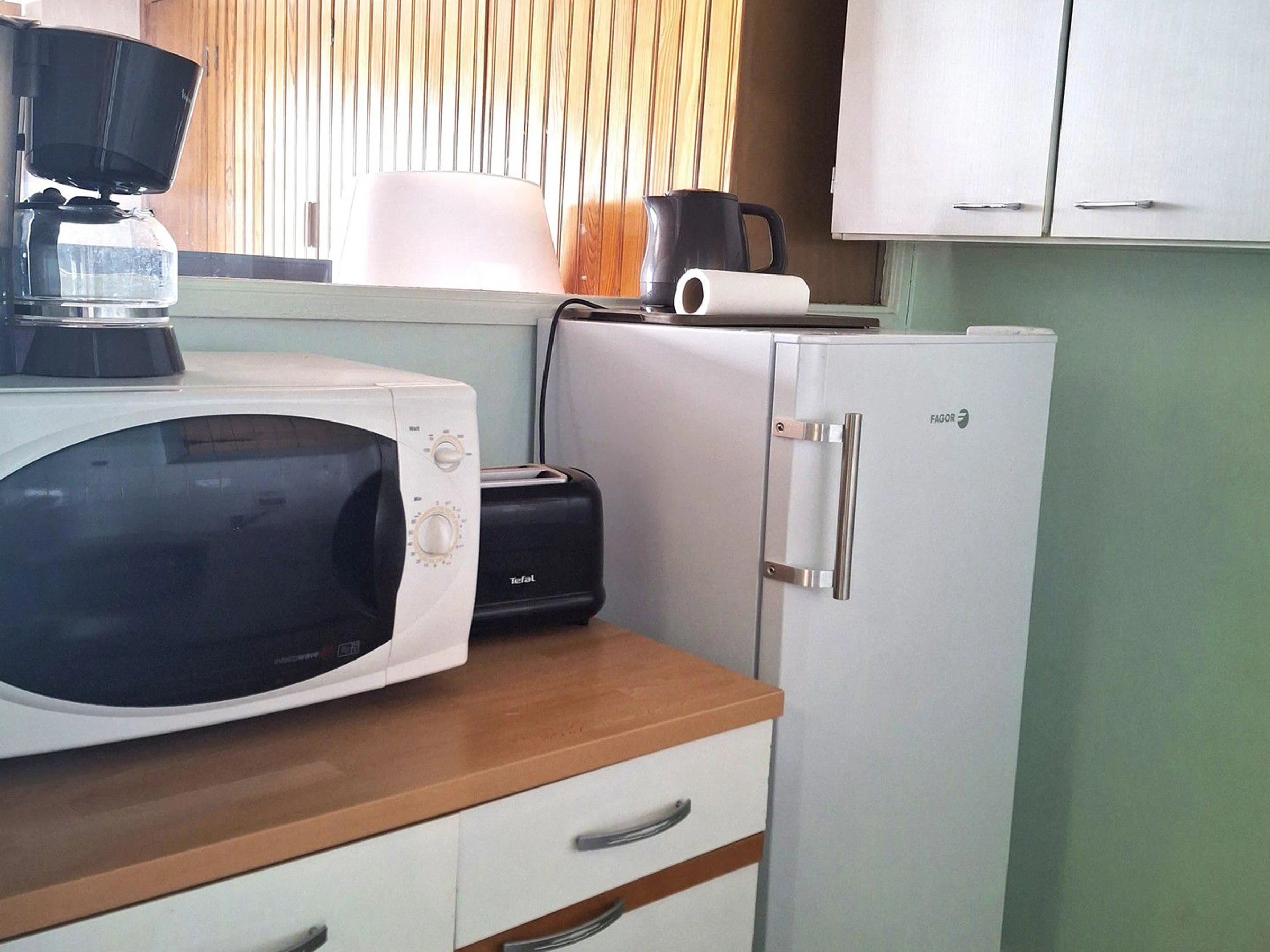 Côté cuisine, profitez d'une kitchenette moderne et fonctionnelle ! Plaque de cuisson vitrocéramique, four traditionnel et à micro-onde, cafetière à filtre, grille-pain et tout le nécessaire de vaisselle.