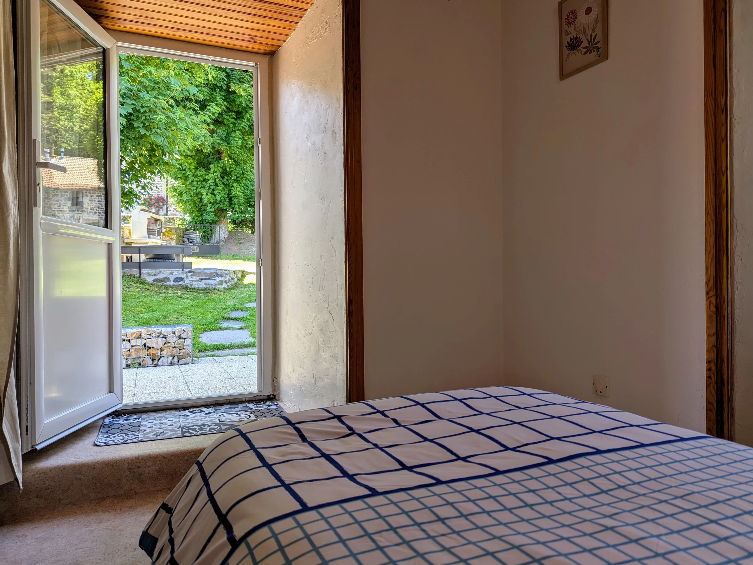 A l'extérieur, vous disposez d'un coin terrasse et d'un jardin ombragé partagé.