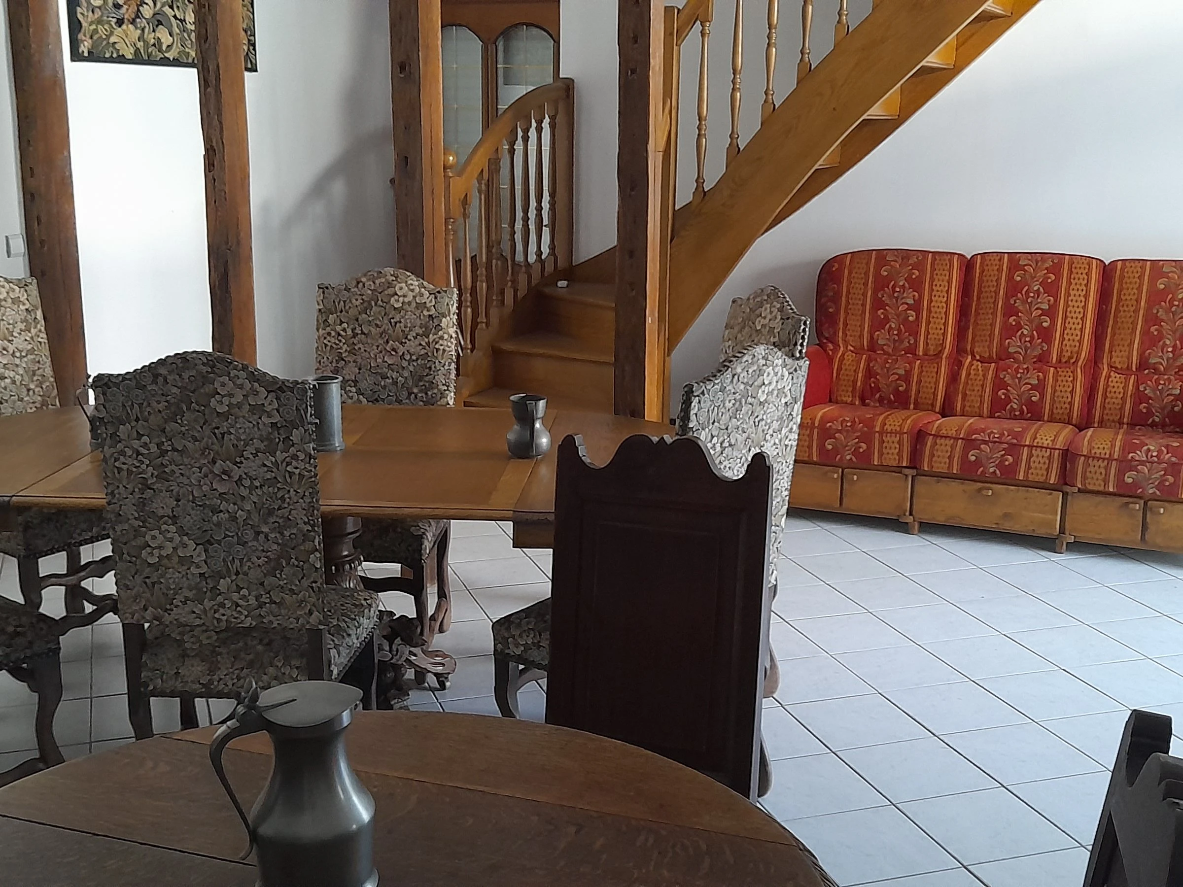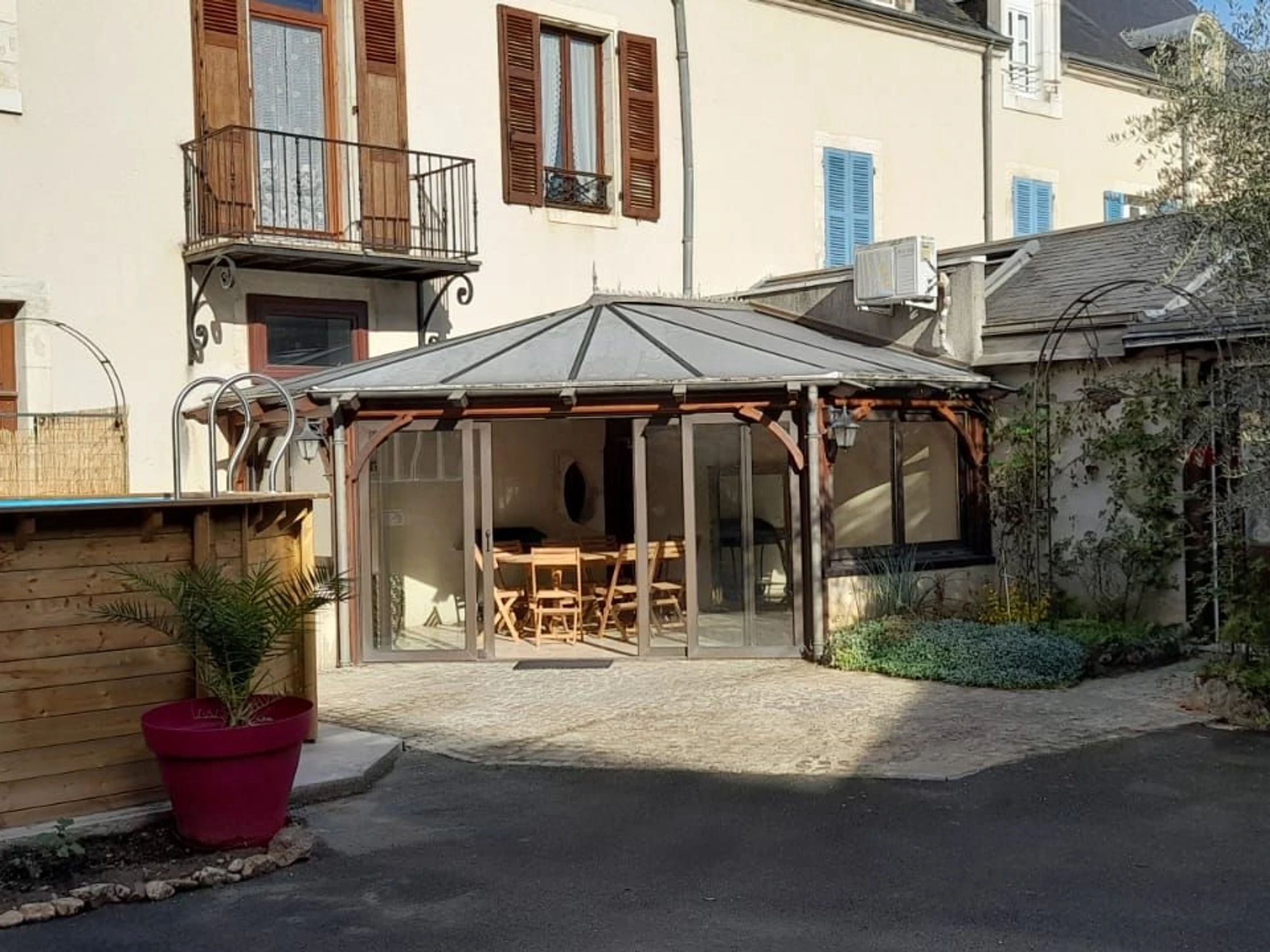 Les plus : Espace extérieur privatif avec la possibilité de garer plusieurs véhicules et piscine hors-sol privée. En rez de chaussée : Grand salon avec poêle à bois alsacien, salon télé, arrière cuisine, cuisine poêle à bois alsacien et climatisation, véranda, salle à manger.