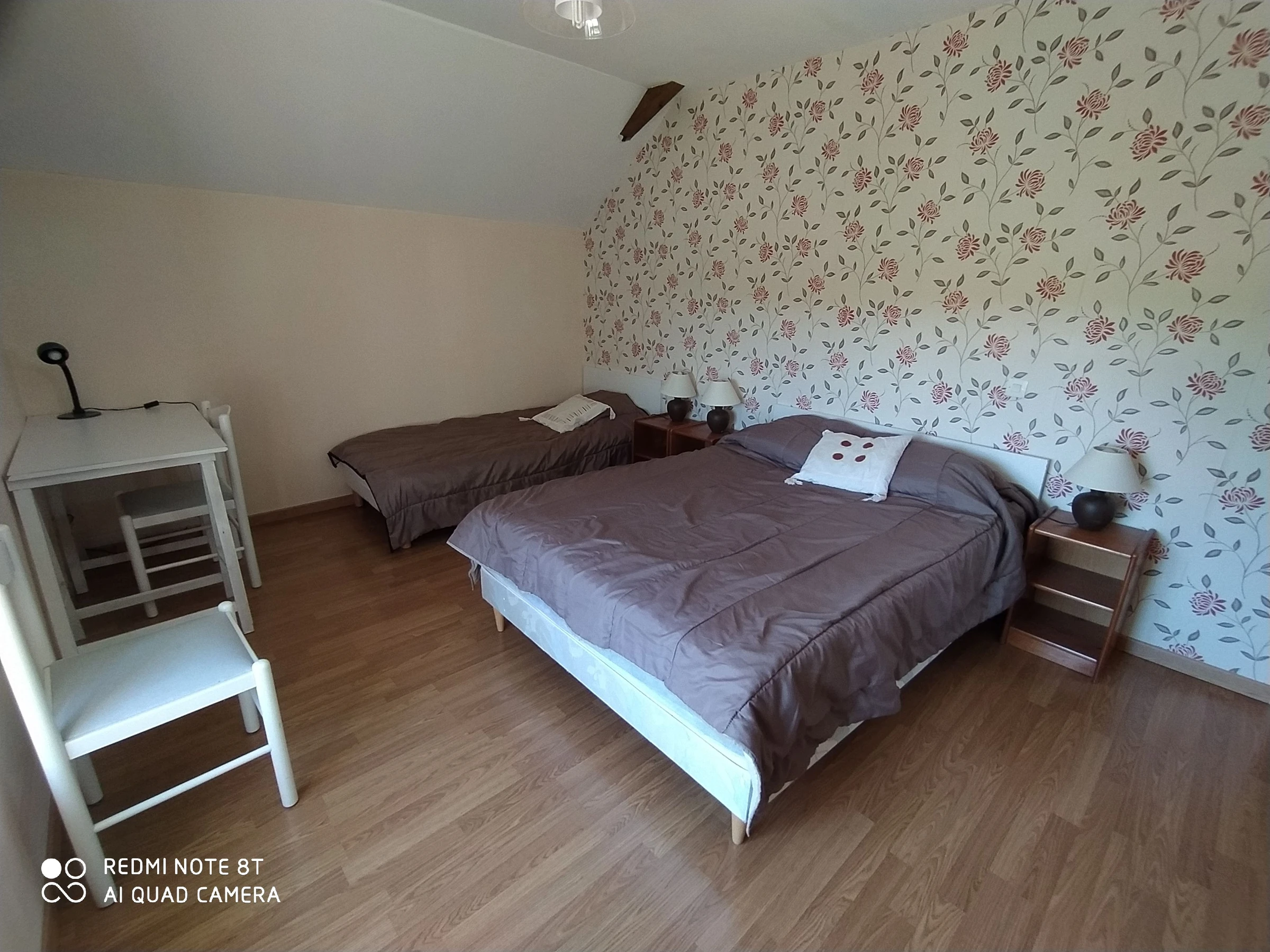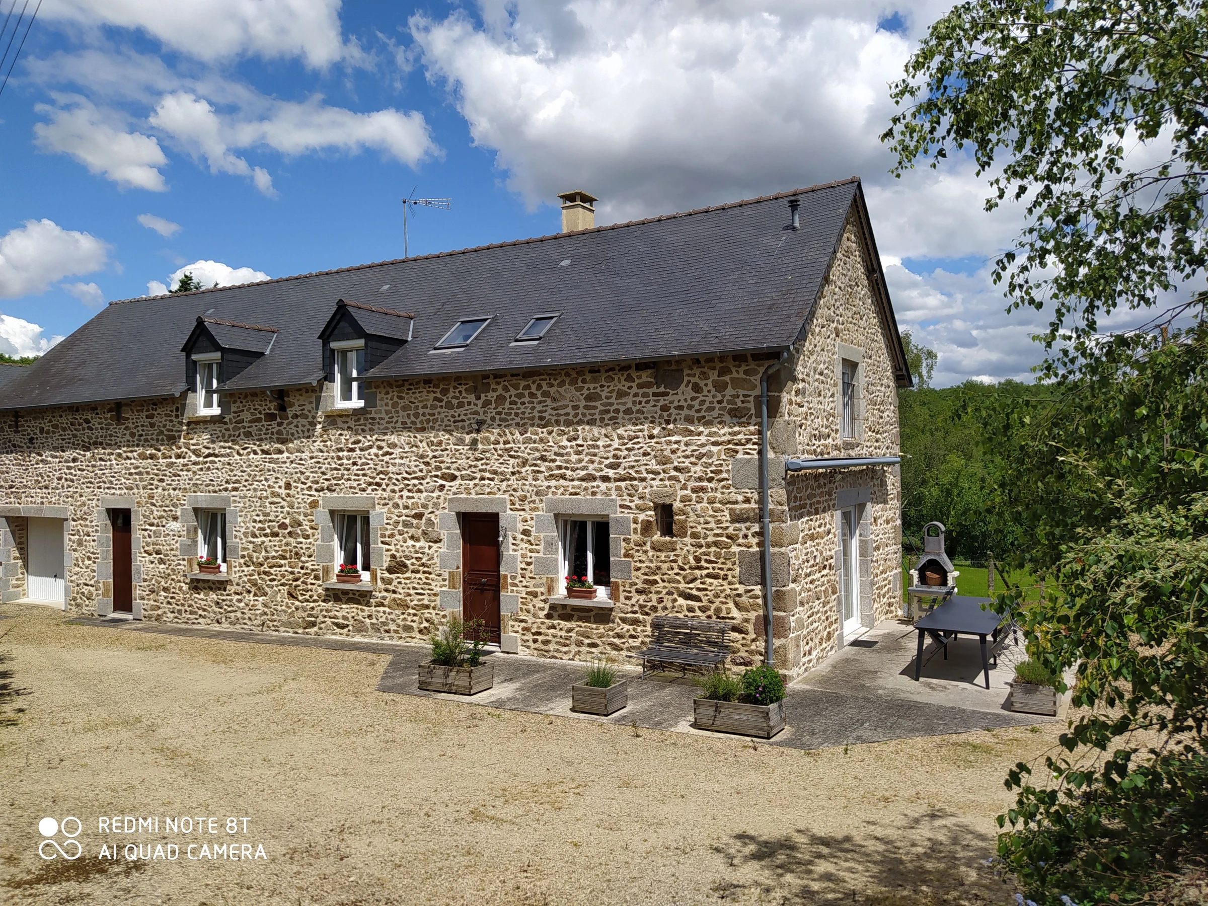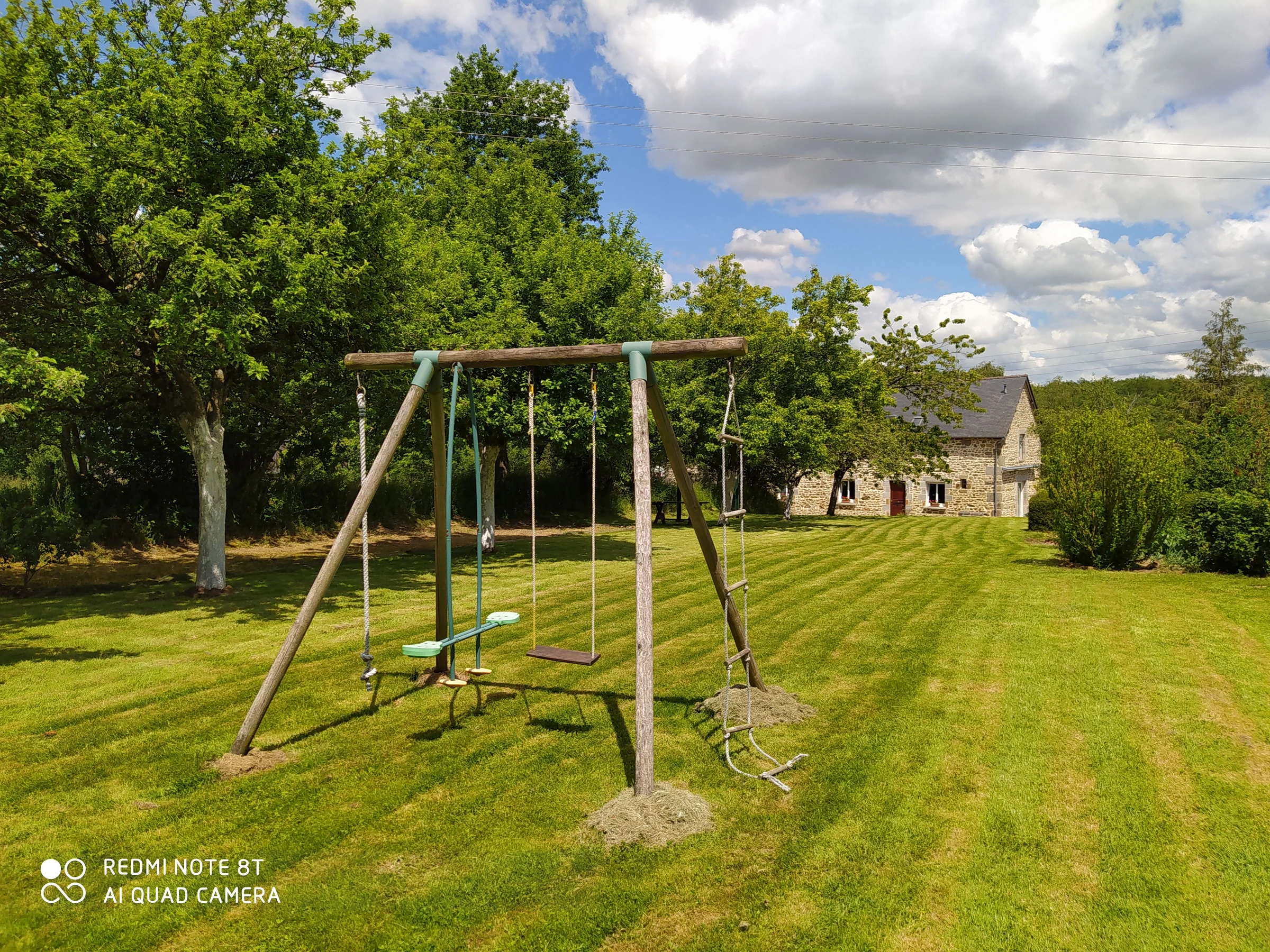 Situé dans un cadre boisé du bocage mayennais à 4km de la ville de Mayenne, vous serez accueilli dans une longère indépendante, totalement rénovée avec au rez de chaussée : cuisine aménagée 13m², séjour avec petit salon, 1 chambre (1 lit 140), salle d'eau avec douche, wc indépendant, garage avec table de ping-pong. À l'étage : 2 chambres (1 chambre avec 1 lit 140 + 1 lit 90 et 1 chambre avec 2 lits 90), wc indépendant, salle de bain (baignoire), mezzanine, salon. Équipement bébé sur demande. Wifi et télévision. . À l'extérieur: une terrasse avec grande banne, un espace clos de 1500m², un terrain de boules, un parking et un portique. Salon de jardin et barbecue.
