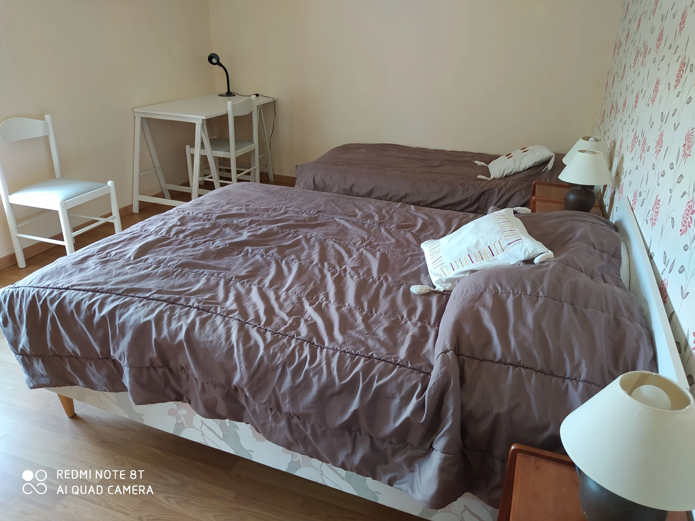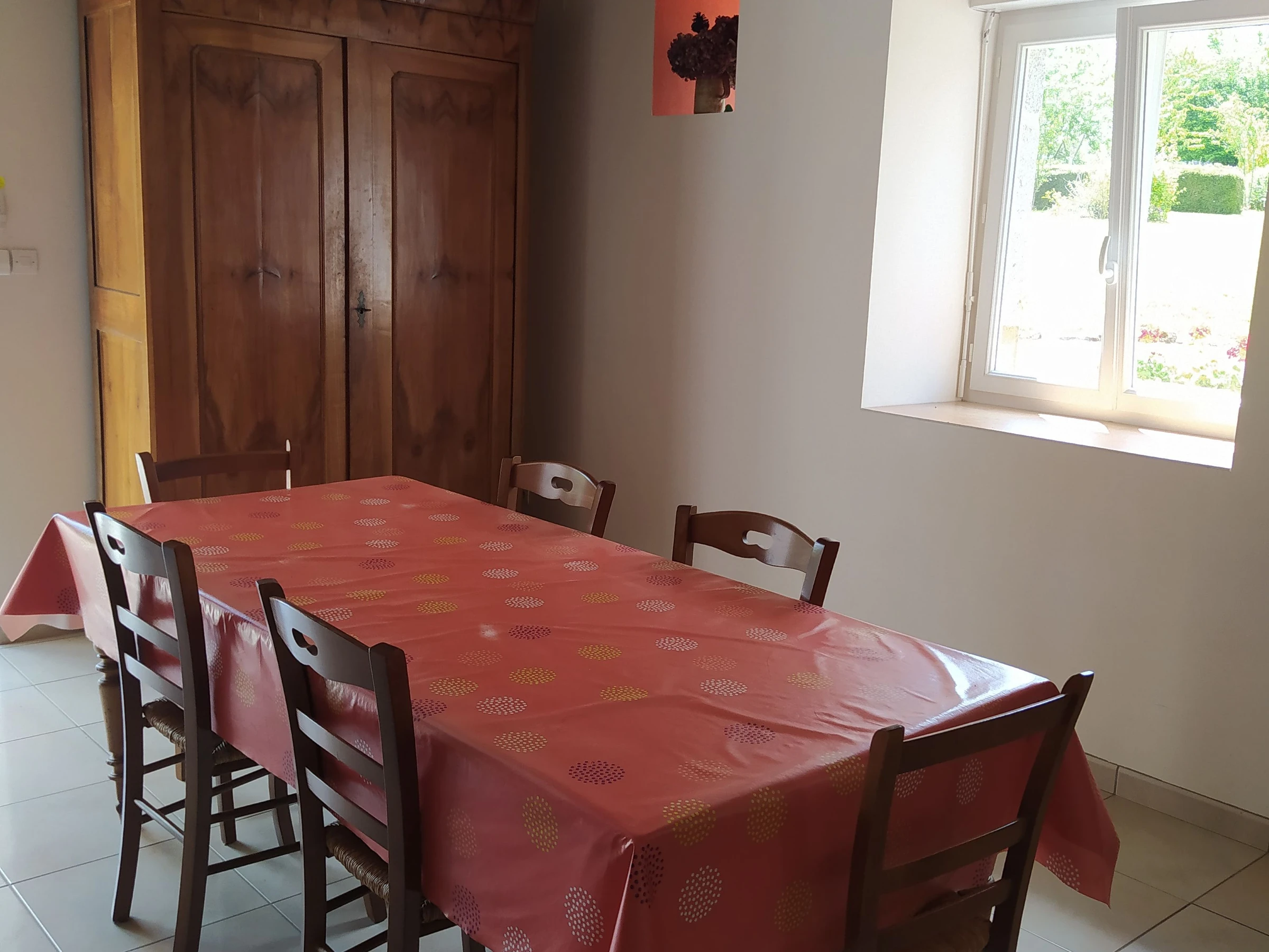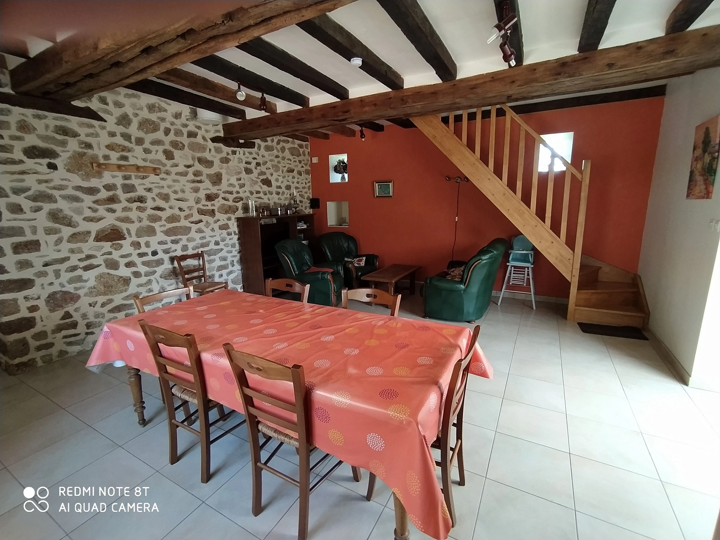 Situé dans un cadre boisé du bocage mayennais à 4km de la ville de Mayenne, vous serez accueilli dans une longère indépendante, totalement rénovée avec au rez de chaussée : cuisine aménagée 13m², séjour avec petit salon, 1 chambre (1 lit 140), salle d'eau avec douche, wc indépendant, garage avec table de ping-pong. À l'étage : 2 chambres (1 chambre avec 1 lit 140 + 1 lit 90 et 1 chambre avec 2 lits 90), wc indépendant, salle de bain (baignoire), mezzanine, salon. Équipement bébé sur demande. Wifi et télévision. . À l'extérieur: une terrasse avec grande banne, un espace clos de 1500m², un terrain de boules, un parking et un portique. Salon de jardin et barbecue.