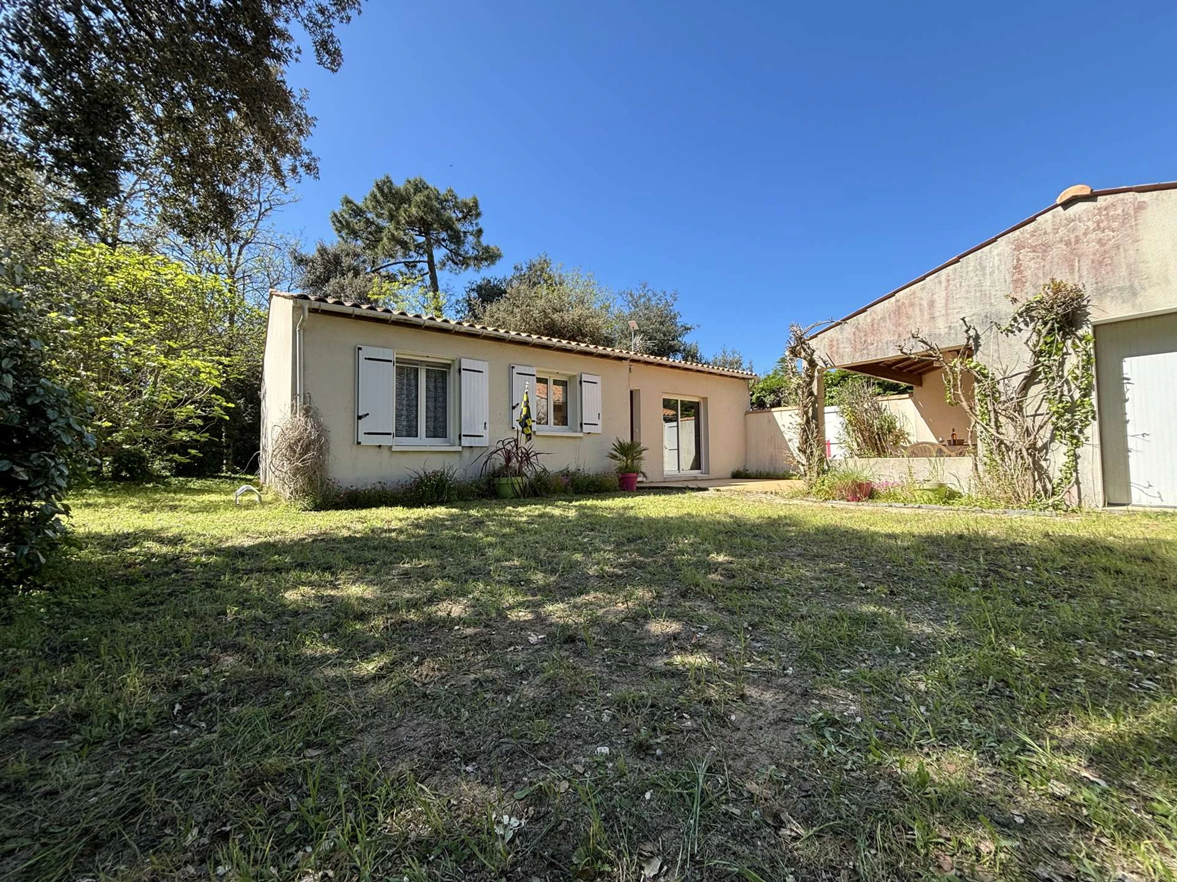 A l'extérieur, grand jardin clos arboré de pins, terrasse et mobilier de jardin, plancha électrique. Stationnement dans la propriété.