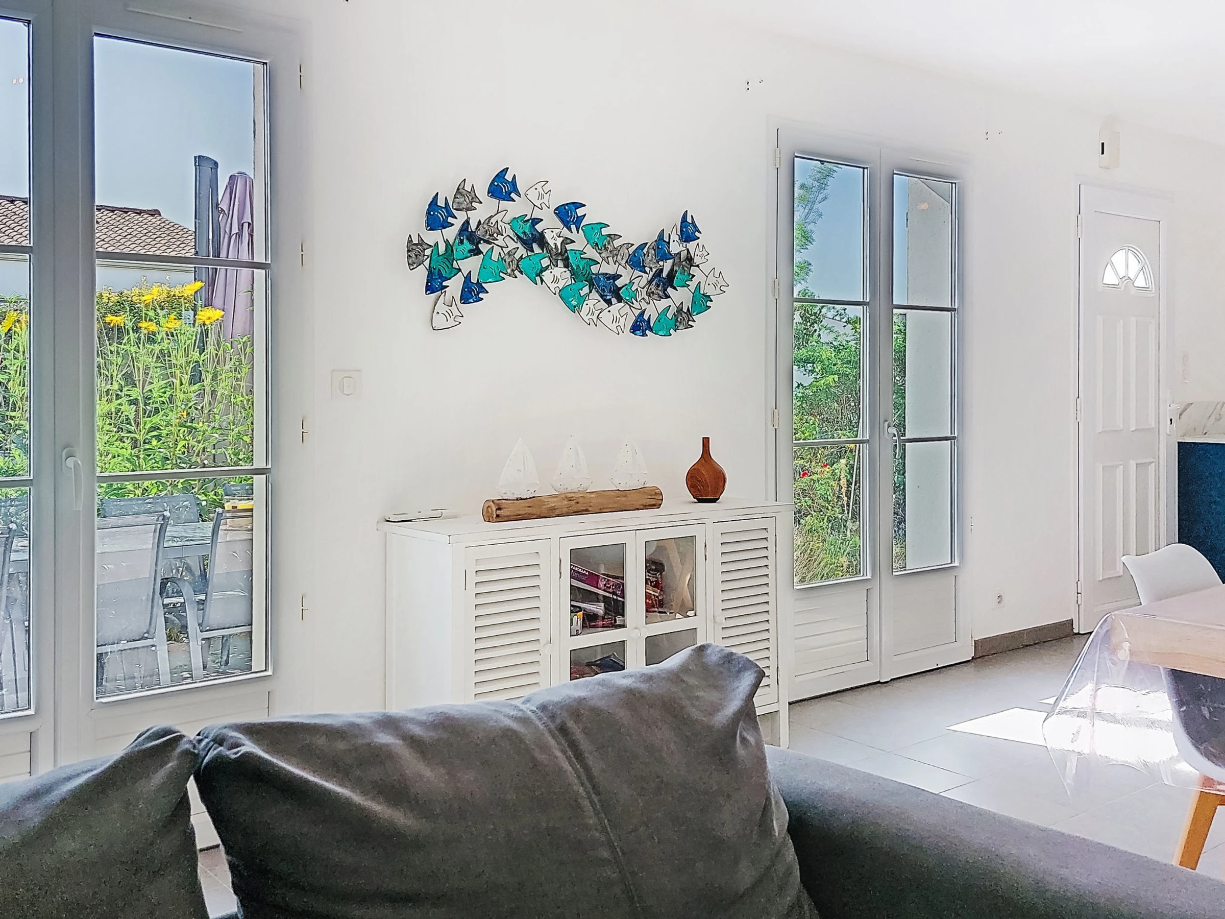 Maison mitoyenne "Les Loges". Dans la localité, à 450 m du centre de Sauzelle, situation animée, ensoleillée, à 500 m de la forêt, à 1.8 km de la mer, à 1.8 km de la plage. A usage privé: jardin entretenu 200 m2 (clôturé). Terrasse (30 m2), meubles de jardin, barbecue, place de parking (pour 2 voitures) sur le terrain. Borne de recharge électrique. Magasins 500 m, magasin d'alimentation 5 km, supermarché 5 km, restaurant, bar, boulangerie, café 500 m, location de bicyclettes 5 km, arrêt de bus "Cheray D734" 5.6 km, gare ferroviaire "Rochefort sur Mer" 58 km. Port plaisance 4.3 km, terrain de golf (9 trous) 7.7 km. Attractions à proximité: Centre aquatique Iléo 12 km, Phare de Chassiron 16 km, Port de la Cotinière 9 km, Corderie Royale Rochefort 51 km, La Rochelle 86 km.